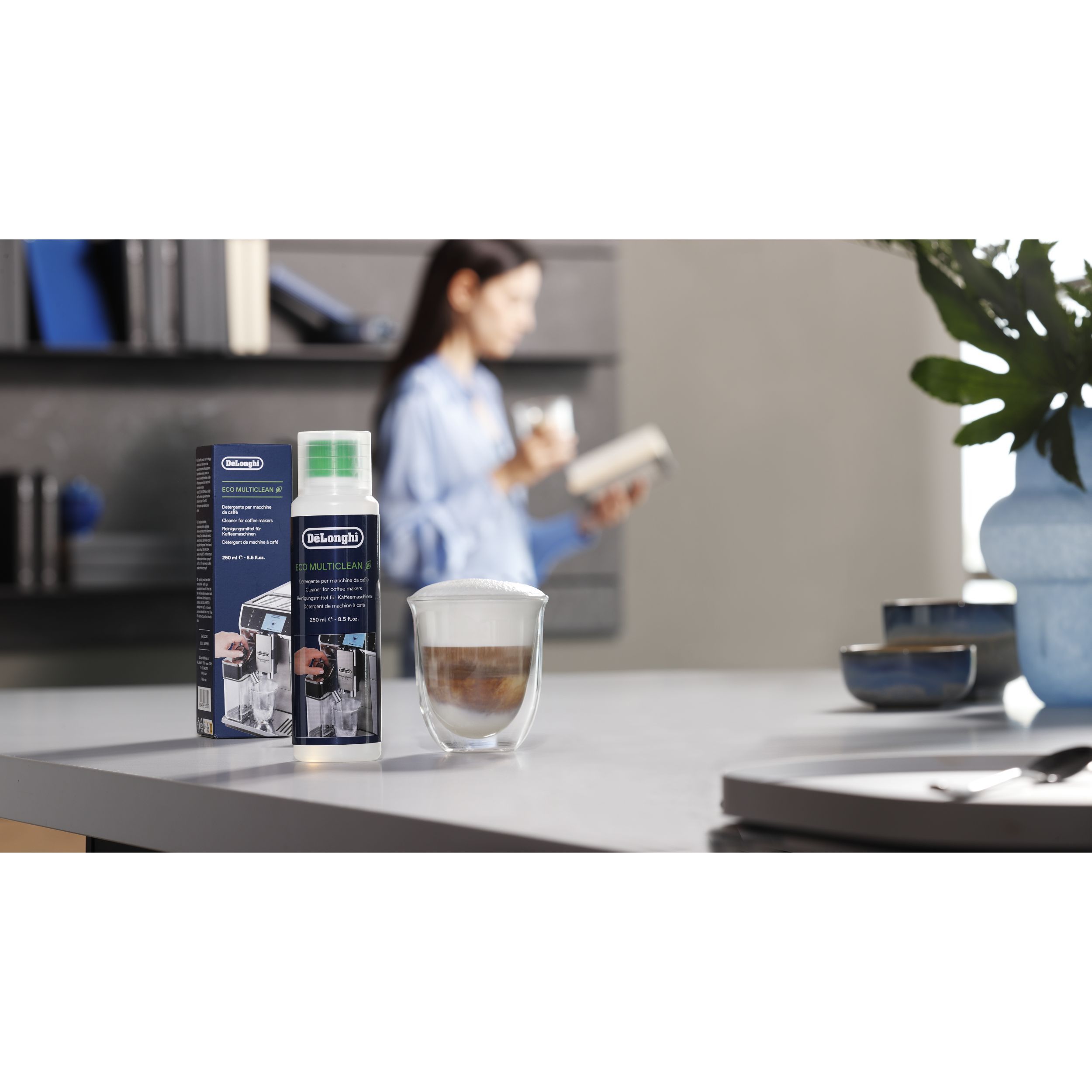 De'Longhi Eco MultiClean este o soluție de curățare eficientă și ecologică pentru toate espressoarele. Este concepută pentru a curăța în profunzime circuitele de lapte, inclusiv carafa și duza de abur, pentru a îndepărta proteinele și grăsimile din lapte. În plus, este adecvată pentru curățarea reziduurilor de lapte de pe toate componentele detașabile ale espressorului care pot fi clătite.