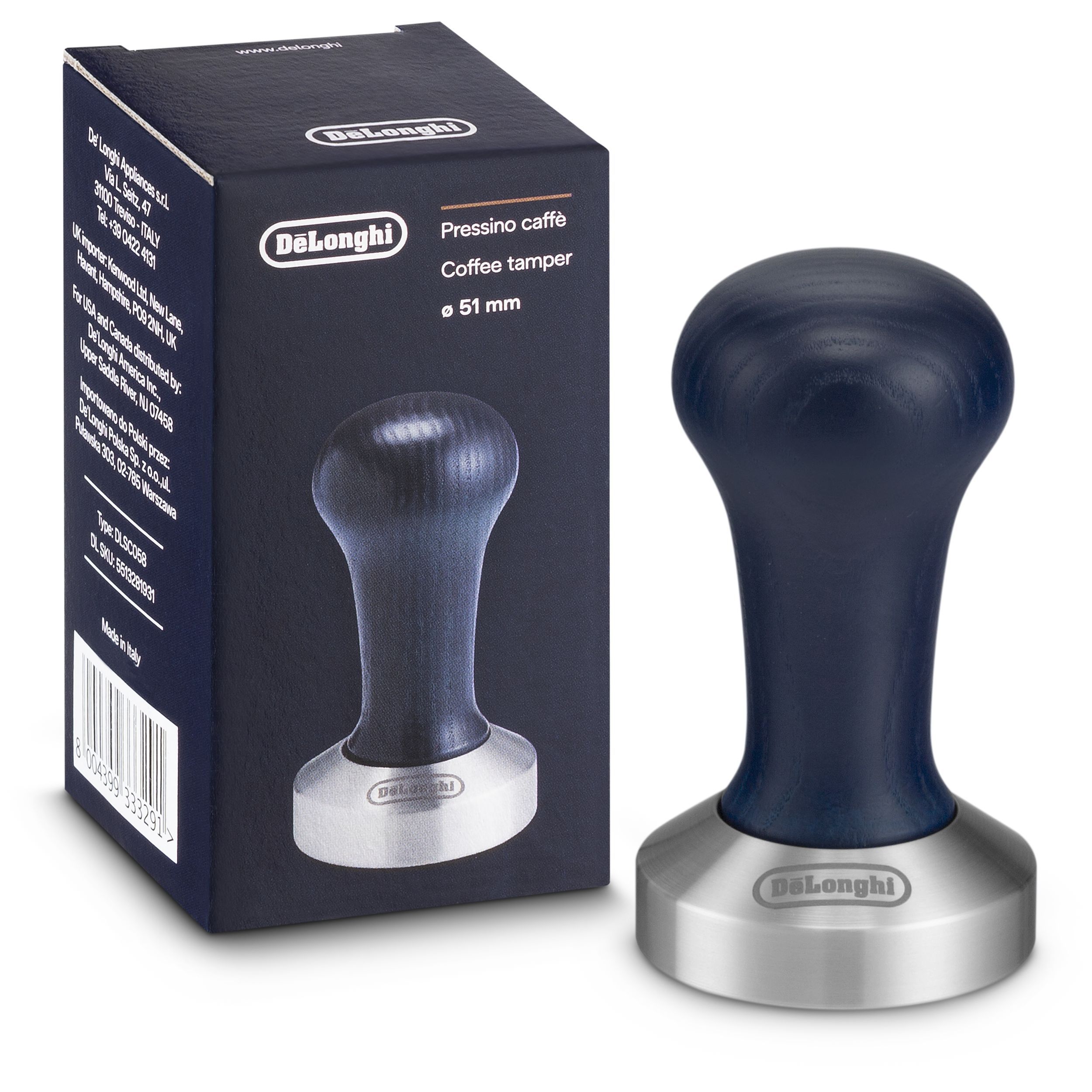 • Tamper calibrat pentru a presa pudra de cafea în filtru, în mod uniform