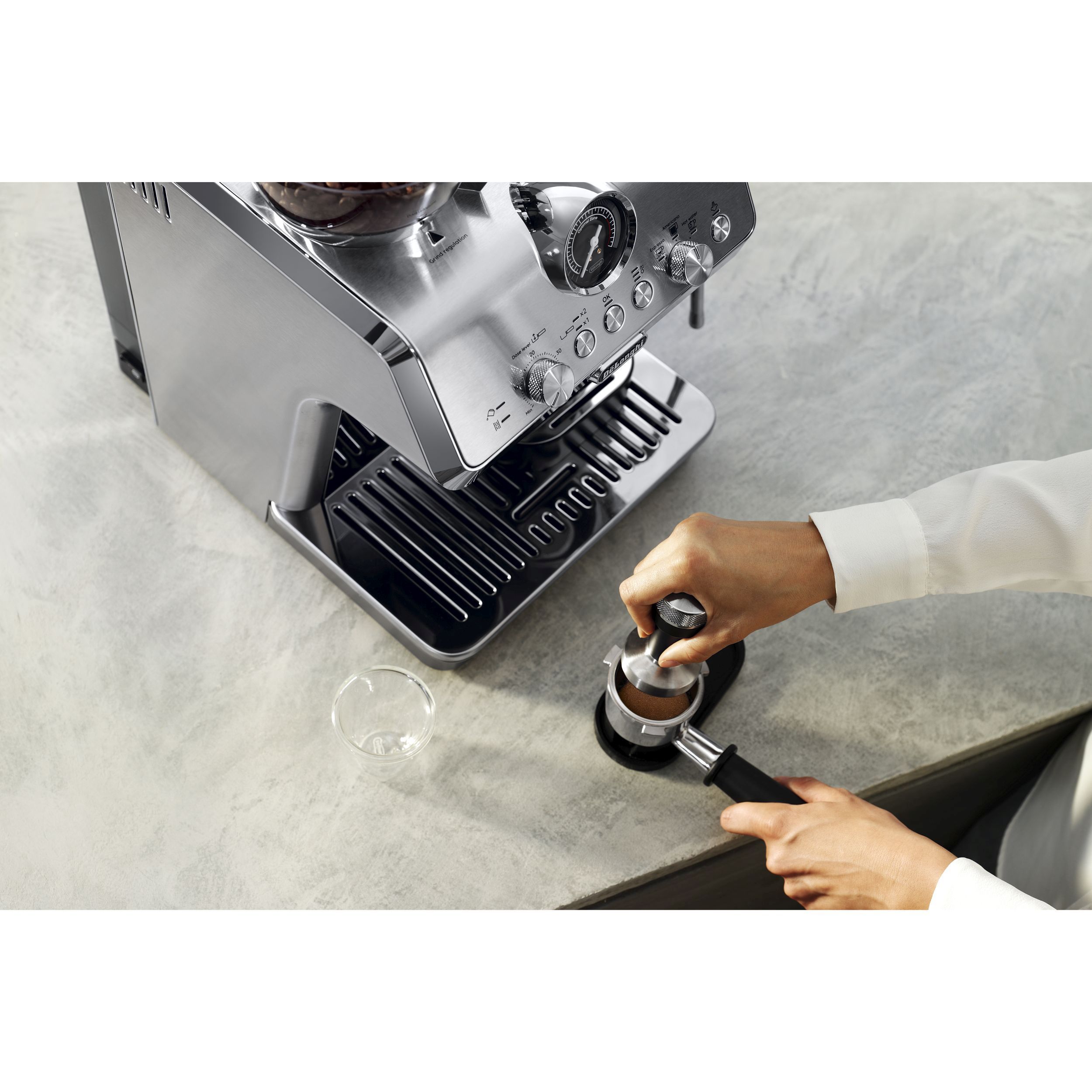 • Folosiți cu ușurință presiunea potrivită atunci când presați cafeaua măcinată pentru espresso, datorită bazei grele.