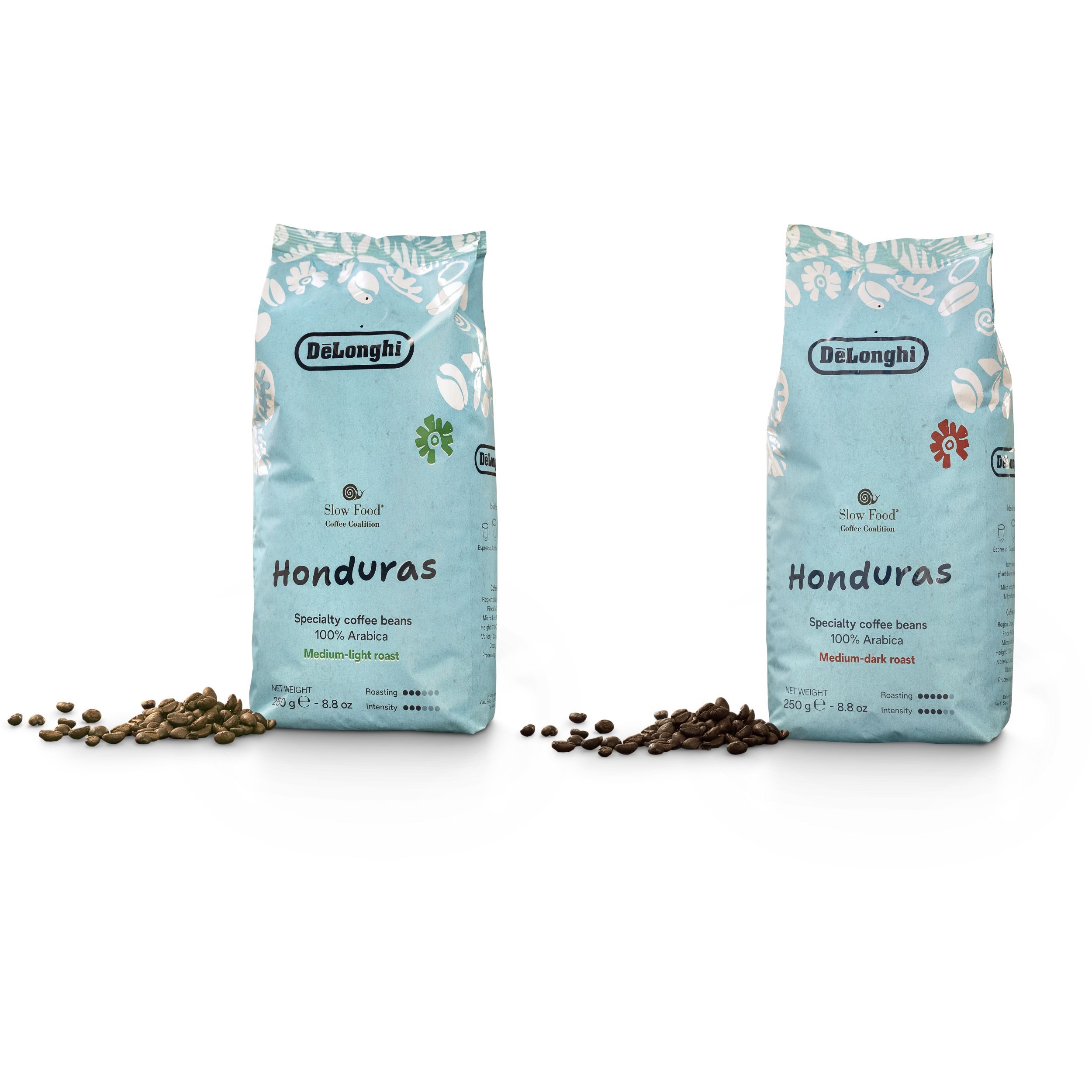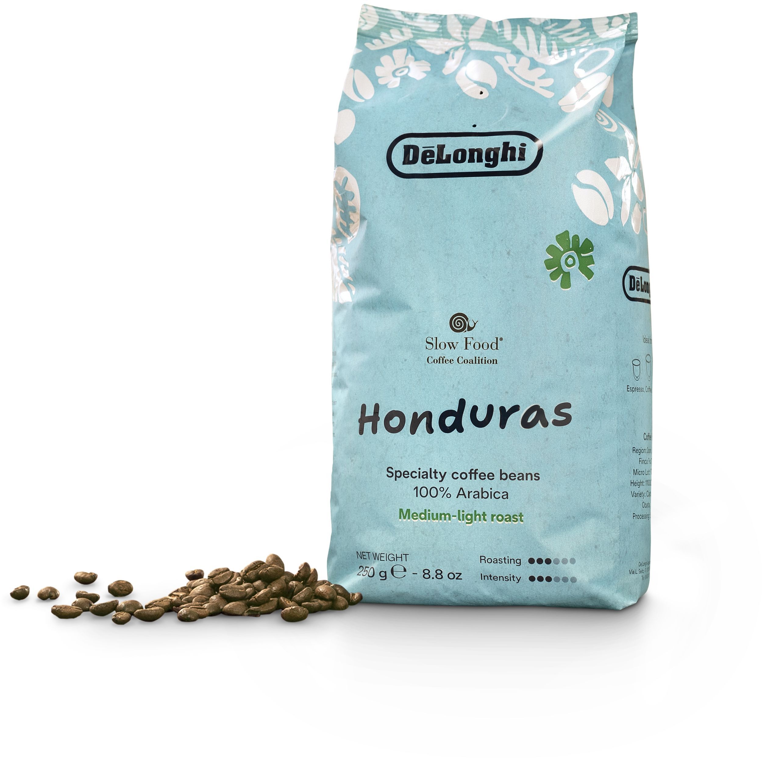 De'Longhi îți oferă prima cafea de specialitate în parteneriat cu Slow Food Coffee Coalition. Boabe de cafea de origine unică din Honduras culese manual din plantația Las Capucas. Boabe Arabica prăjite mediu, cu o aromă delicată și postgust de lungă durată.