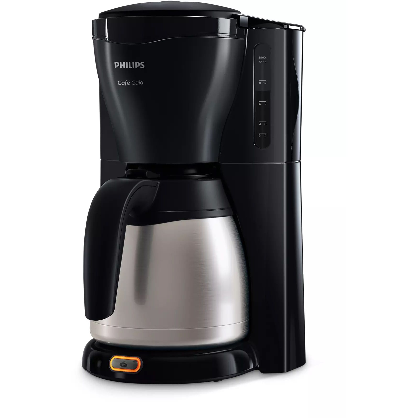Oprire automată directă, pentru economisire energie şi siguranţă. După prepararea cafelei, cafetiera se opreşte automat pentru siguranţă şi economii de energie. Vasul termorezistent păstrează cafeaua fierbinte.
