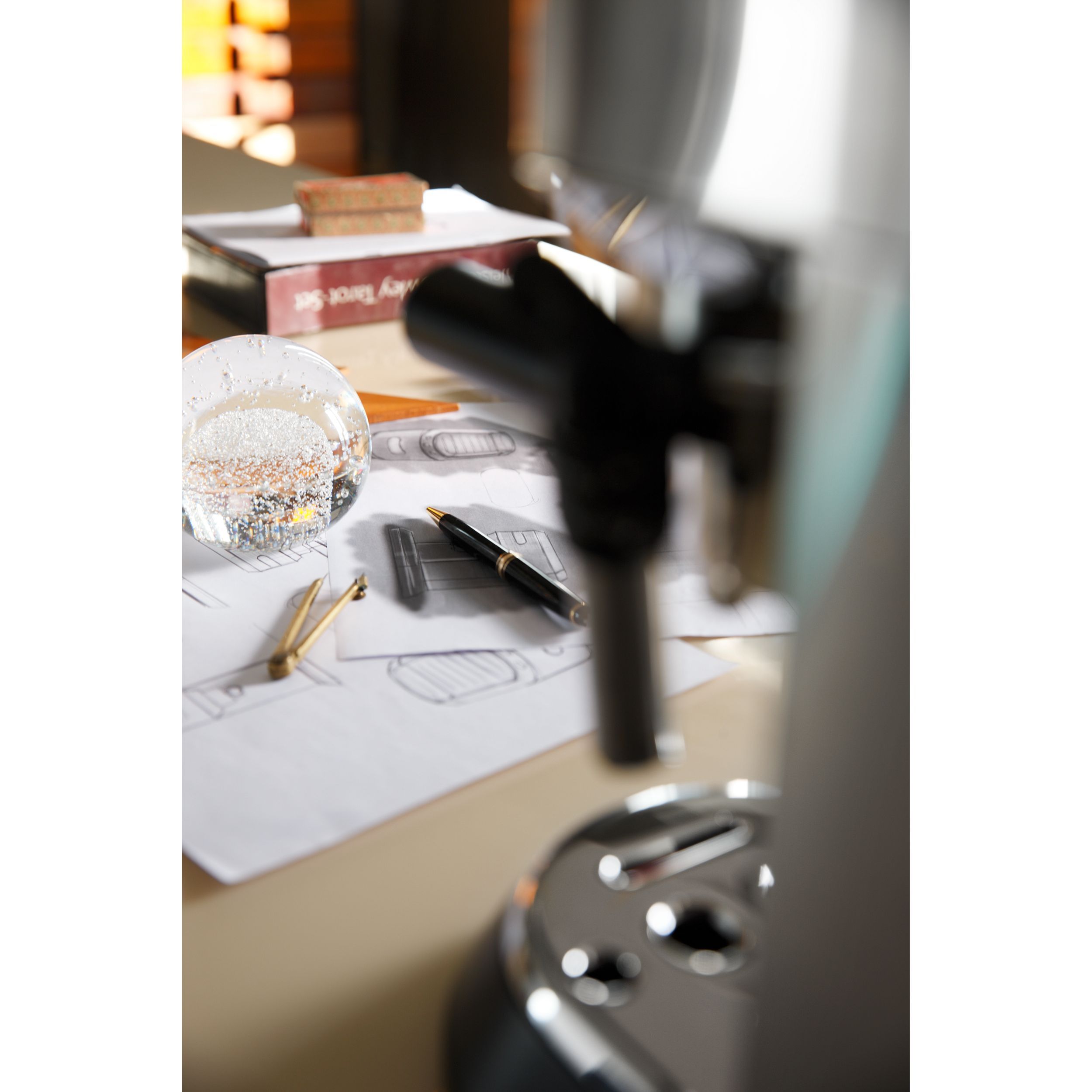 • Espressor elegant și compact, cu exterior lucios, din oțel inoxidabil și finisaje metalice lucioase.