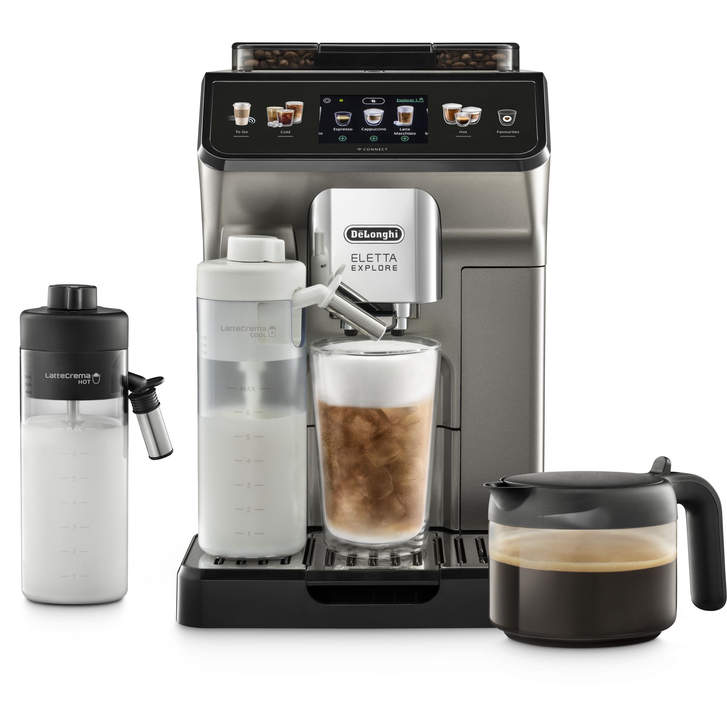 Prepară peste 50 de rețete de băuturi calde, reci și Cold Brew cu espressorul automat De’Longhi Eletta Explore.