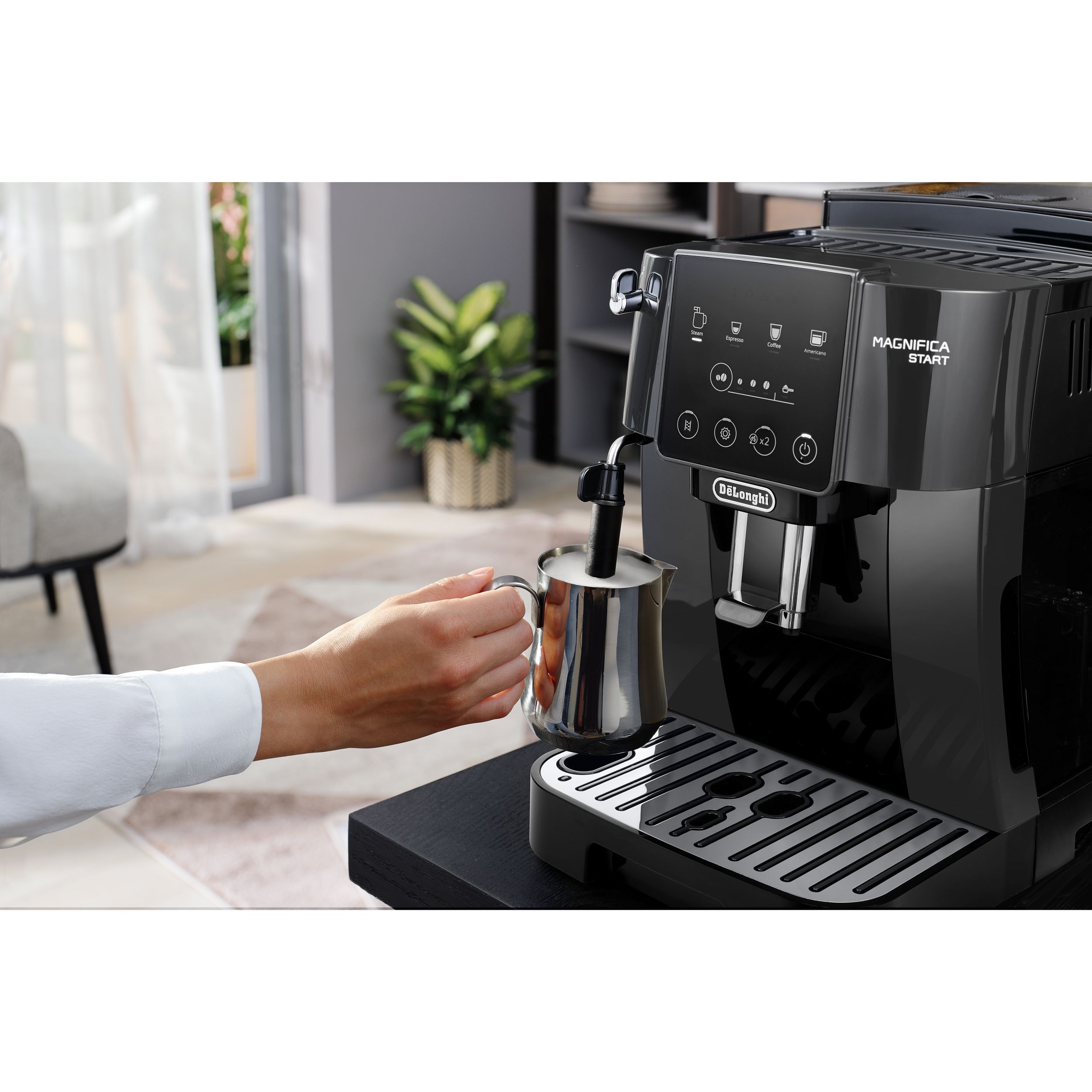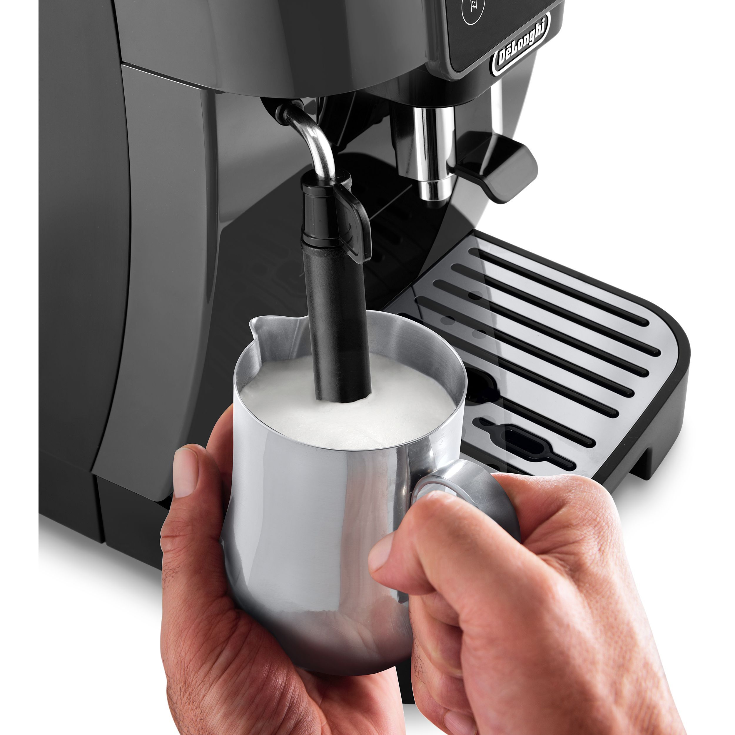 Prepară manual băuturi pe bază de lapte, cu spumă cremoasă, precum un barista, mulțumită dispozitivului de spumare a laptelui, ce poate fi utilizat și pentru obținerea apei calde pentru ceai și infuzii.