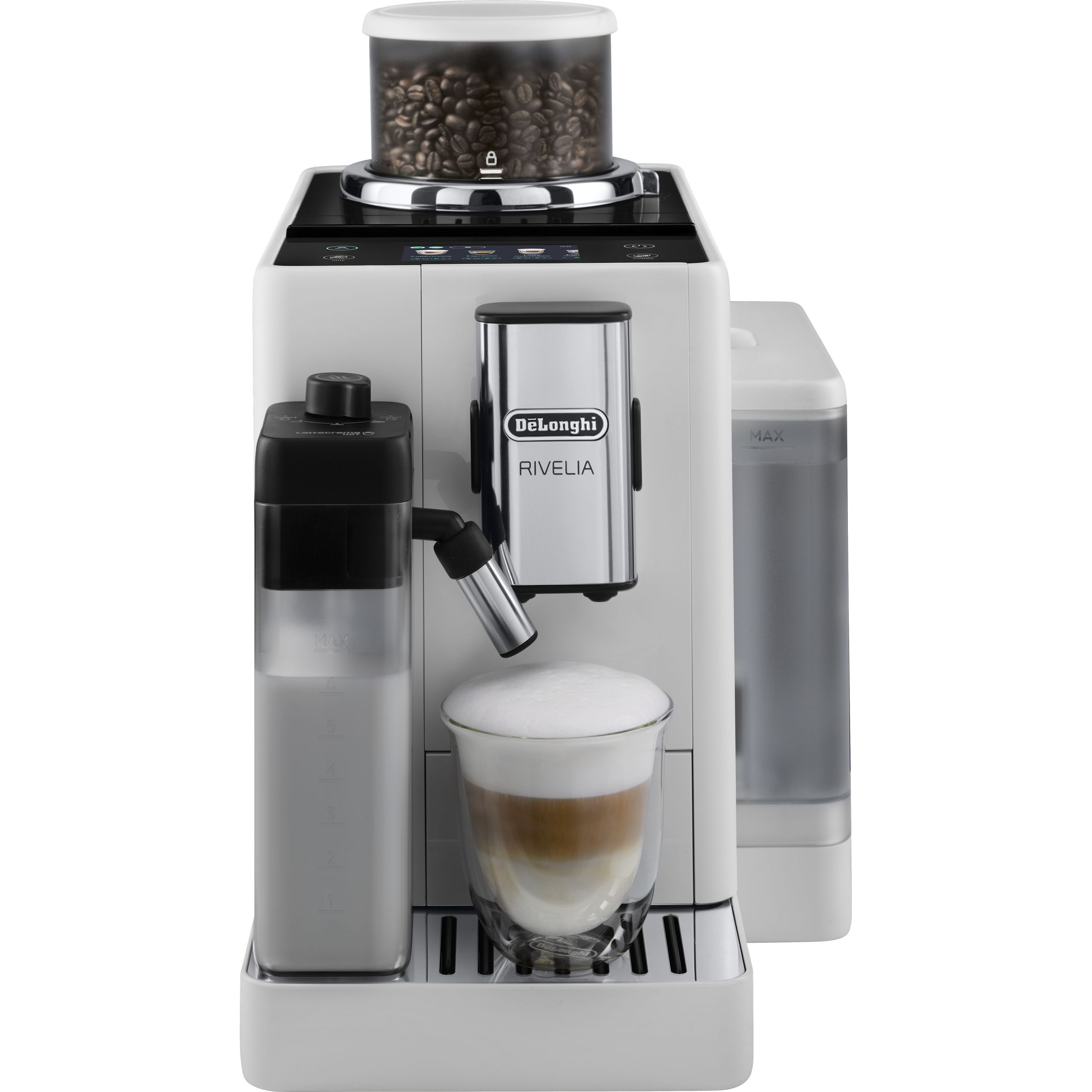 Intră în universul cafelei cu espressorul automat Rivelia. Explorează tipuri de boabe diferite cu ajutorul Sistemului Bean Switch și bucură-te de o experiență captivantă cu afișaj color tactil de 9 cm, animații și rețete de cafea adaptate preferințelor tale. Completează băuturile pe bază de lapte cu o spumă bogată și fină, folosind tehnologia LatteCrema Hot.