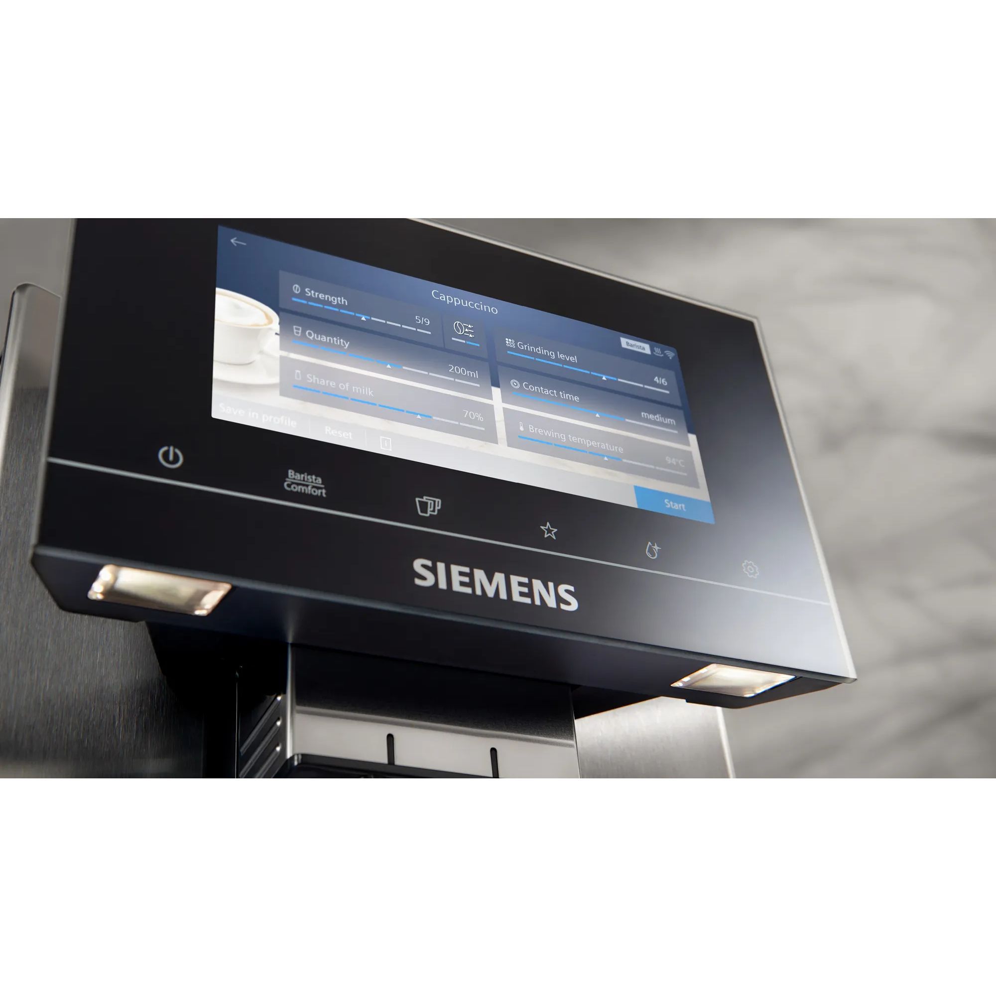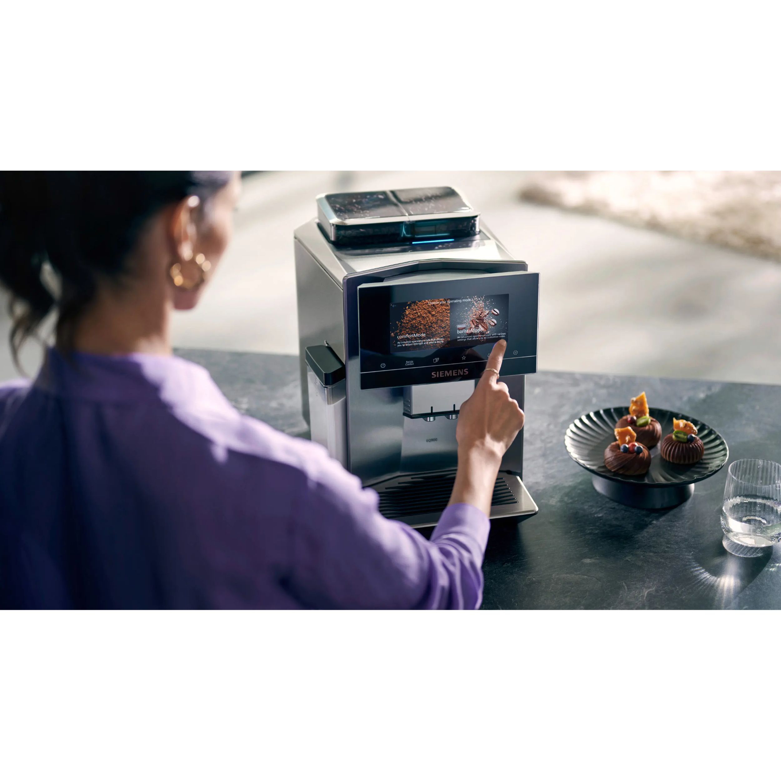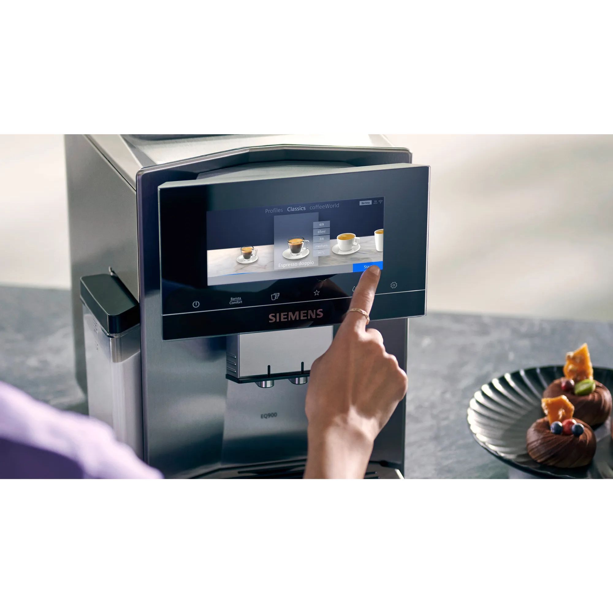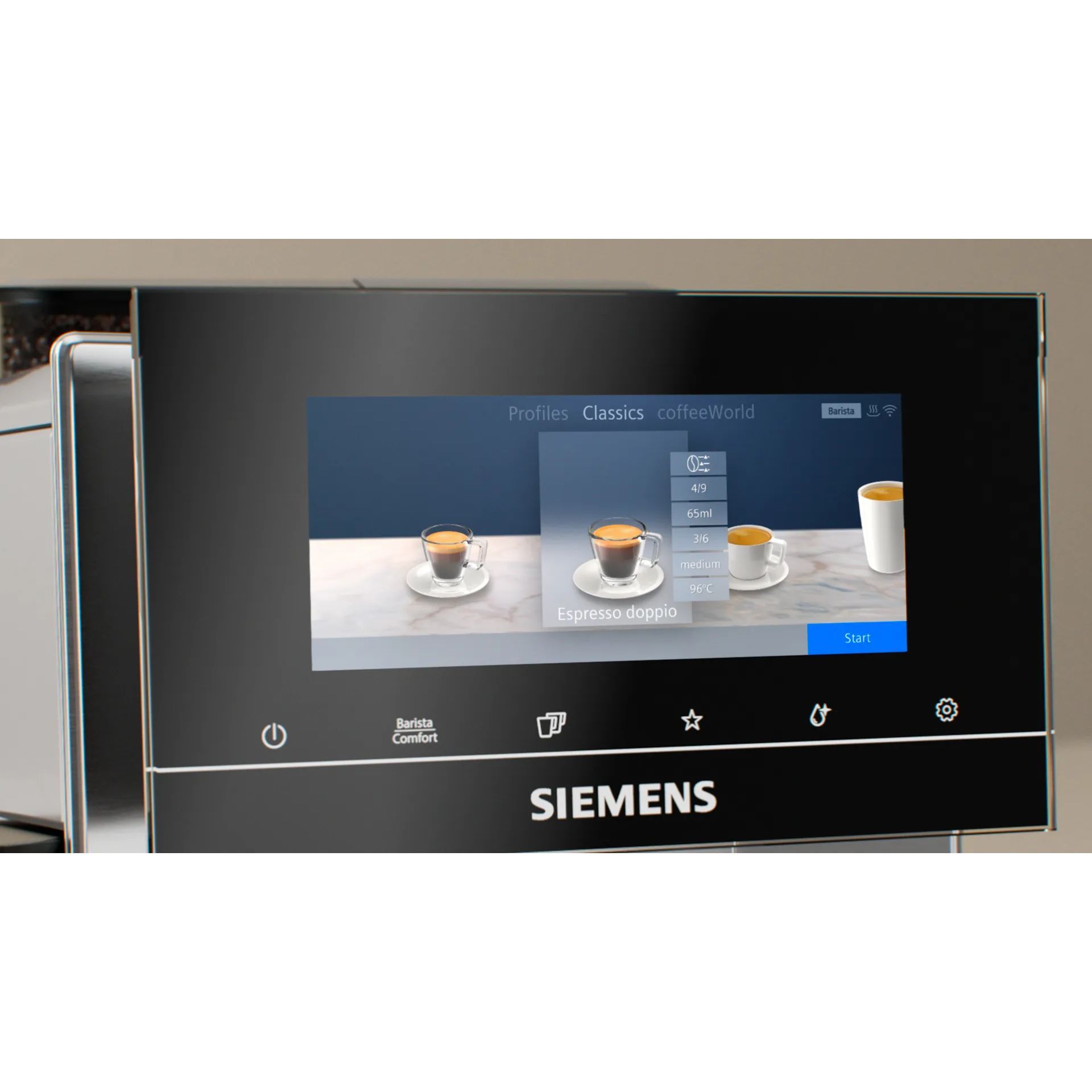 Designul SIEMENS idealizează o funcționalitate perfectă în echilibru cu estetica armonioasă. Espressorul automat SIEMENS convinge nu doar prin inovație și rezultate perfecte, dar și prin liniile elegante. Mulțumită formei dinamice și designului continuu de 360°, poate fi plasat în orice proiect, în orice locație. Se încadrează oriunde.