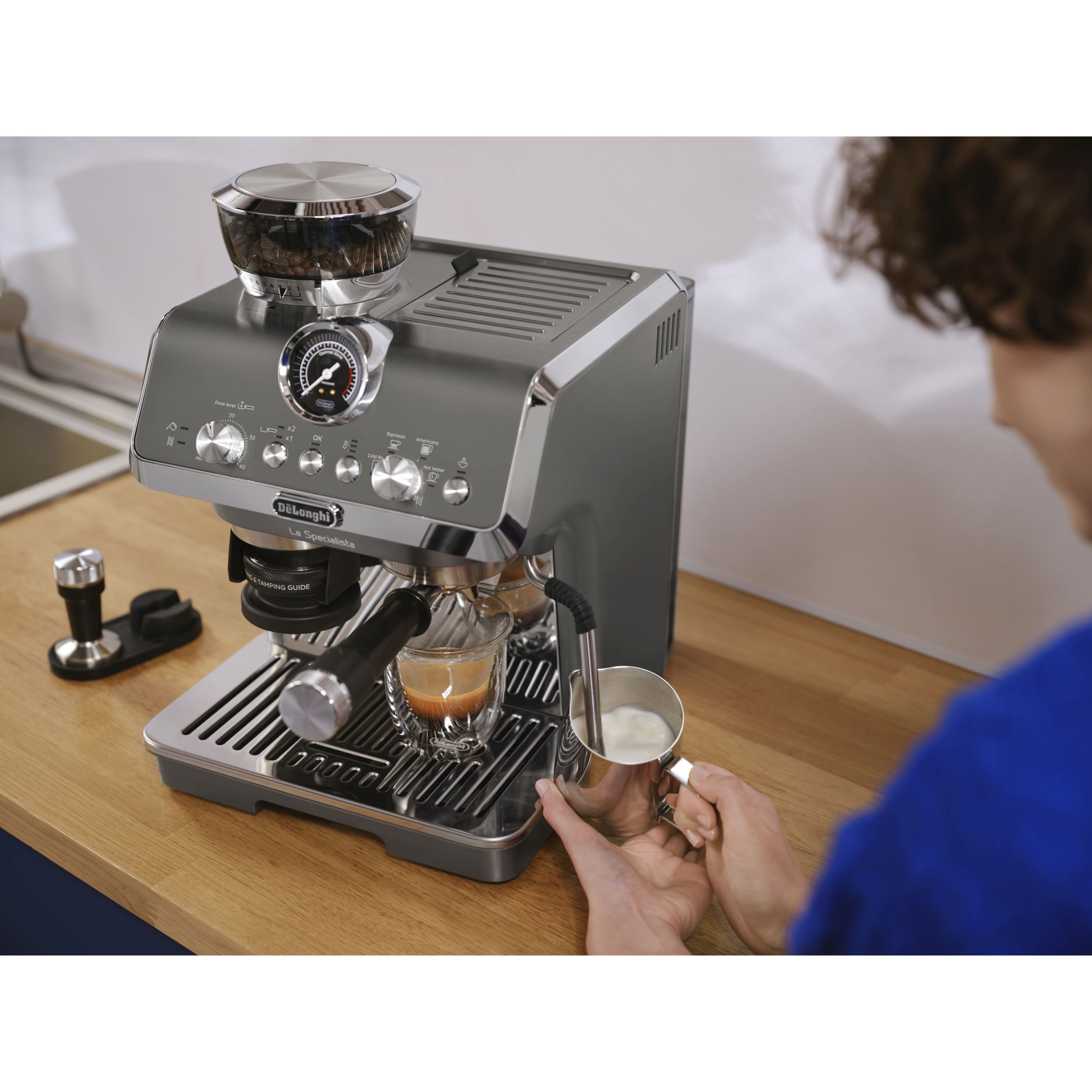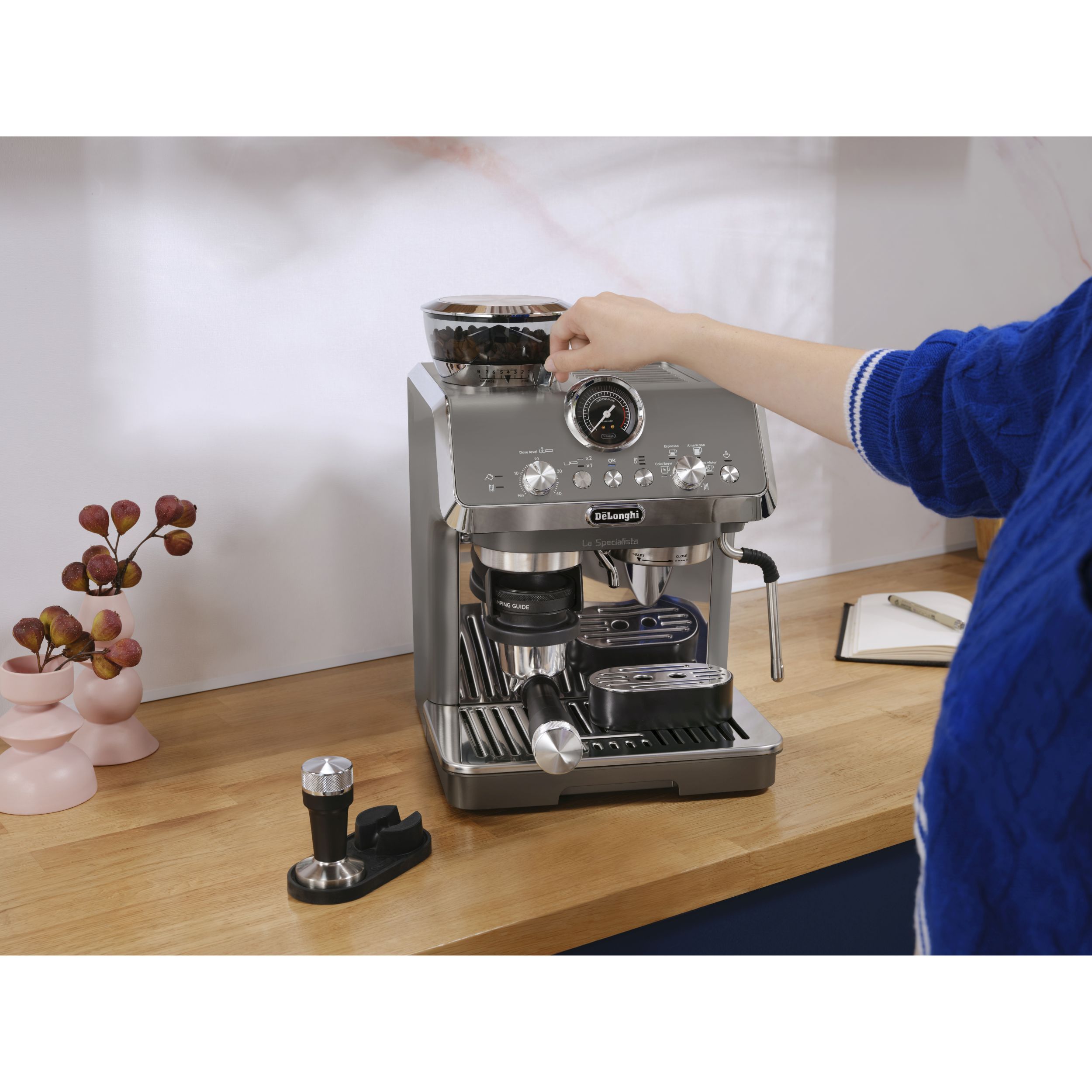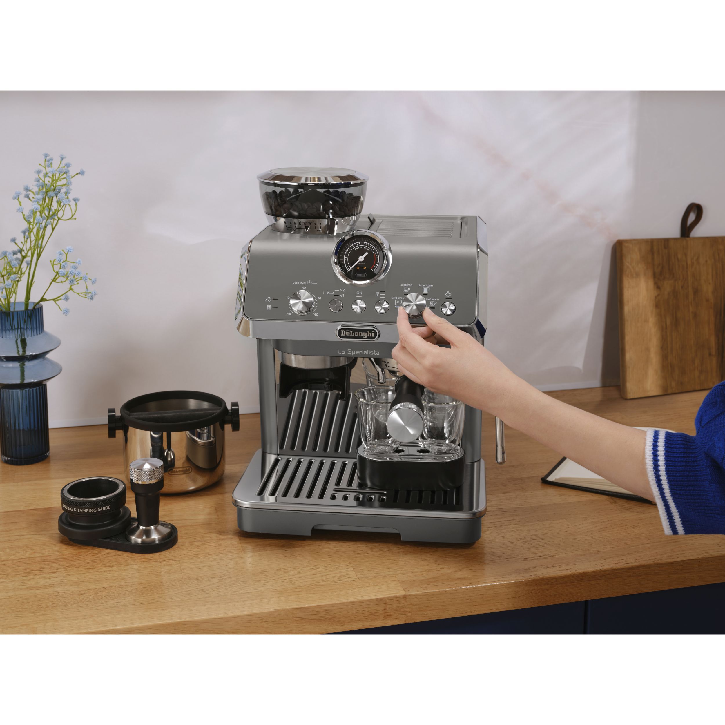 • Trăiește experiența barista la tine acasă, folosind kitul complet de accesorii, inclusiv ghidul de dozare și de presare a pudrei de cafea.