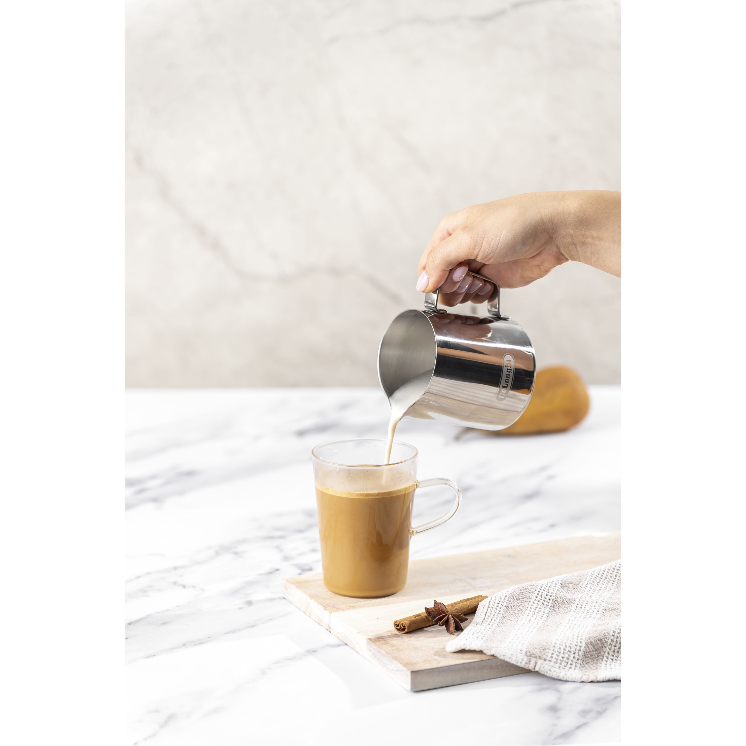 Duza cu abur My LatteArt creează un vârtej care transformă laptele într-o spumă mătăsoasă cu microbule pentru creații latte art. Duza rece la atingere este mai sigură și mai ușor de curățat.