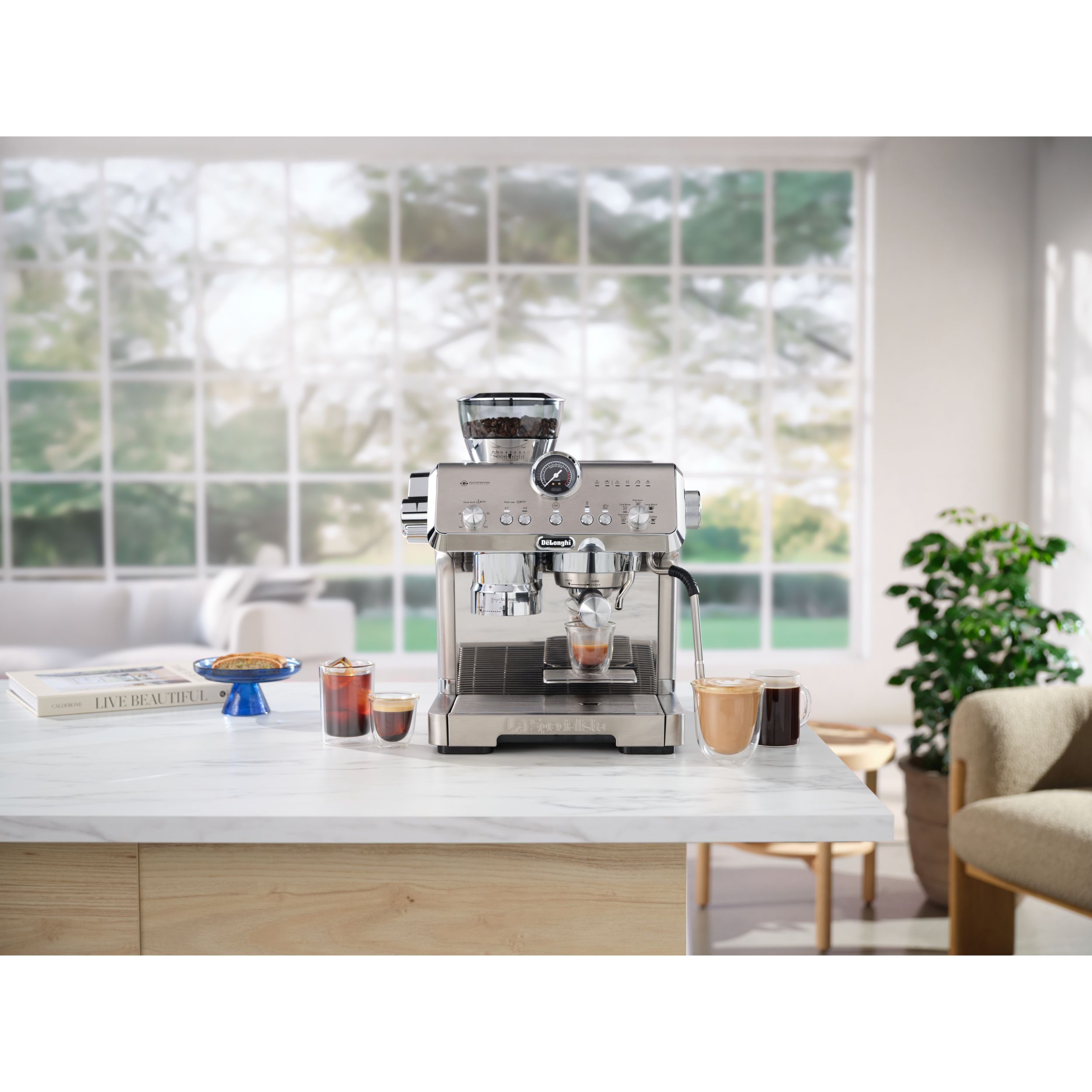 Prepară toate băuturile preferate și explorează unele băuturi noi, inclusiv 5 băuturi presetate ușor de selectat: Espresso, Americano, Cafea, Cold Brew și Espresso Cool.