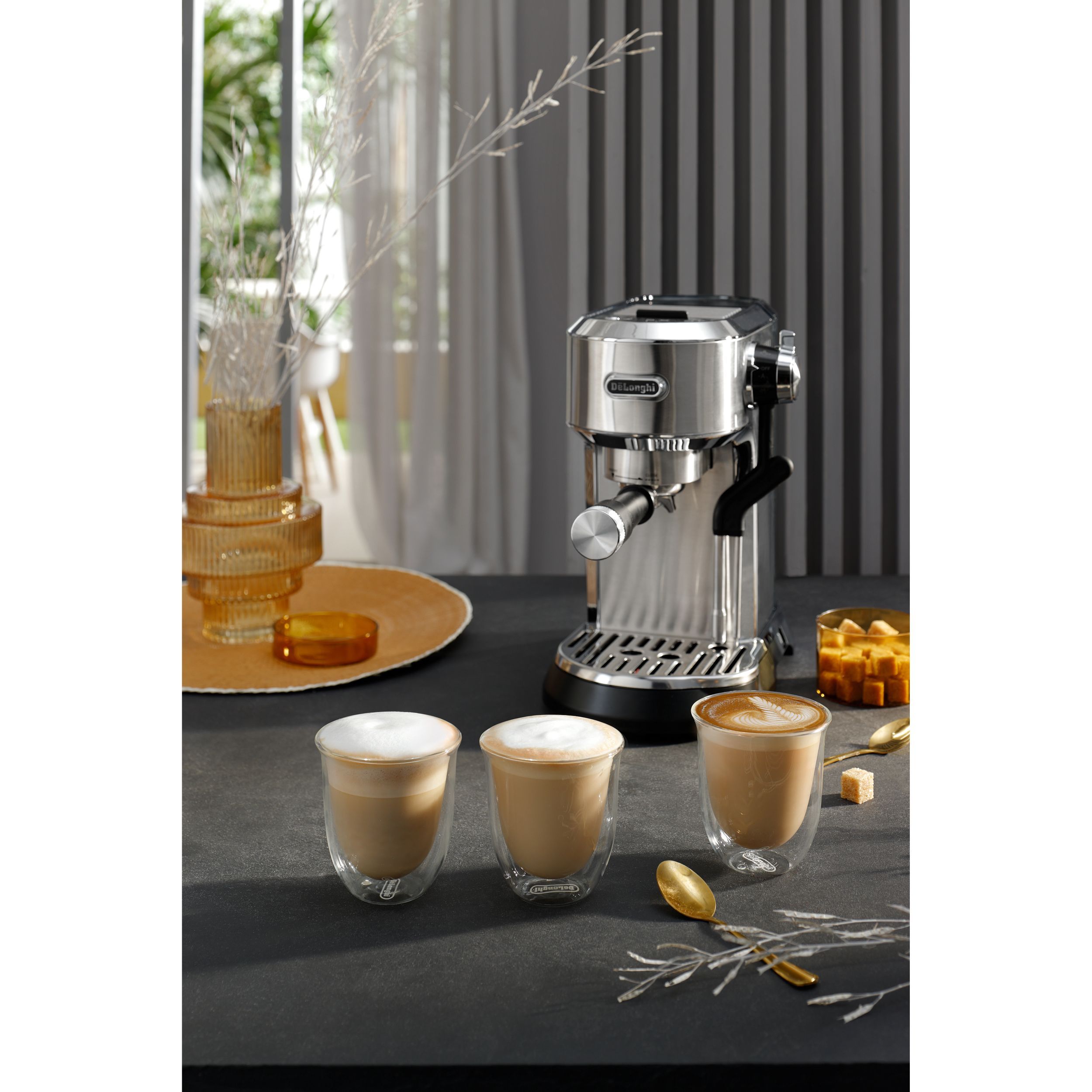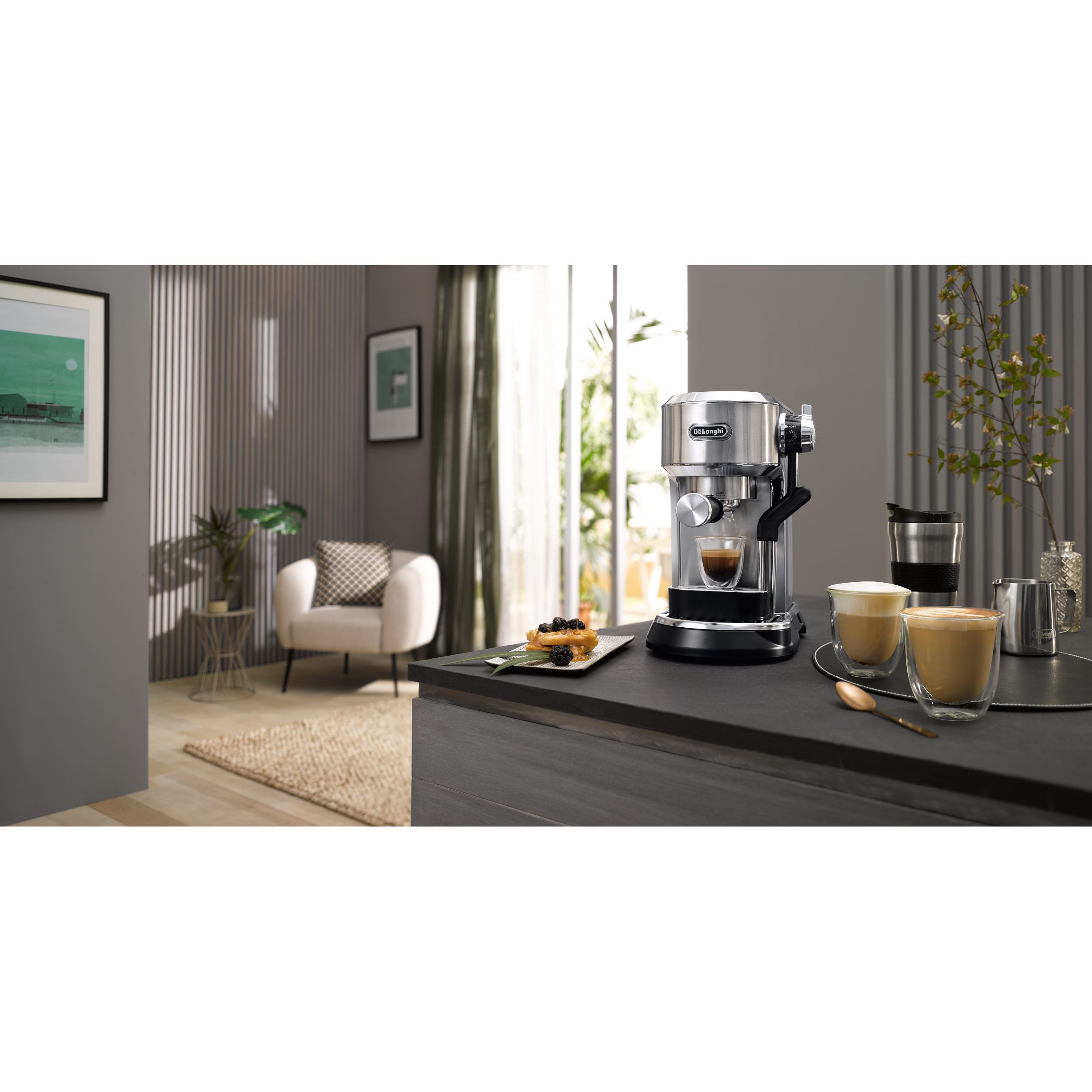 Bucurați-vă de o calitate superioară a cafelei acasă cu acest espressor manual compact De'Longhi Dedica Maestro Plus. Creați-vă propriile băuturi în stil barista, grație sistemului Auto LatteArt, cu trei profiluri de temperatură pentru infuzare, pentru a obține rezultatele perfecte pe gustul dumneavoastră. Această mașină premium are o nouă interfață cu utilizatorul, cu mai mult spațiu pentru setările utilizatorului prin simpla atingere a unui buton.