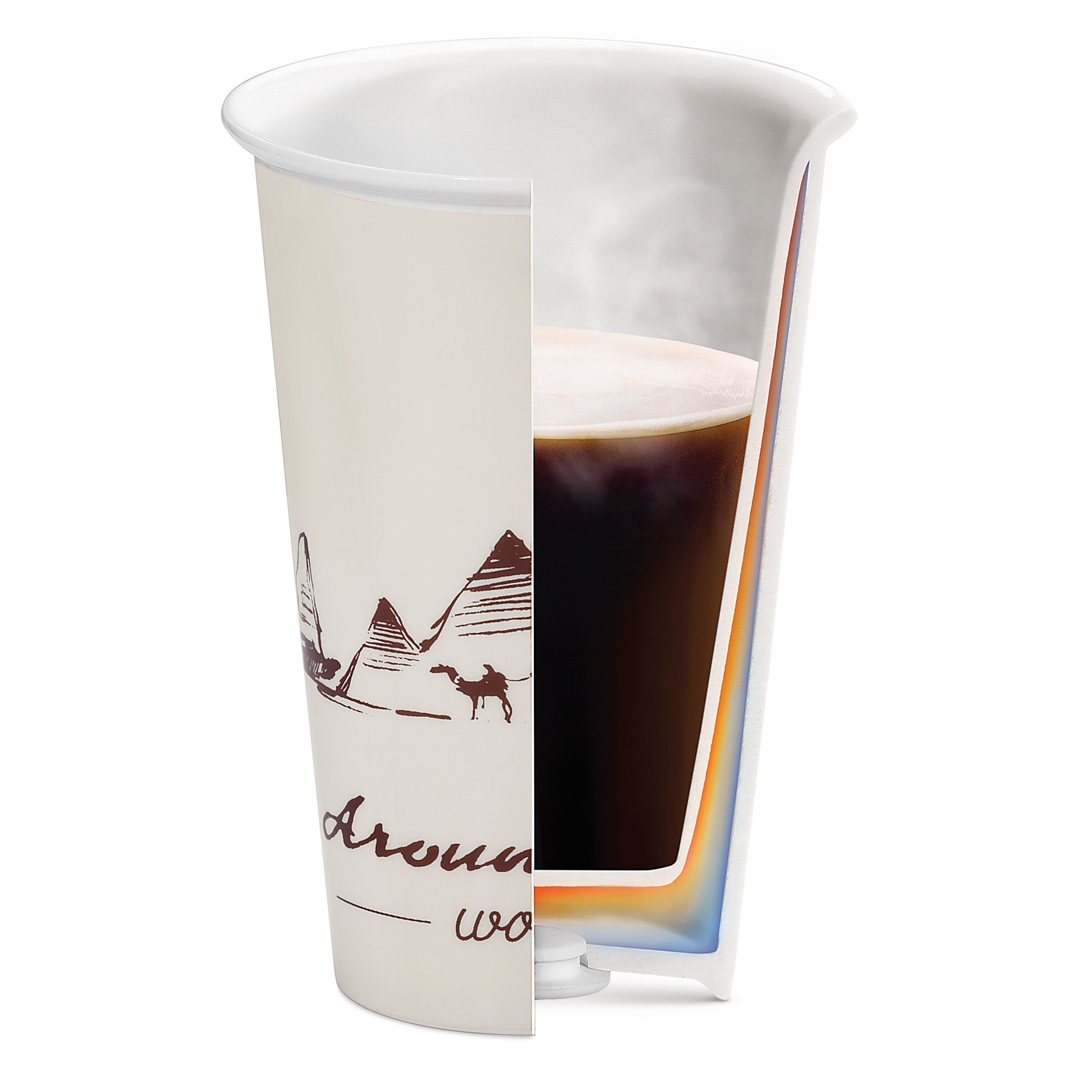 • Cană ceramică şi capac din silicon cu proprietăţi termice pentru a menţine băutura caldă pentru mai mult timp