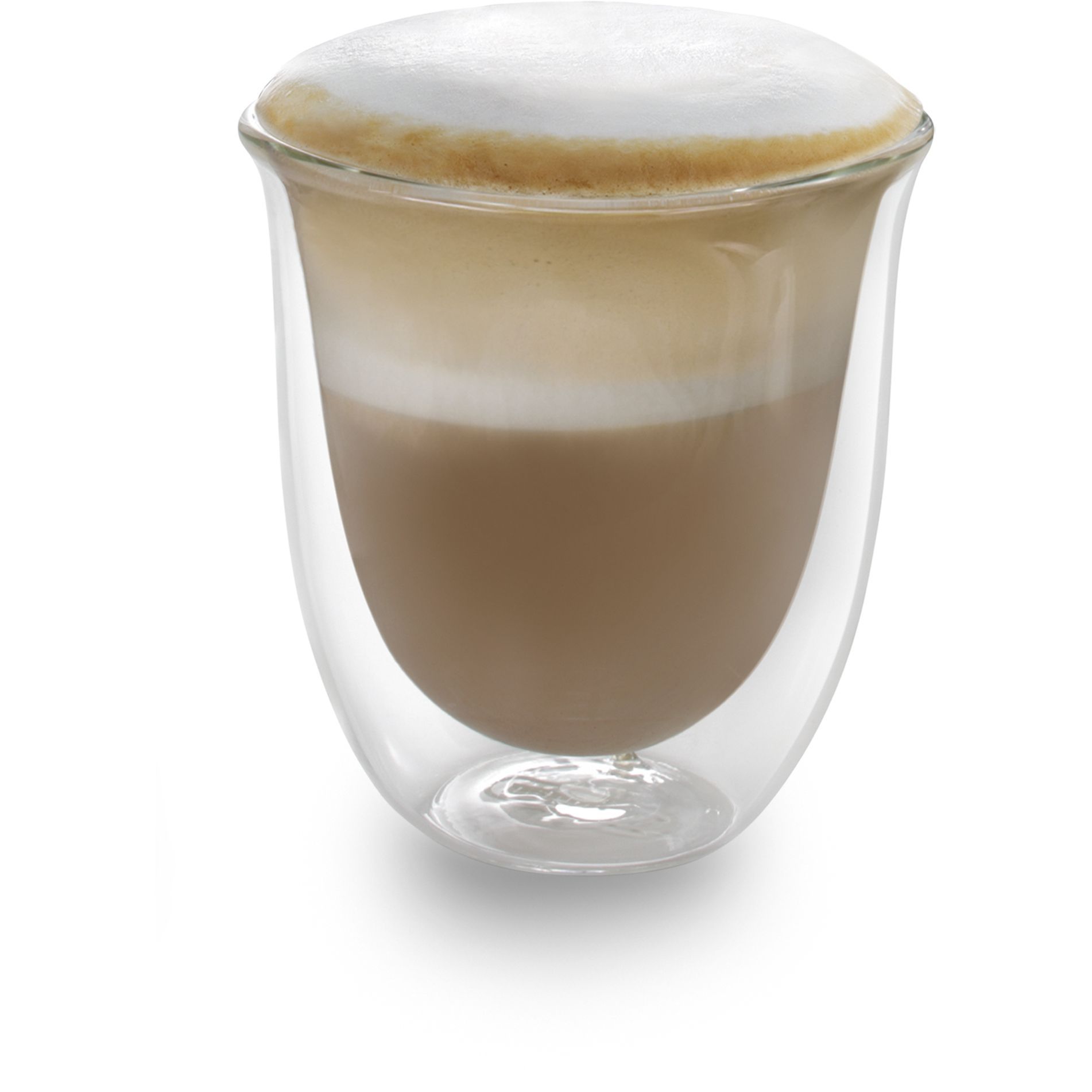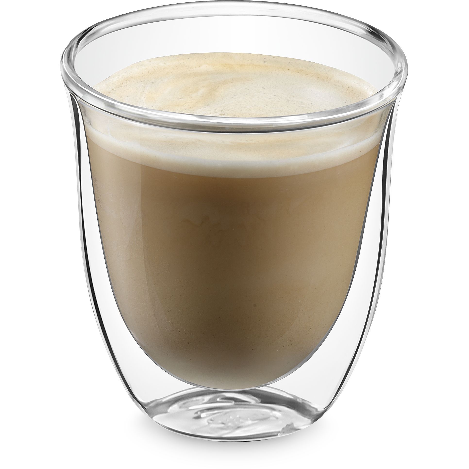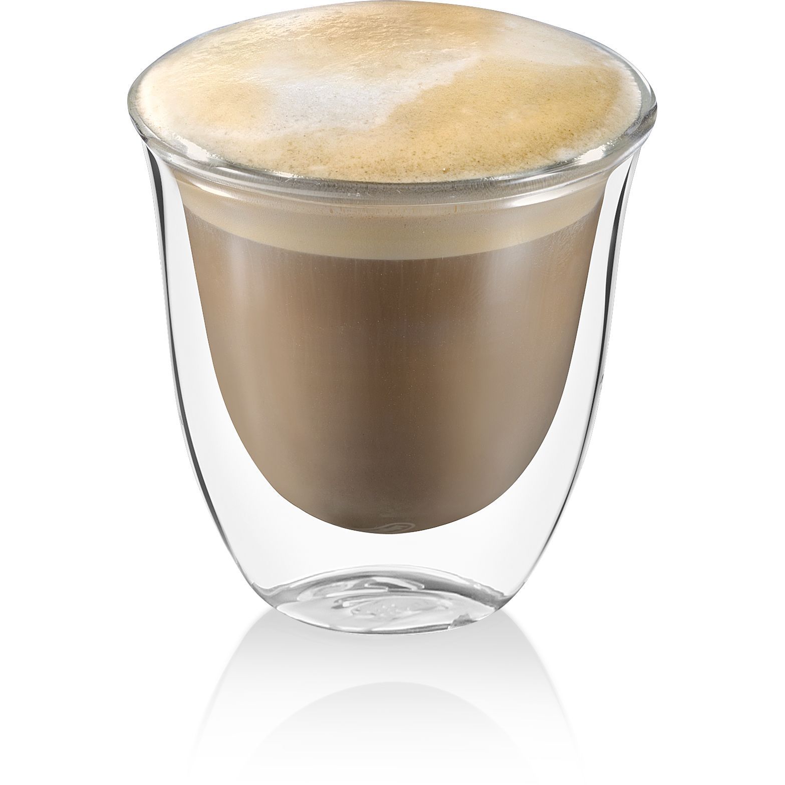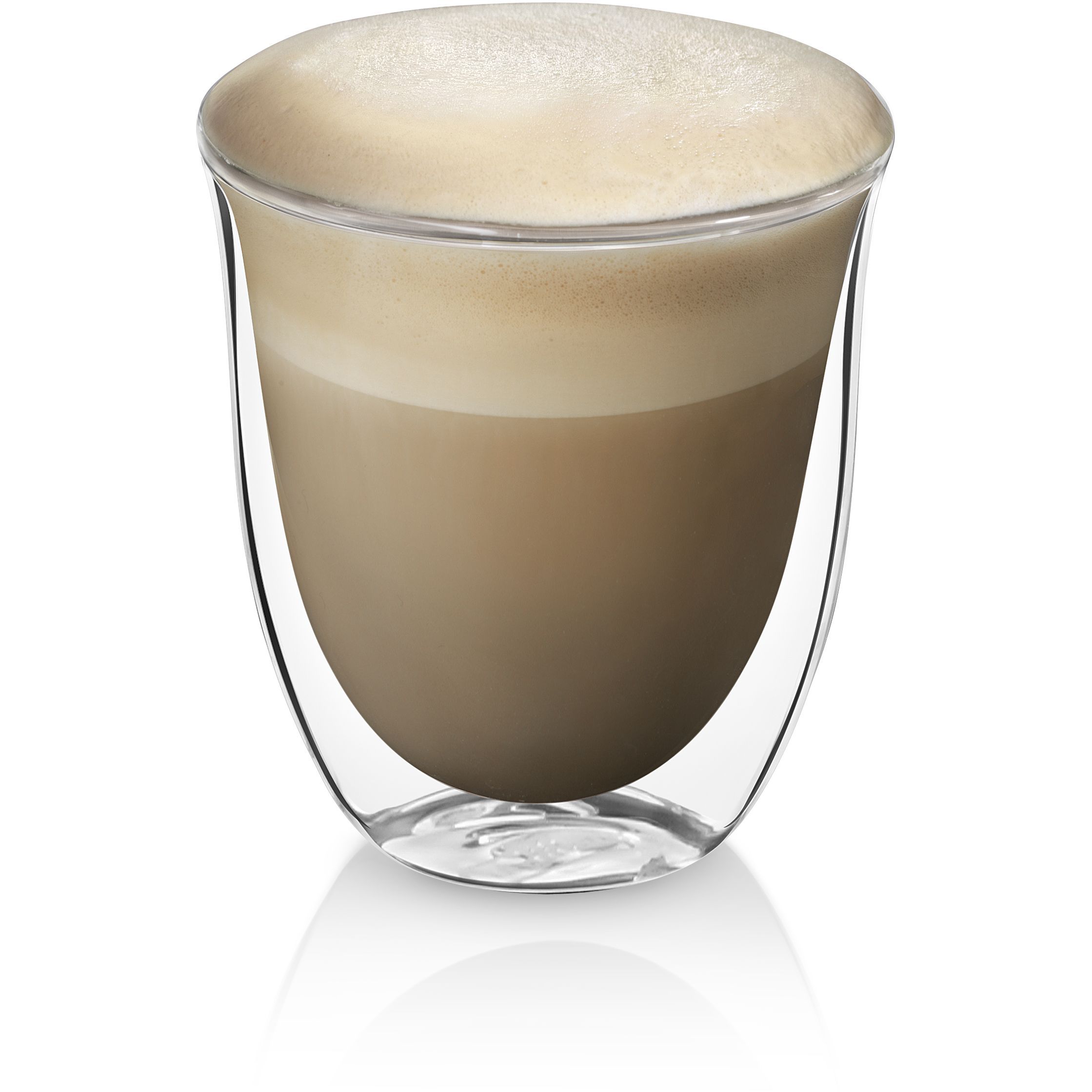 Paharele De’Longhi oferă modului de a servi cafeaua un plus de eleganță și rafinament. Paharele mențin temperatura cafelei constantă, datorită peretelui dublu din sticlă termorezistentă. Prin designul inovativ al acestora, paharele De’Longhi scot în evidență straturile perfecte ale unui cappuccino veritabil, în stil italian. Setul De’Longhi este un cadou perfect pentru iubitorii de cafea cu lapte. Setul conține două pahare De’Longhi pentru cappuccino, fiecare cu capacitatea de 270ml. Paharele pot fi introduse în mașina de spălat vase, pentru un proces de curățare complet.
