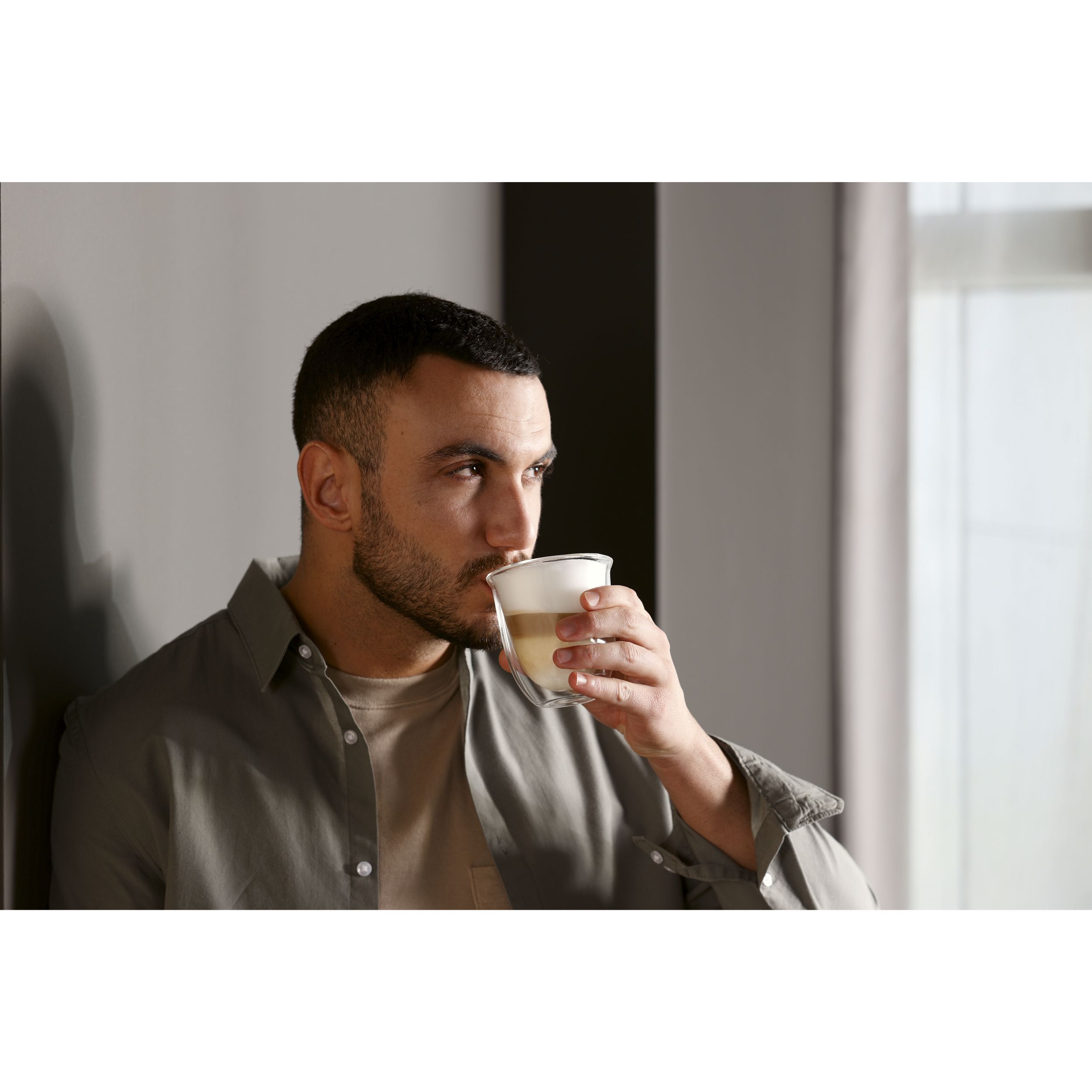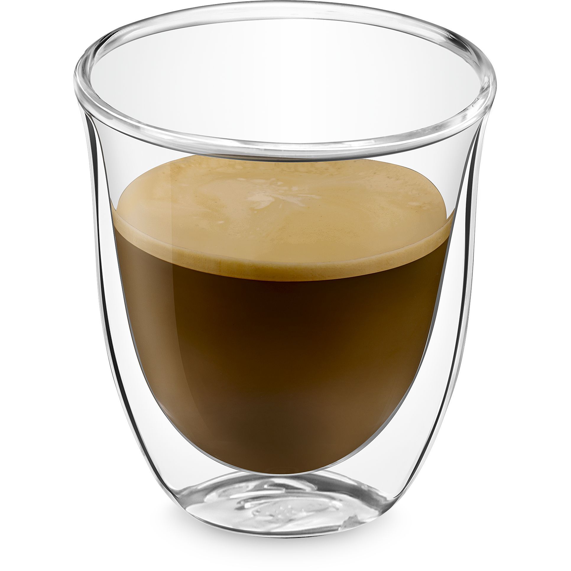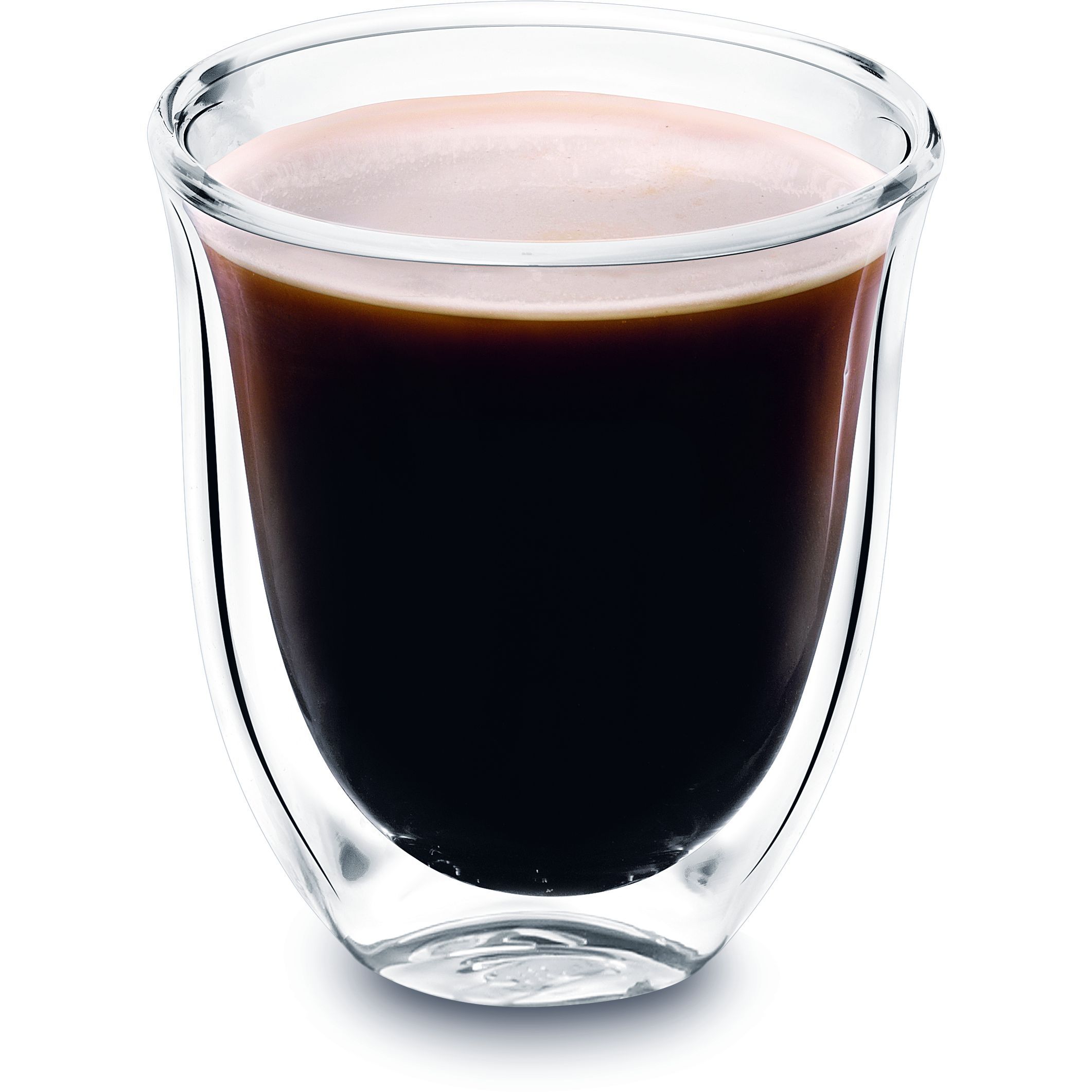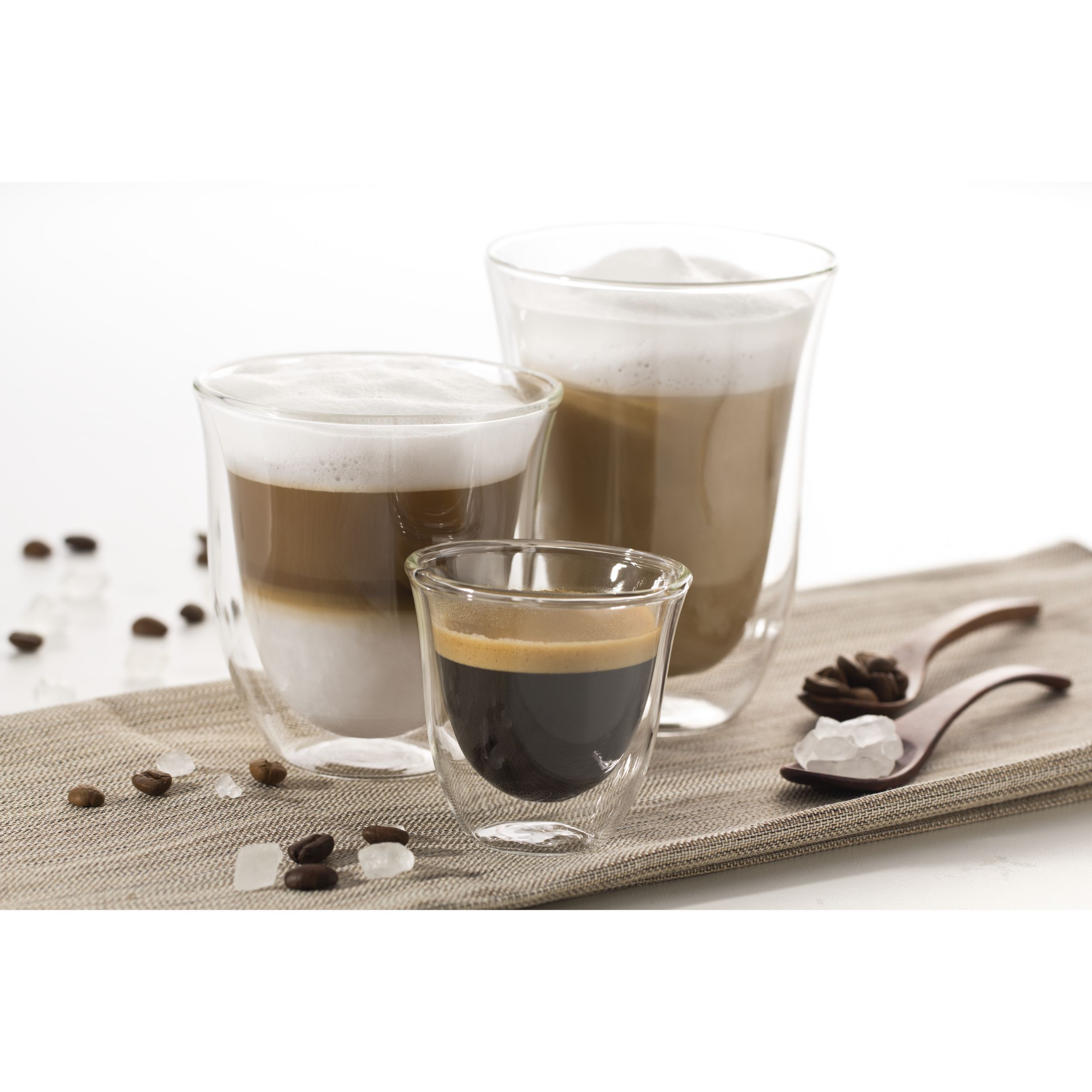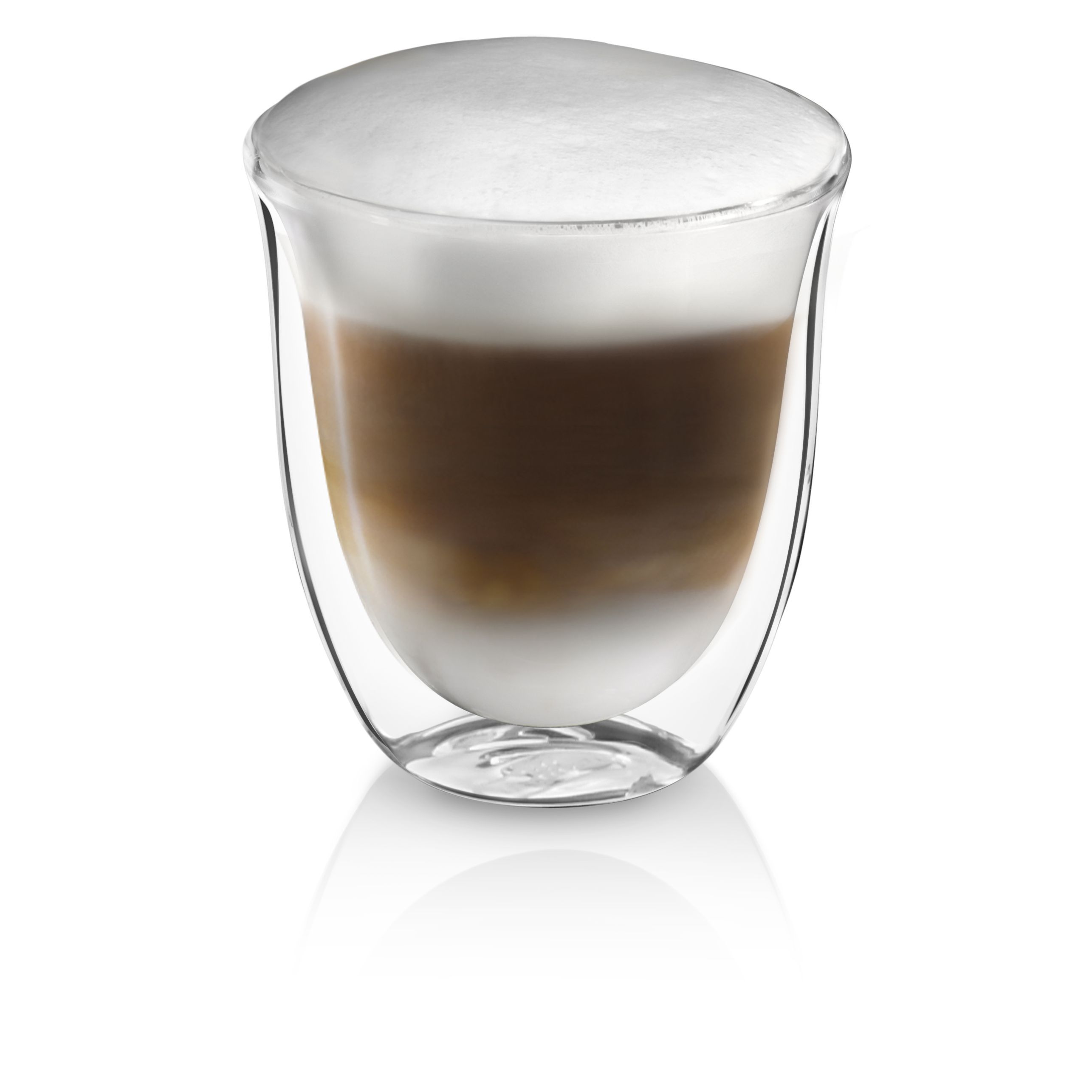 Paharele De’Longhi oferă modului de a servi cafeaua un plus de eleganță și rafinament. Paharele mențin temperatura cafelei constantă, datorită peretelui dublu din sticlă termorezistentă. Prin designul inovativ al acestora, paharele De’Longhi scot în evidență straturile perfecte ale unui cappuccino veritabil, în stil italian. Setul De’Longhi este un cadou perfect pentru iubitorii de cafea cu lapte. Setul conține două pahare De’Longhi pentru cappuccino, fiecare cu capacitatea de 270ml. Paharele pot fi introduse în mașina de spălat vase, pentru un proces de curățare complet.