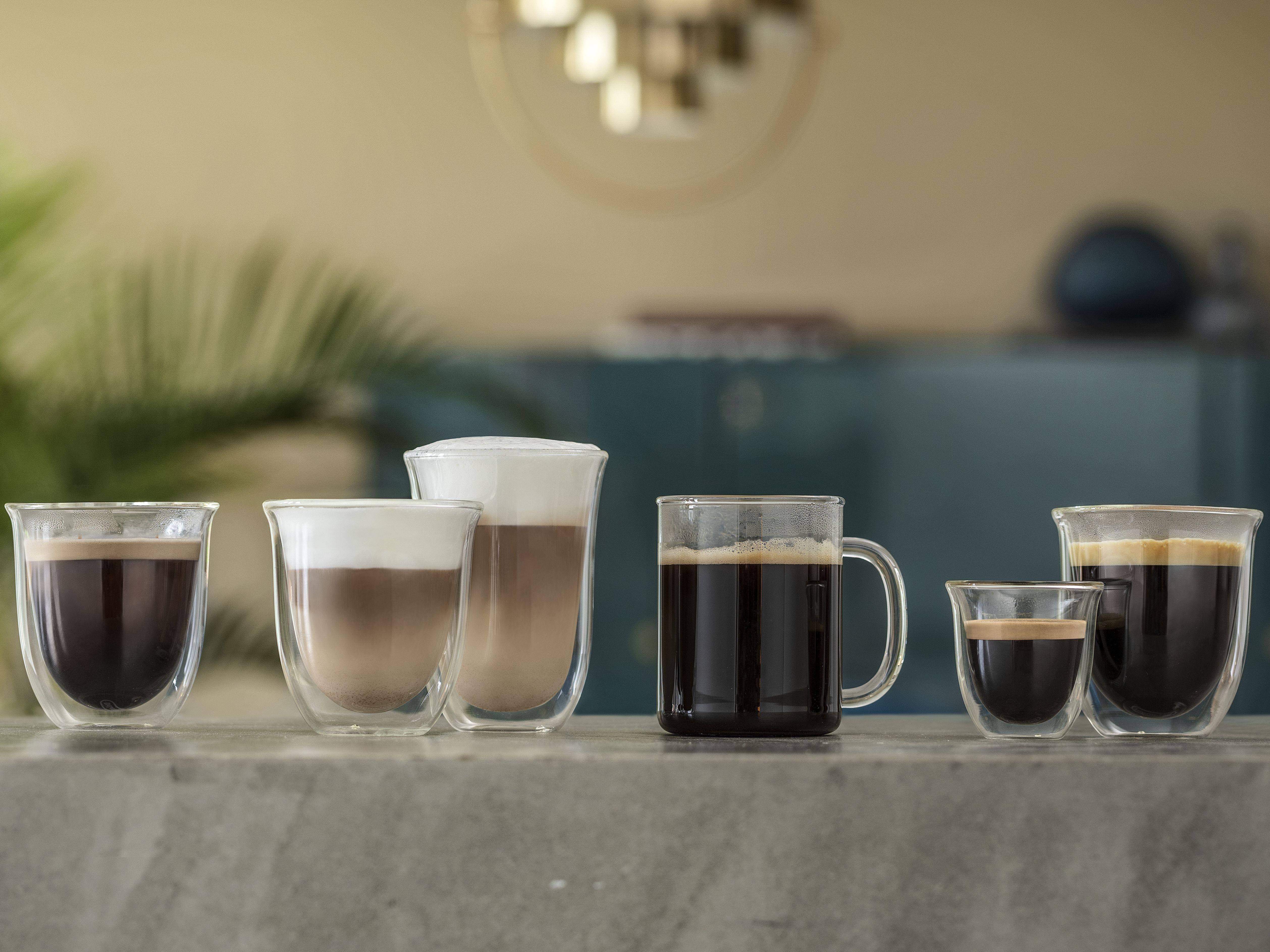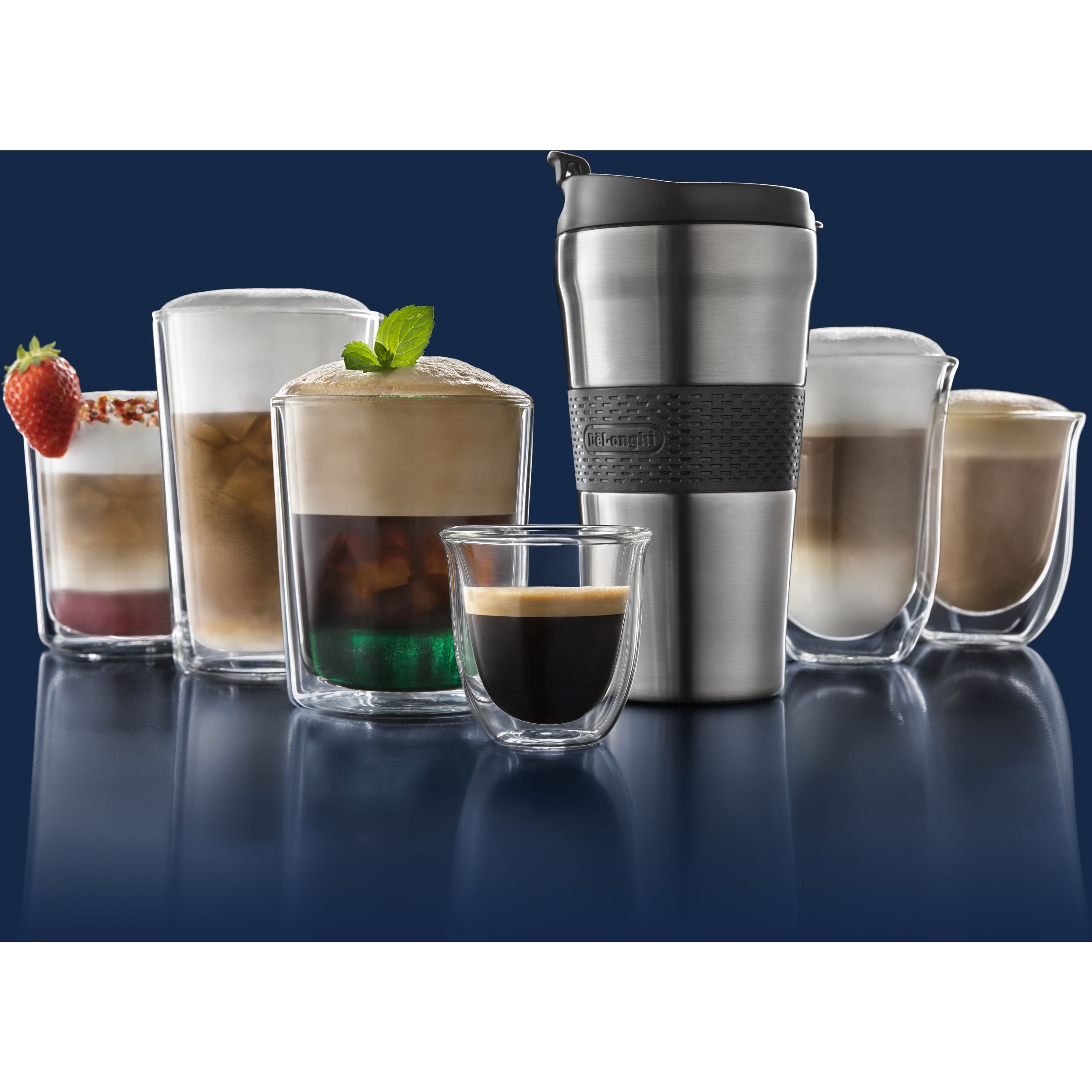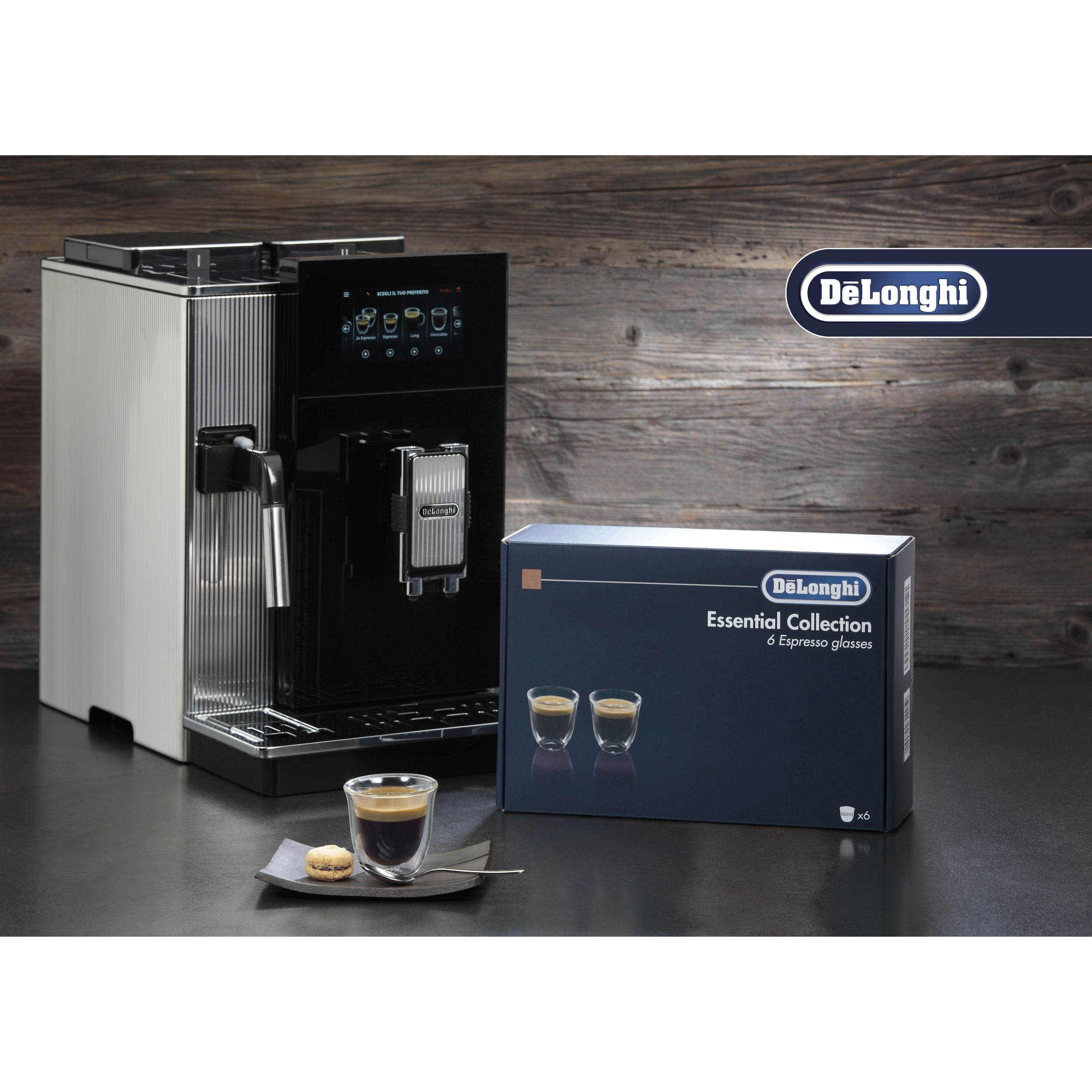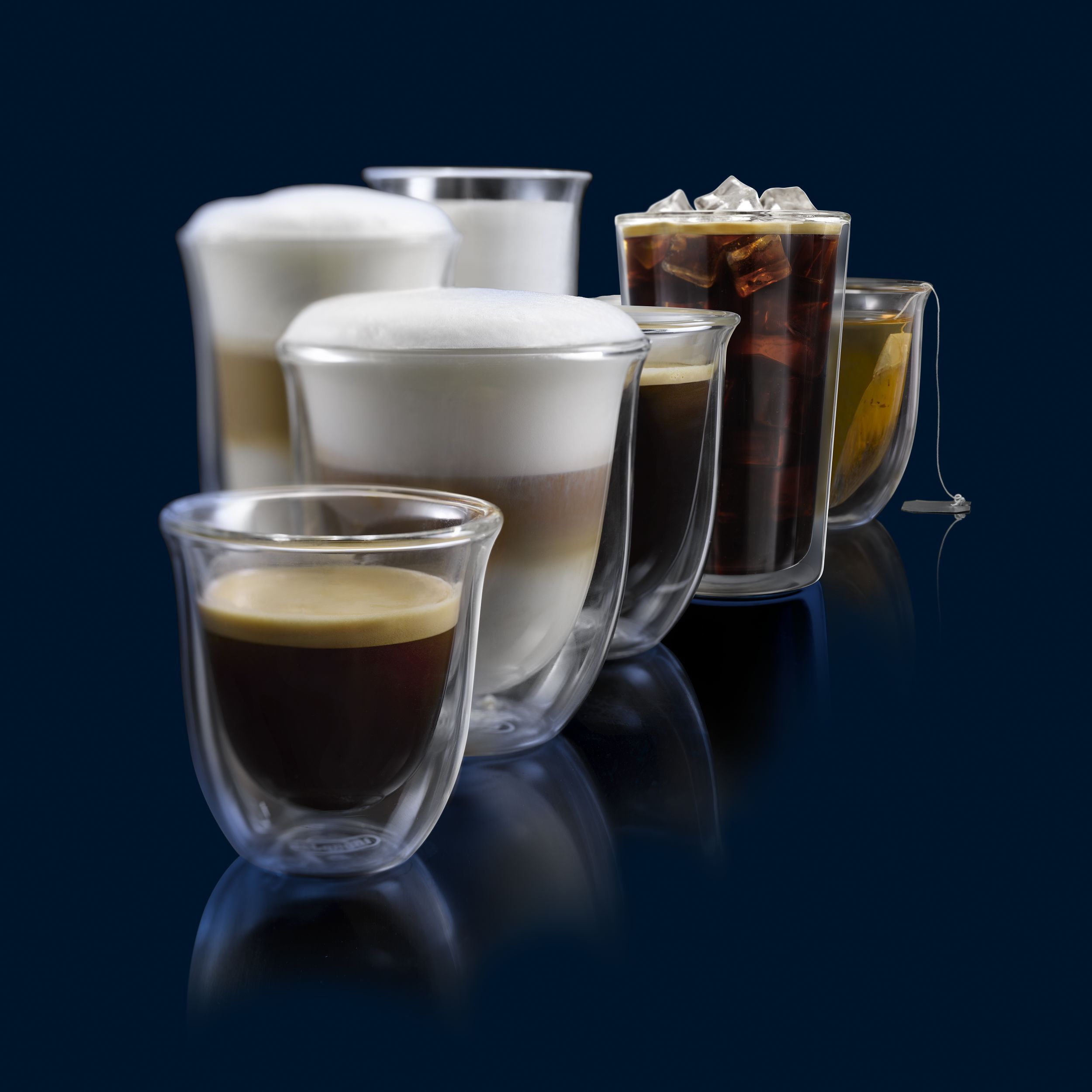 Paharele De'Longhi oferă modului de a servi cafeaua un plus de eleganță și rafinament. Paharele mențin temperatura cafelei constantă, datorită peretelui dublu din sticlă termorezistentă. Prin designul inovativ al acestora, paharele De’Longhi scot în evidență culoarea unui espresso perfect. Setul conține șase pahare De’Longhi pentru espresso, fiecare cu capacitatea de 90ml. Paharele pot fi introduse în mașina de spalat vase, pentru un proces de curățare complet.