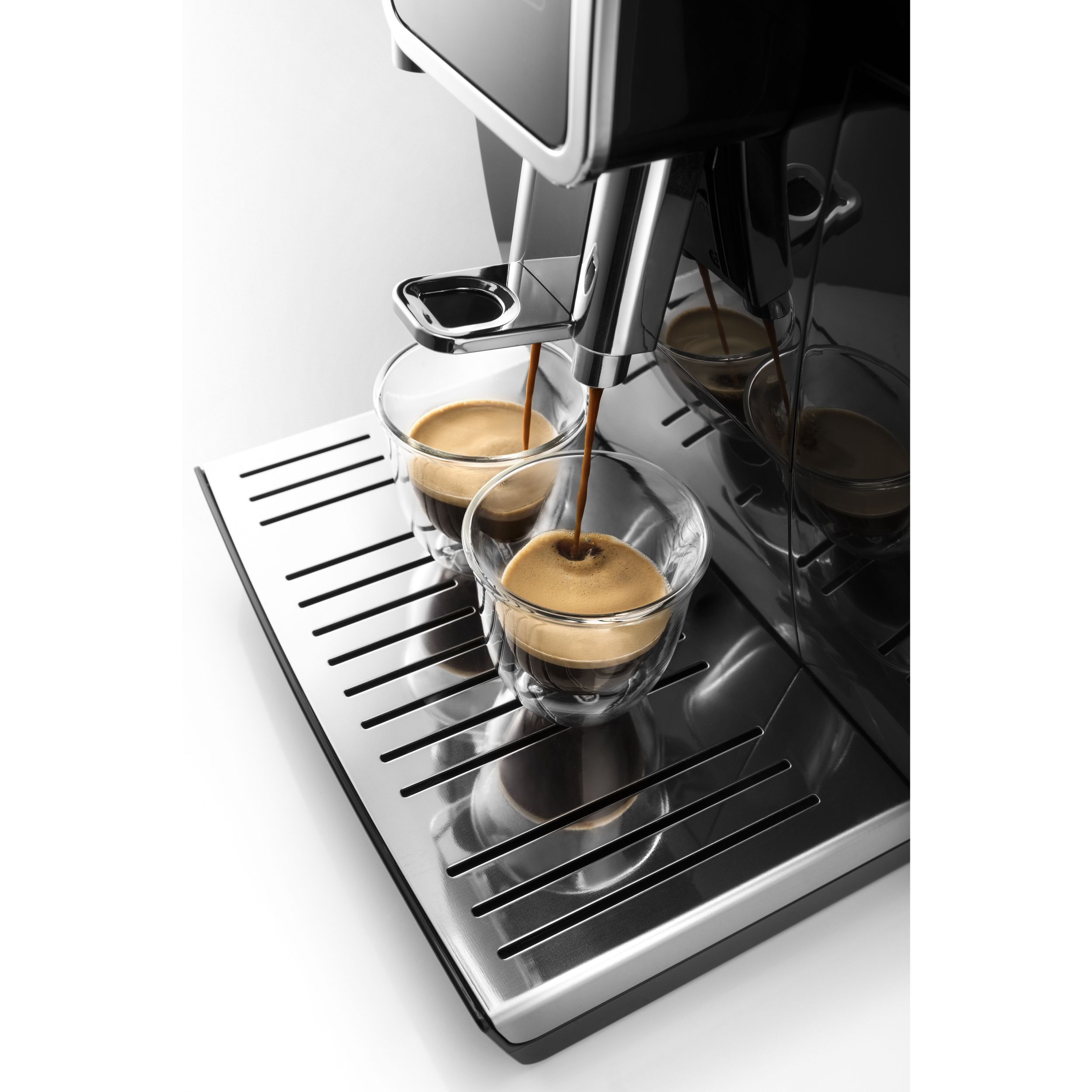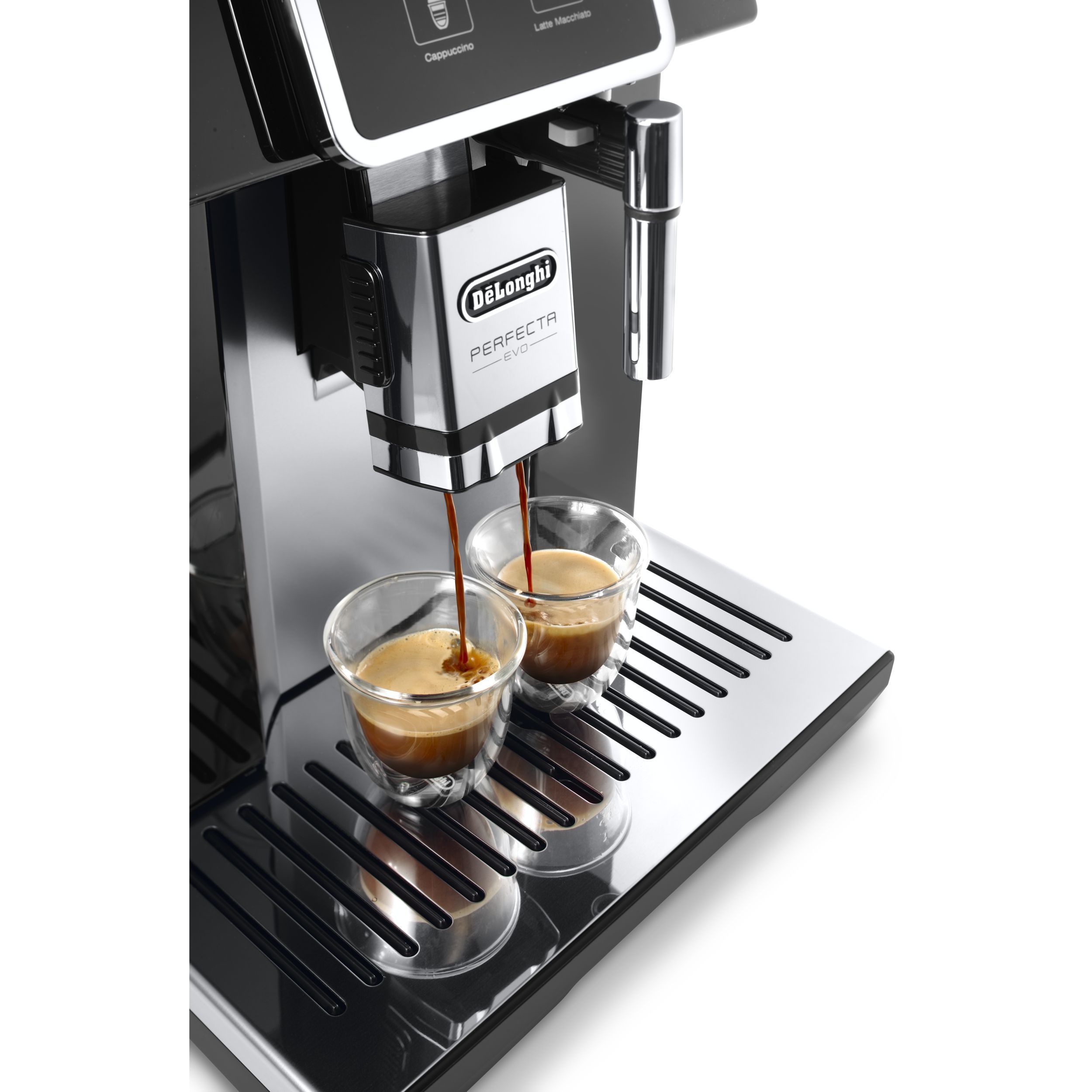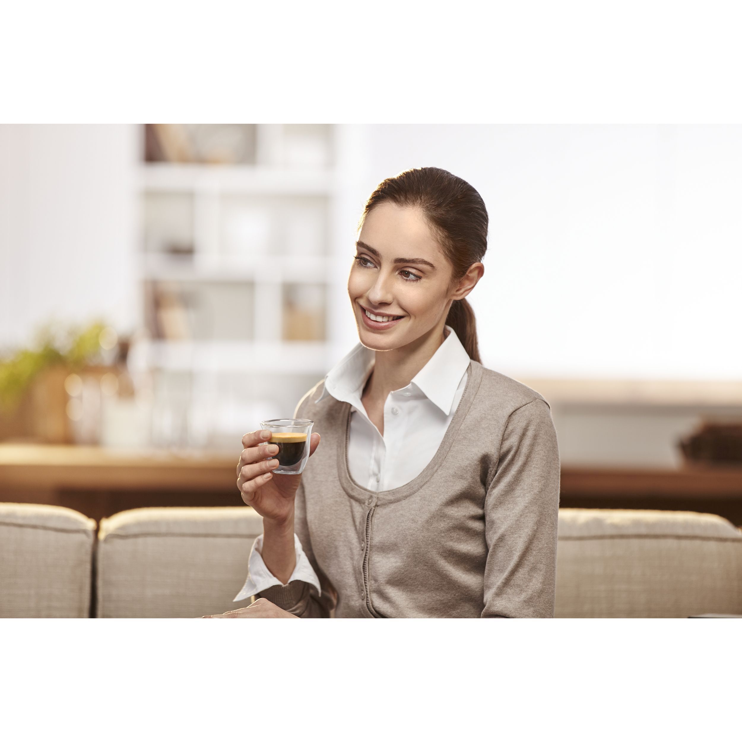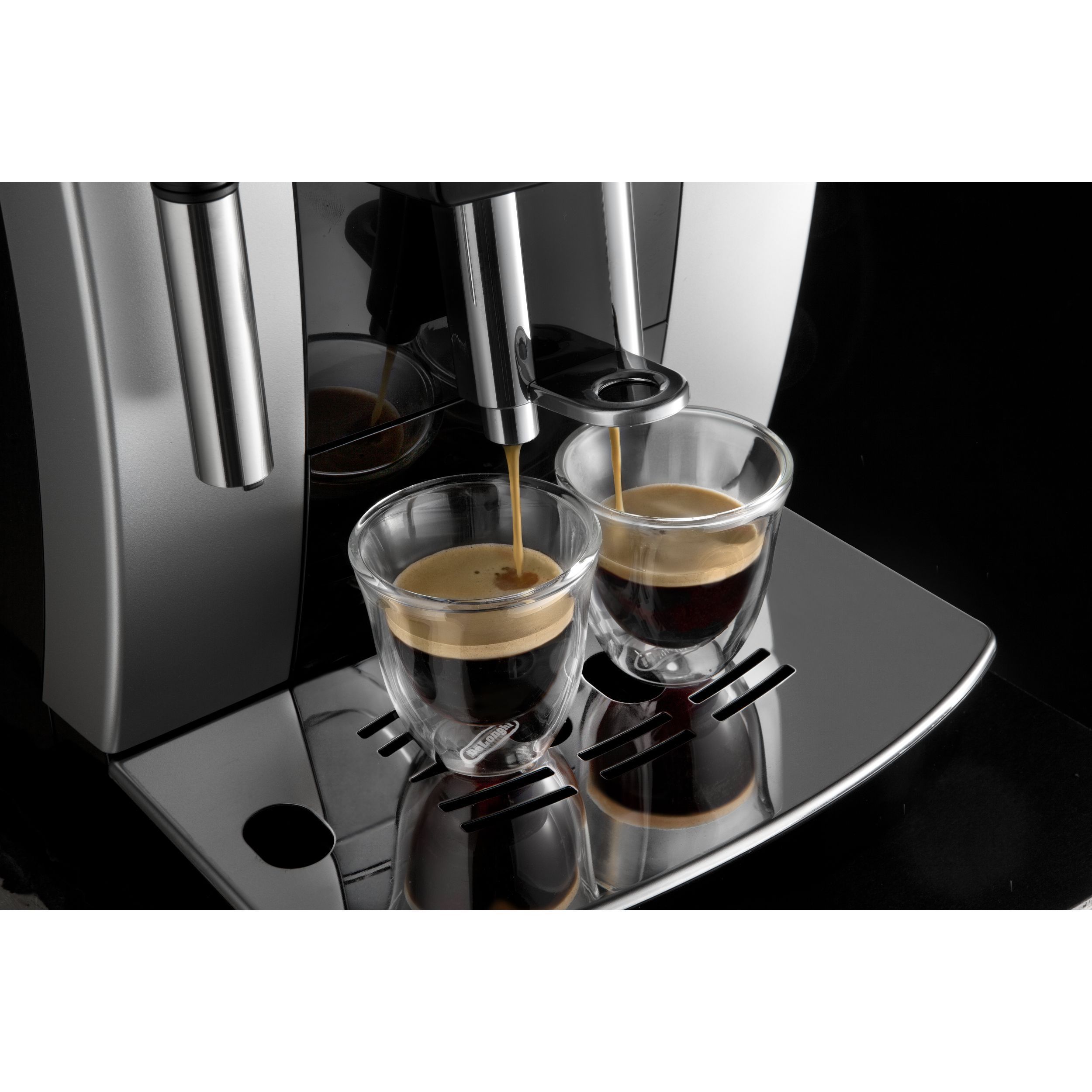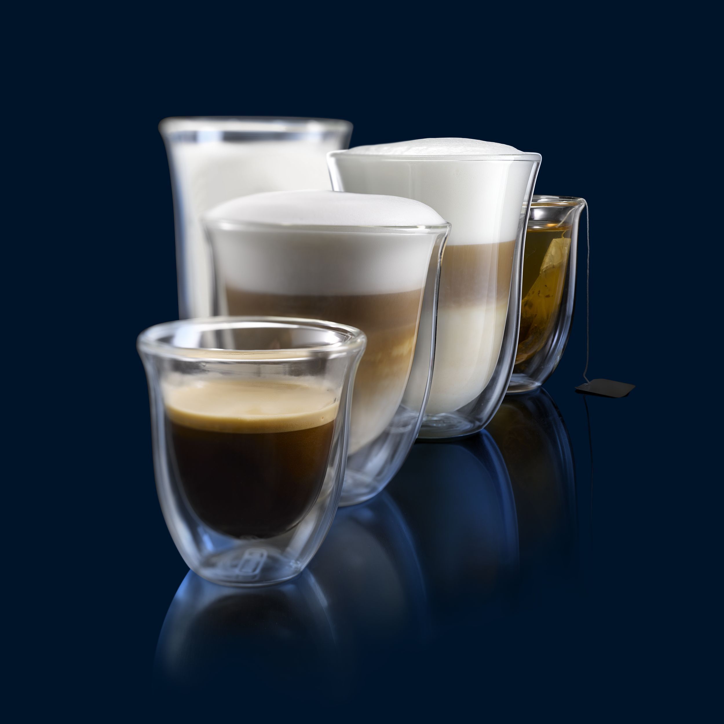 Paharele De'Longhi oferă modului de a servi cafeaua un plus de eleganță și rafinament. Paharele mențin temperatura cafelei constantă, datorită peretelui dublu din sticlă termorezistentă. Prin designul inovativ al acestora, paharele De’Longhi scot în evidență culoarea unui espresso perfect. Setul conține șase pahare De’Longhi pentru espresso, fiecare cu capacitatea de 90ml. Paharele pot fi introduse în mașina de spalat vase, pentru un proces de curățare complet.