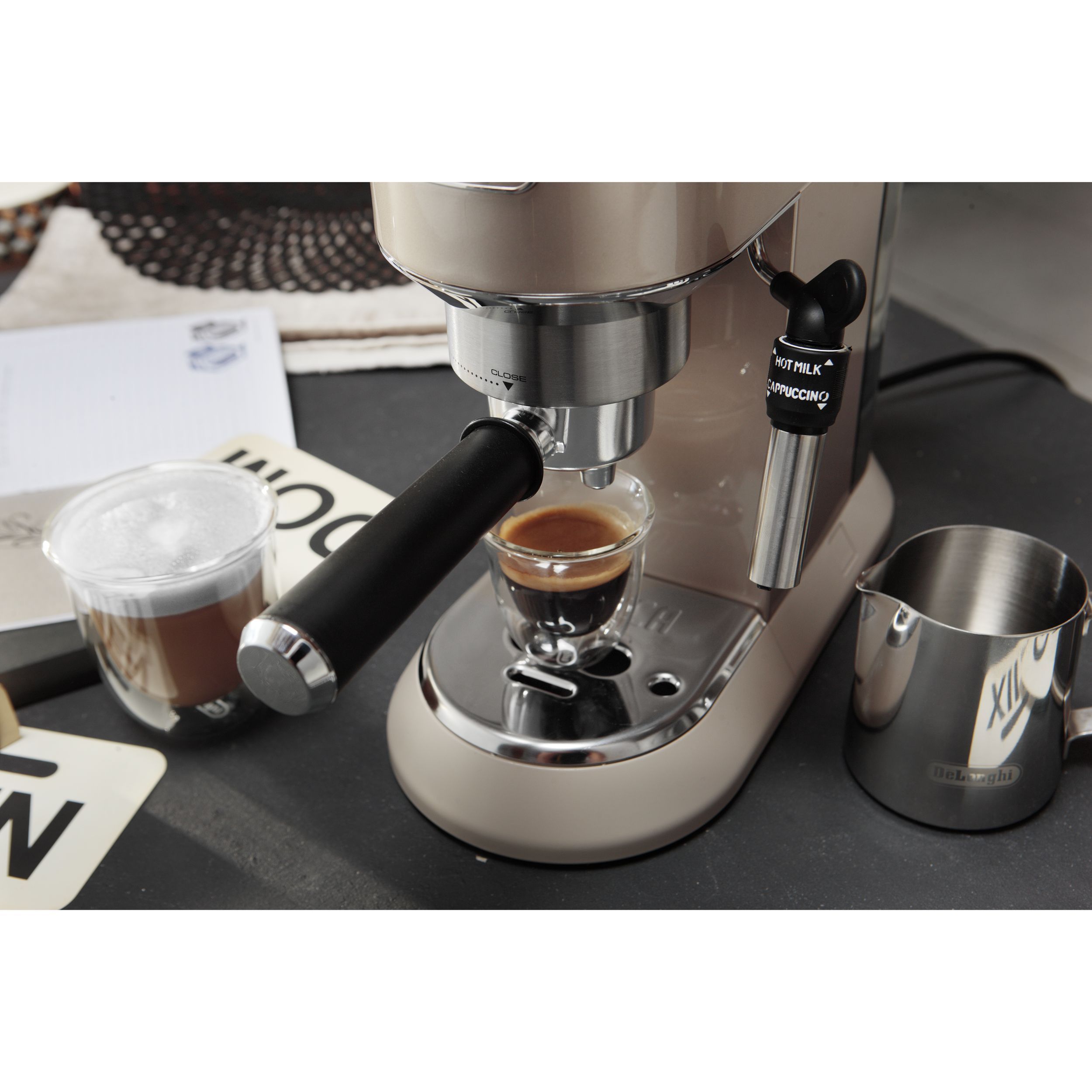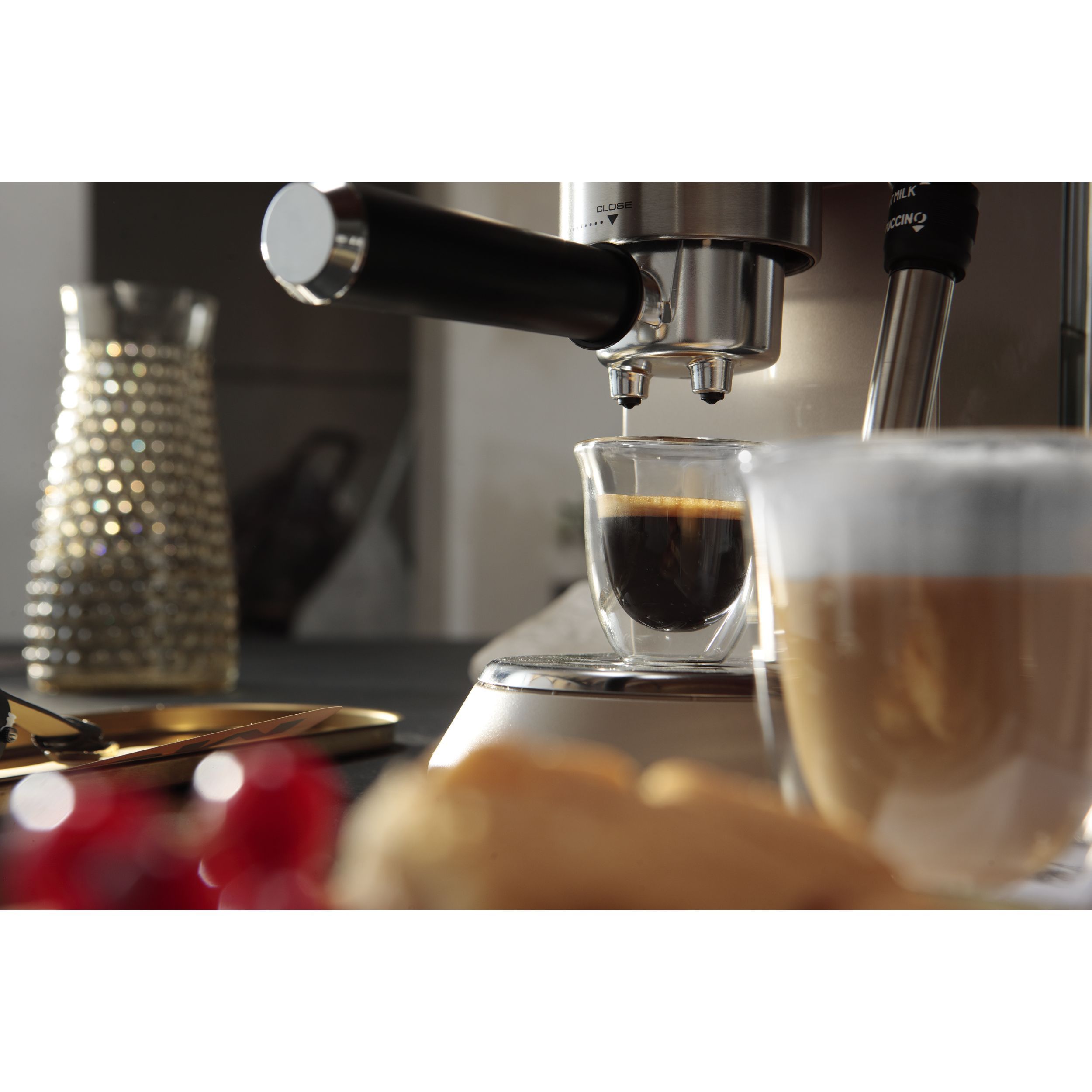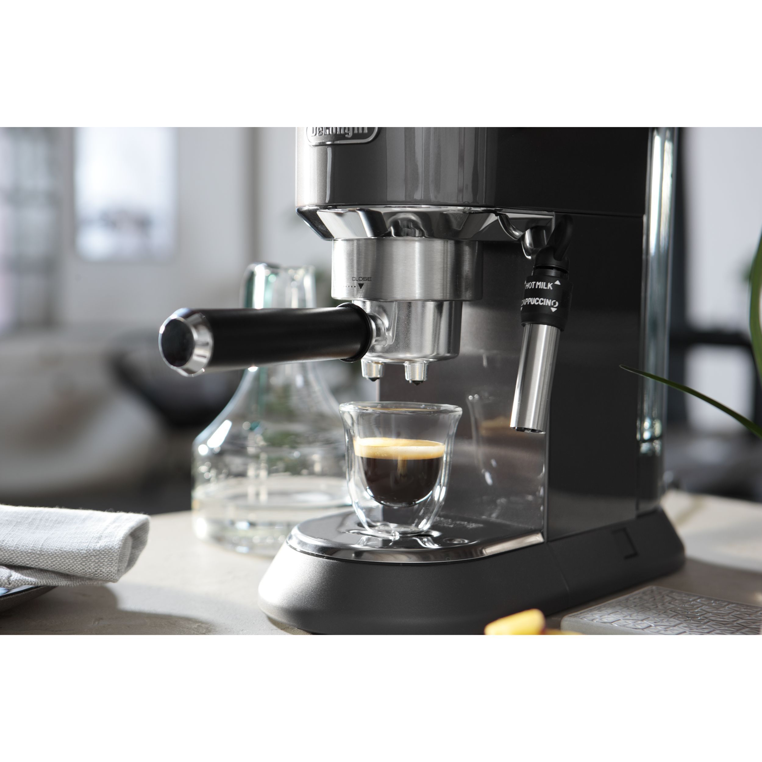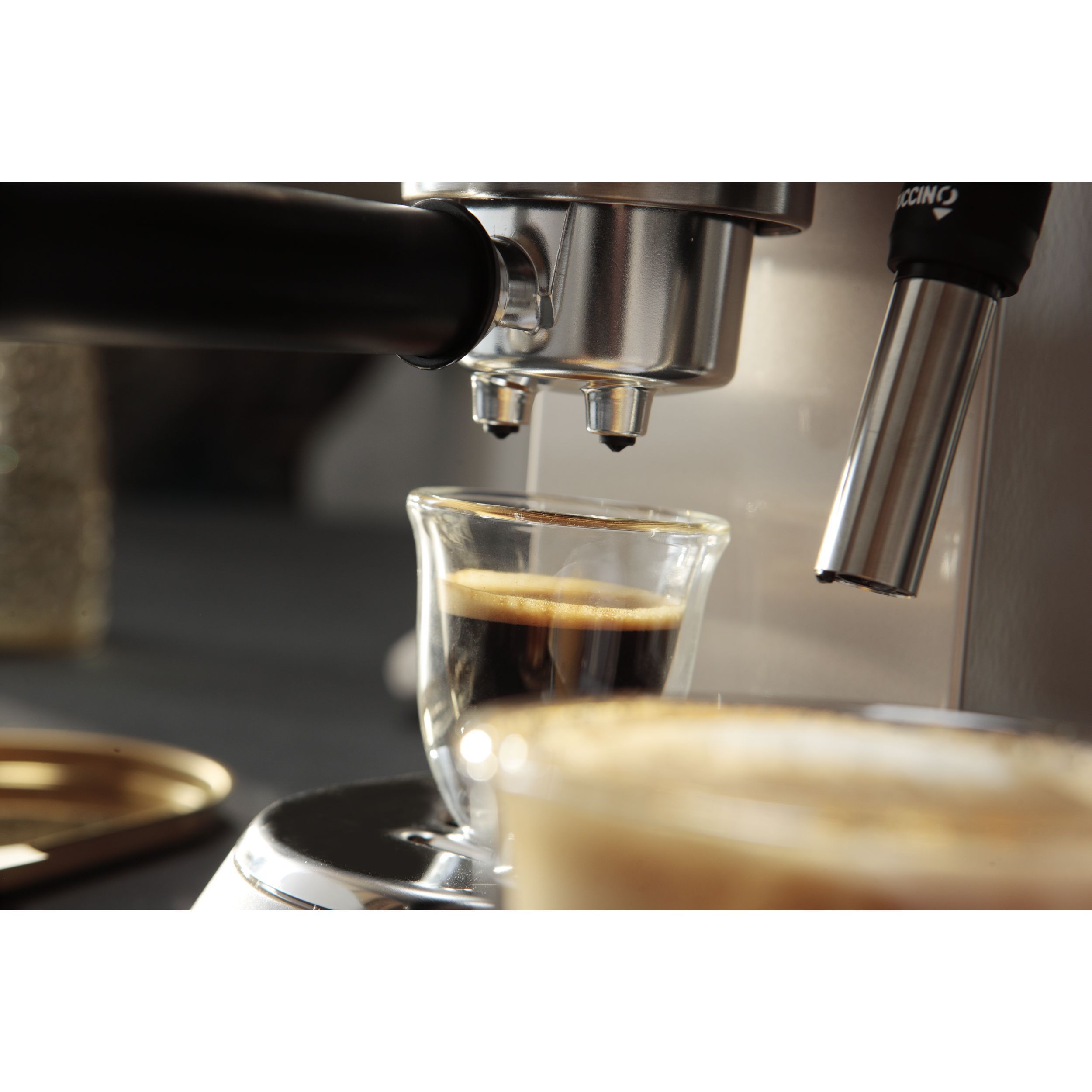 Paharele De'Longhi oferă modului de a servi cafeaua un plus de eleganță și rafinament. Paharele mențin temperatura cafelei constantă, datorită peretelui dublu din sticlă termorezistentă. Prin designul inovativ al acestora, paharele De’Longhi scot în evidență culoarea unui espresso perfect. Setul conține șase pahare De’Longhi pentru espresso, fiecare cu capacitatea de 90ml. Paharele pot fi introduse în mașina de spalat vase, pentru un proces de curățare complet.