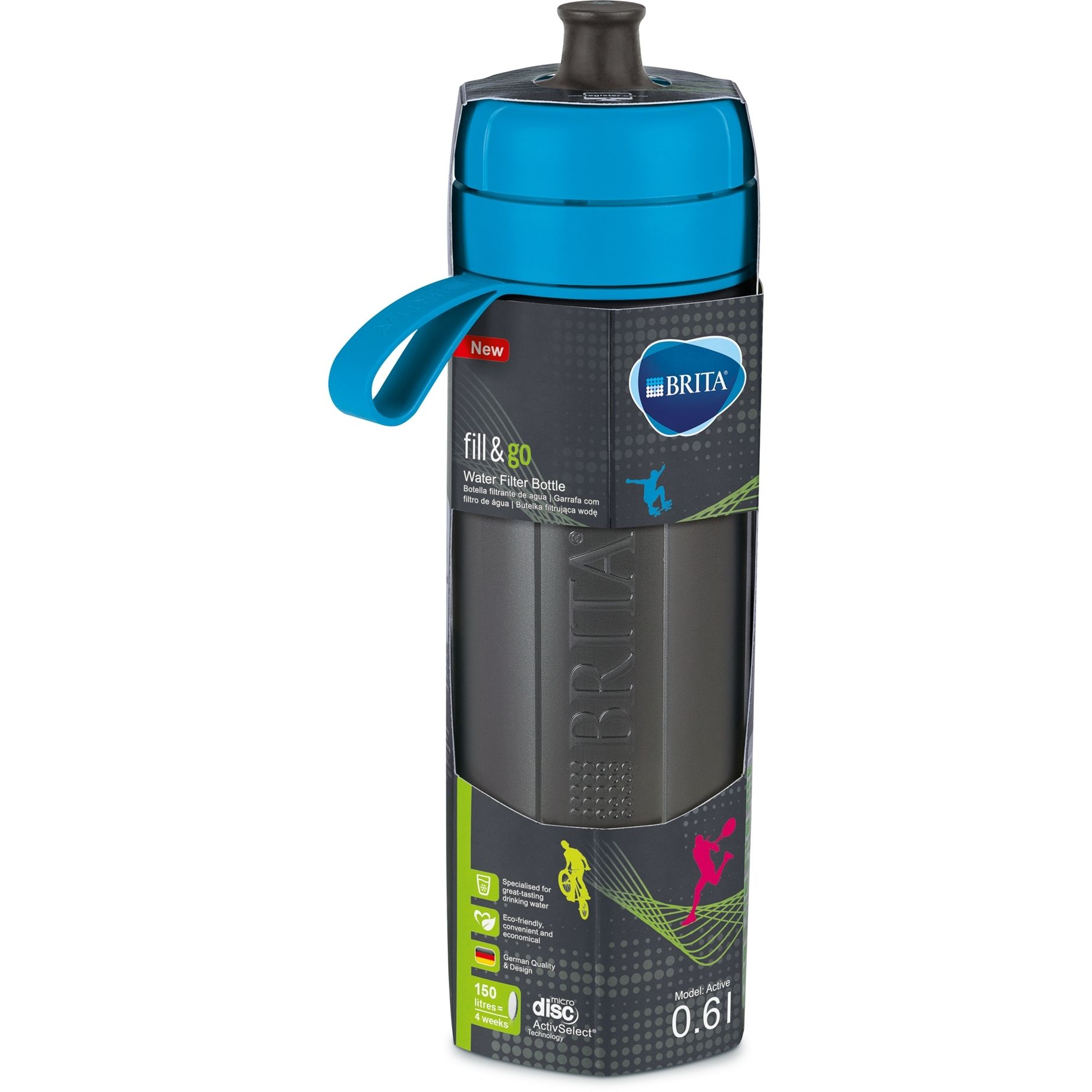 Sticlă filtrantă BRITA Fill&Go Active BR1020336, V600ml, Include 1 disc MicroDisc, 1 disc 4 săptămâni sau aprox 150l, Fără BPA, DW safe (până la 50°C), Blue and Grey