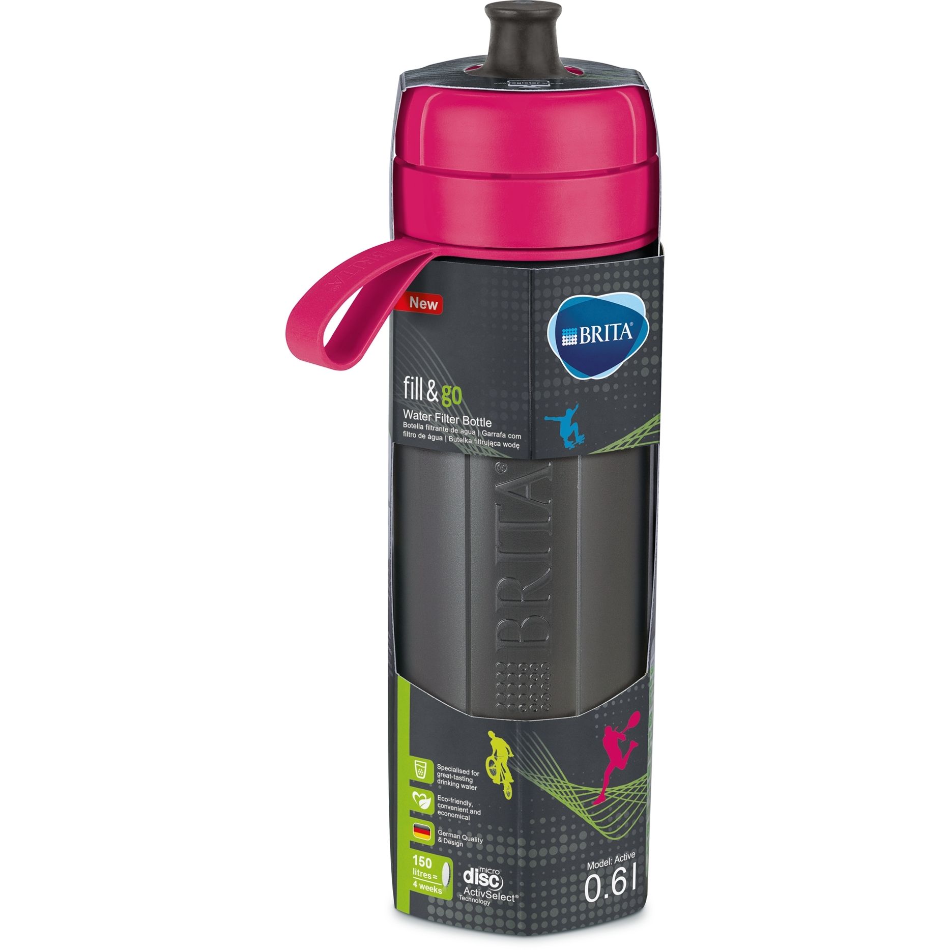 Sticlă filtrantă BRITA Fill&Go Active BR1020337, V600ml, Include 1 disc MicroDisc, 1 disc 4 săptămâni sau aprox 150l, Fără BPA, DW safe (până la 50°C), Pink and Grey