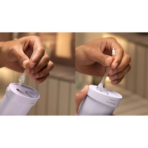 Irigator bucal portabil Philips Sonicare Compact Flosser 1000 HX3333/23, Rezervor 200ml, 2 capete de curățare, cablu încărcare USB, Violet