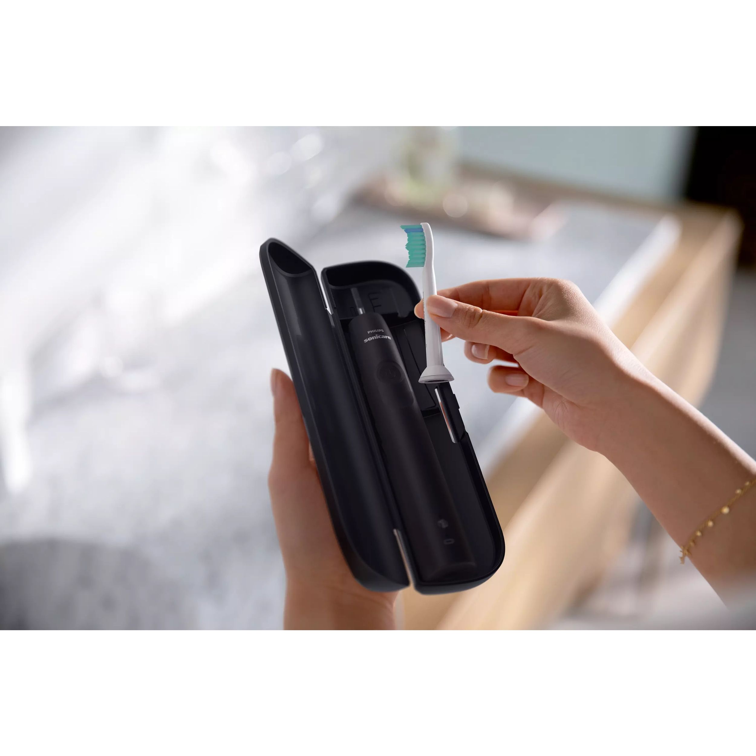 Îţi face călătoria mai uşoară. Tocul nostru premium de transport îţi permite să depozitezi igienic periuţa de dinţi, în timp ce baza noastră de încărcare compactă cu USB menţine bateria încărcată în timpul deplasărilor, beneficiezi de două săptămâni de utilizare regulată la o singură încărcare completă, încărcătorul fiind util pentru călătorii mai lungi.