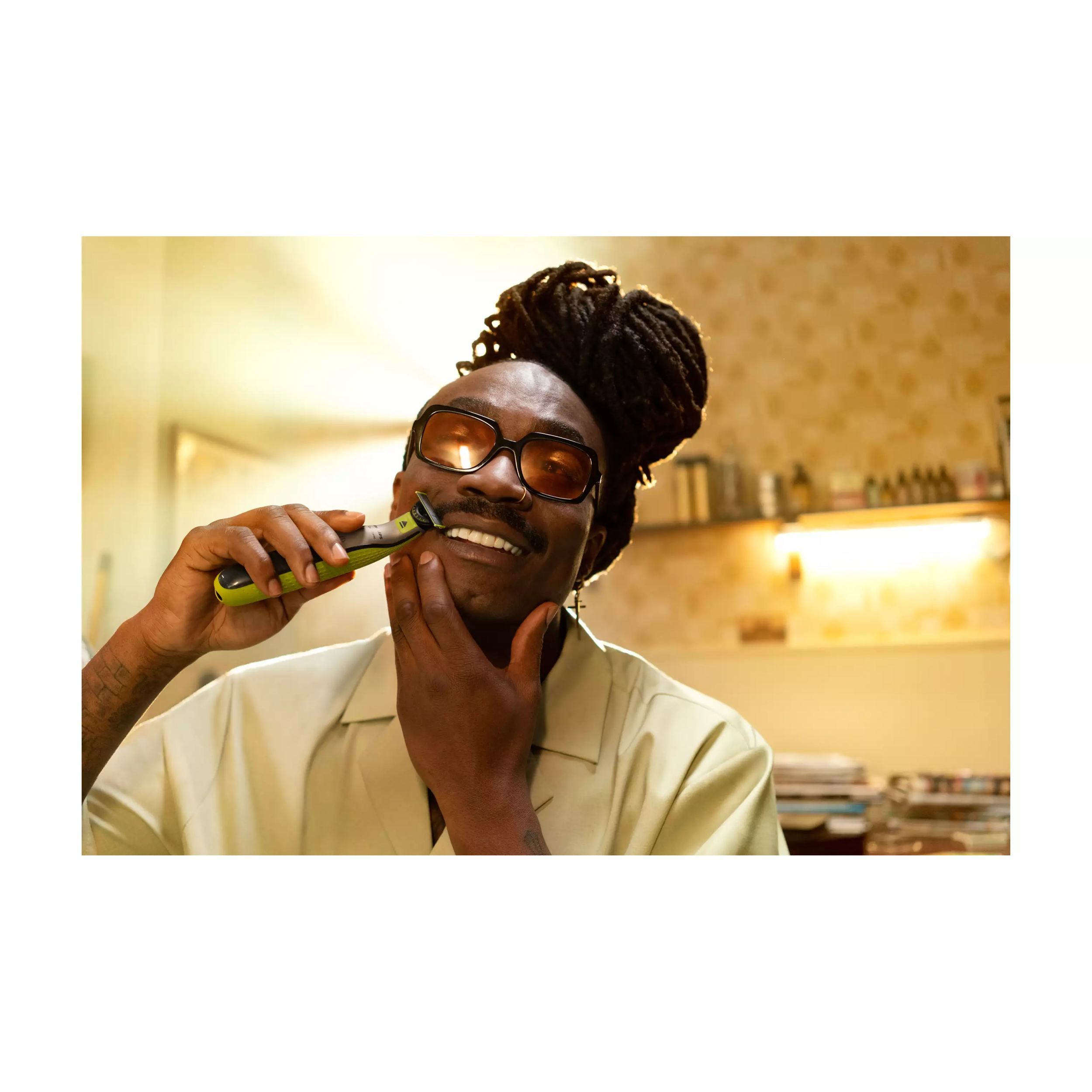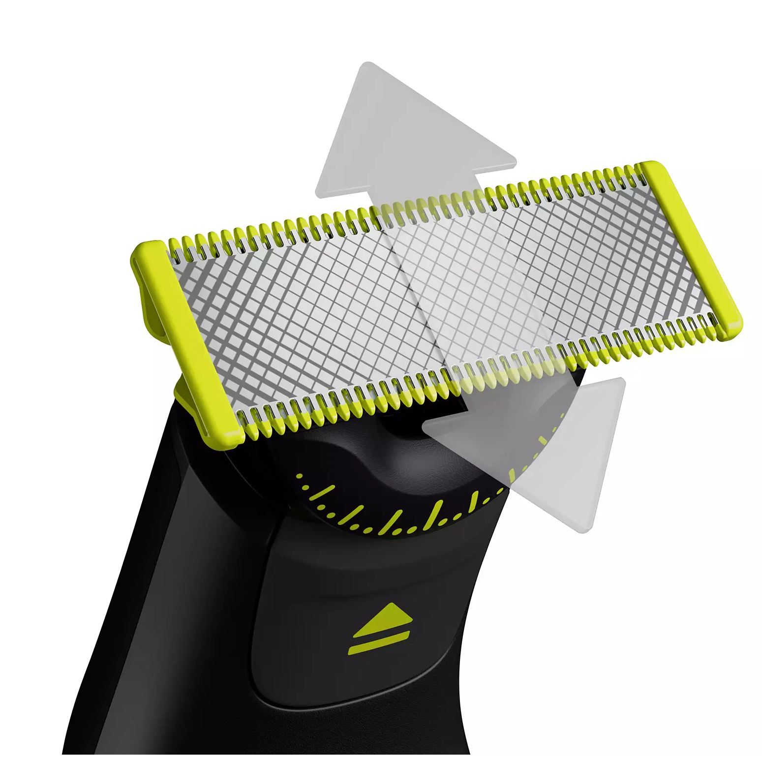 Philips OneBlade este un nou aparat de stilizat hibrid revoluţionar, care poate tunde, rade şi crea linii şi margini curate, pe orice lungime de păr. Sistemul său dublu de protecţie – un strat de alunecare combinat cu vârfuri rotunjite – face bărbieritul mai uşor şi mai confortabil. Tehnologia să de bărbierire dispune de un dispozitiv de tăiere cu mişcare rapidă, care se deplasează de până la 12.000 de ori pe minut şi trece prin orice lungime de păr.