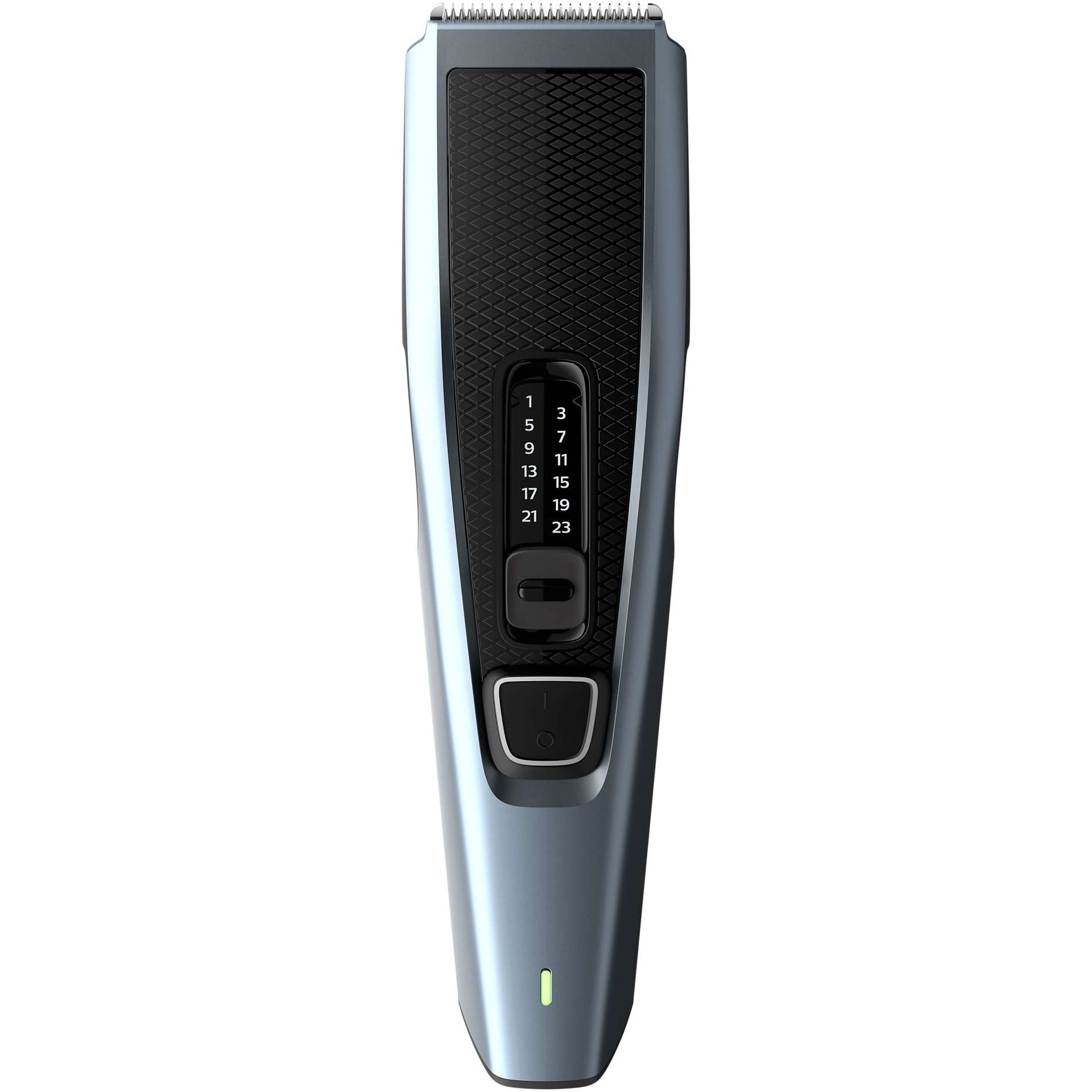 Selectează uşor şi blochează 13 setări pentru lungime: de la 0,5 la 23 mm. Pur şi simplu selectează şi blochează lungimea pe care o doreşti. Pieptenele reglabil dispune de 12 setări de lungime blocabile, de la 1 la 23 mm, cu fix 2 mm între fiecare lungime. Poţi şi să scoţi pieptenele pentru un tuns scurt de 0,5 mm.