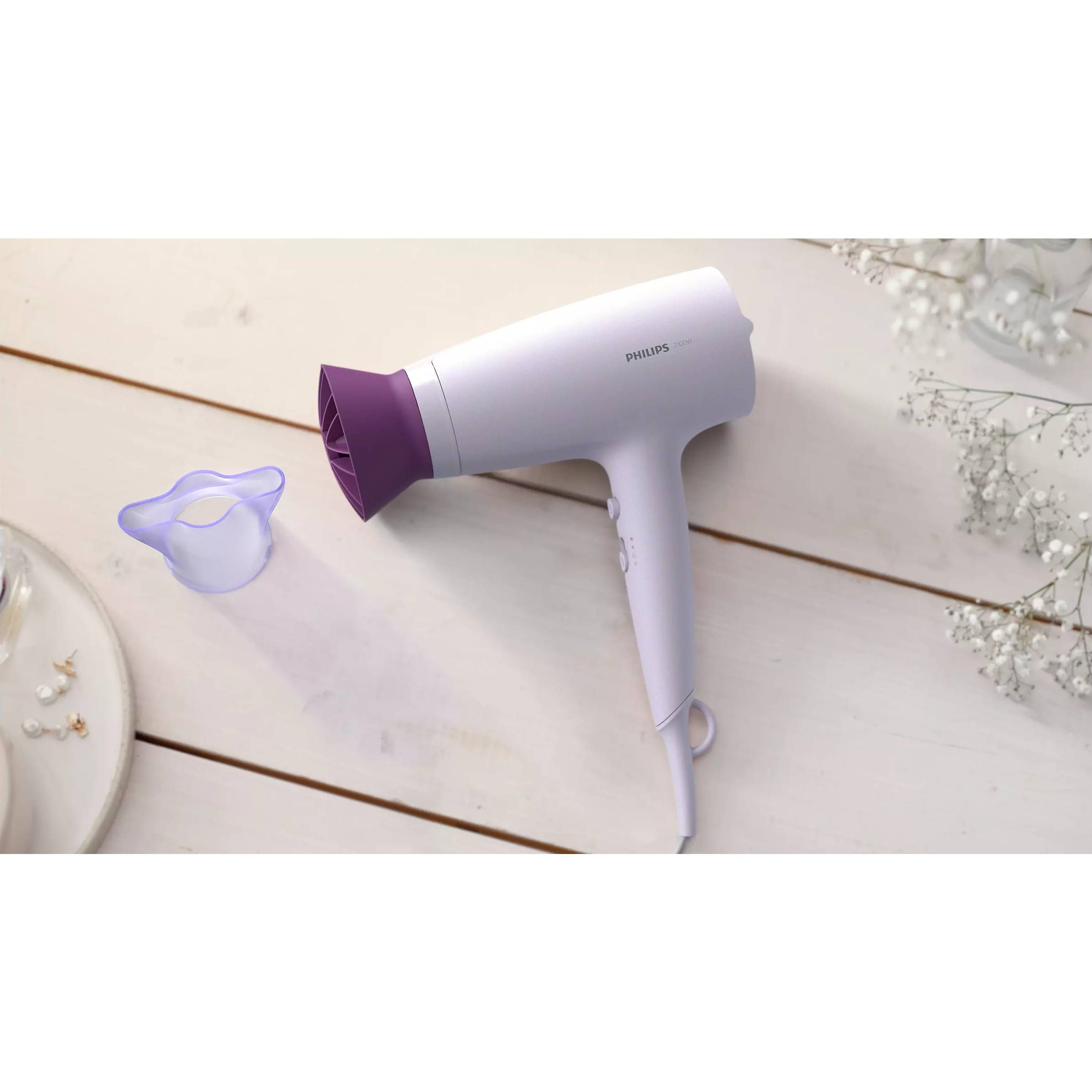Accesoriu ThermoProtect. Accesoriul ThermoProtect cu design unic combină eficient aerul cald şi rece, pentru îngrijire zilnică. Scade temperatura cu 15 °C, în timp ce îţi usucă în continuare părul.