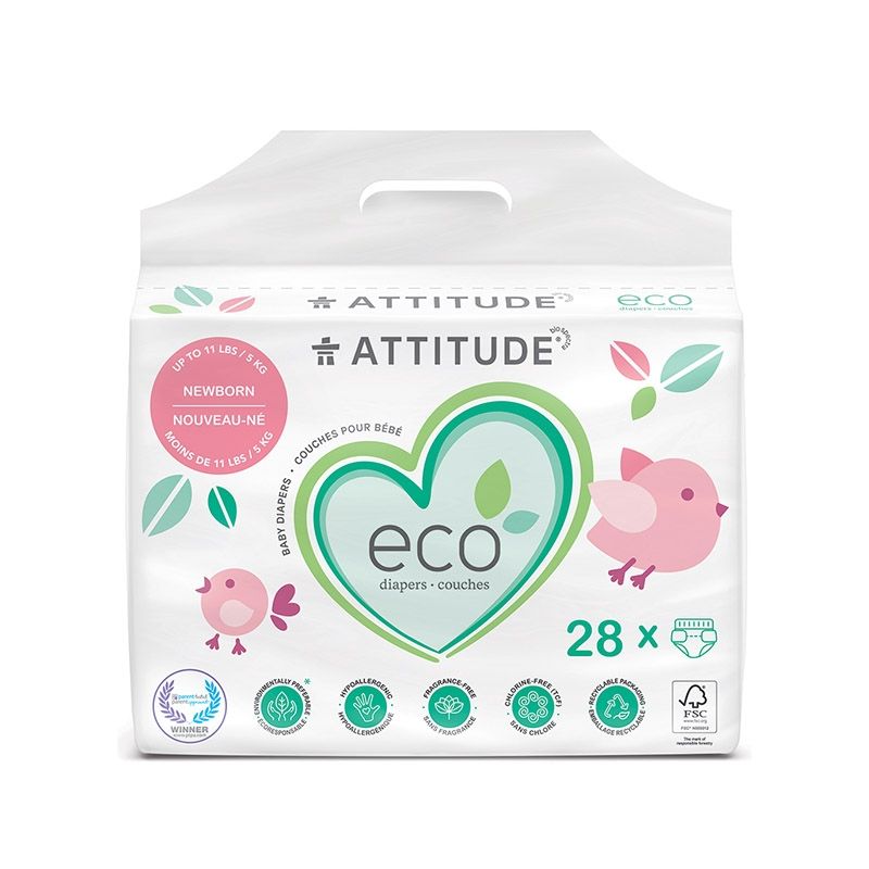 Scutece ecologice de unica folosinta Attitude pentru nou-nascuti (sub 5 kg), 28 bucati
