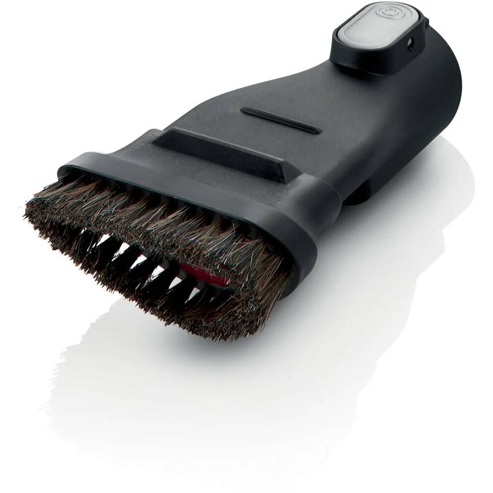 Combinația dintre peria pentru mobilier și duza pentru tapițerie face curățarea suprafețelor mult mai ușoară. Peria pentru mobilier este potrivită pentru curățarea sertarelor, a meselor și a altor suprafețe delicate. În funcție de sarcina de curățare, poți transforma în cel mai scurt timp peria pentru mobilier într-o duză pentru tapițerie.