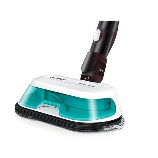Cu peria 2în1 DynamicAqua Mop aspiri murdăria și ștergi petele în același timp. Canalul de aspirare a murdăriei este în partea din față a periei, iar lavetele se află în partea din spate. Lavetele rotative sunt udate uniform, în mod continuu, datorită datorită sistemului automat de dozare a apei care asigură întotdeauna cantitatea necesară de apă pe lavete. Chiar și petele dificile sunt îndepărtate cu ușurință. Lavetele rotative îndepărtează petele de pe diferite tipuri de pardoseli tari precum vinil, marmură, gresie și parchet.
