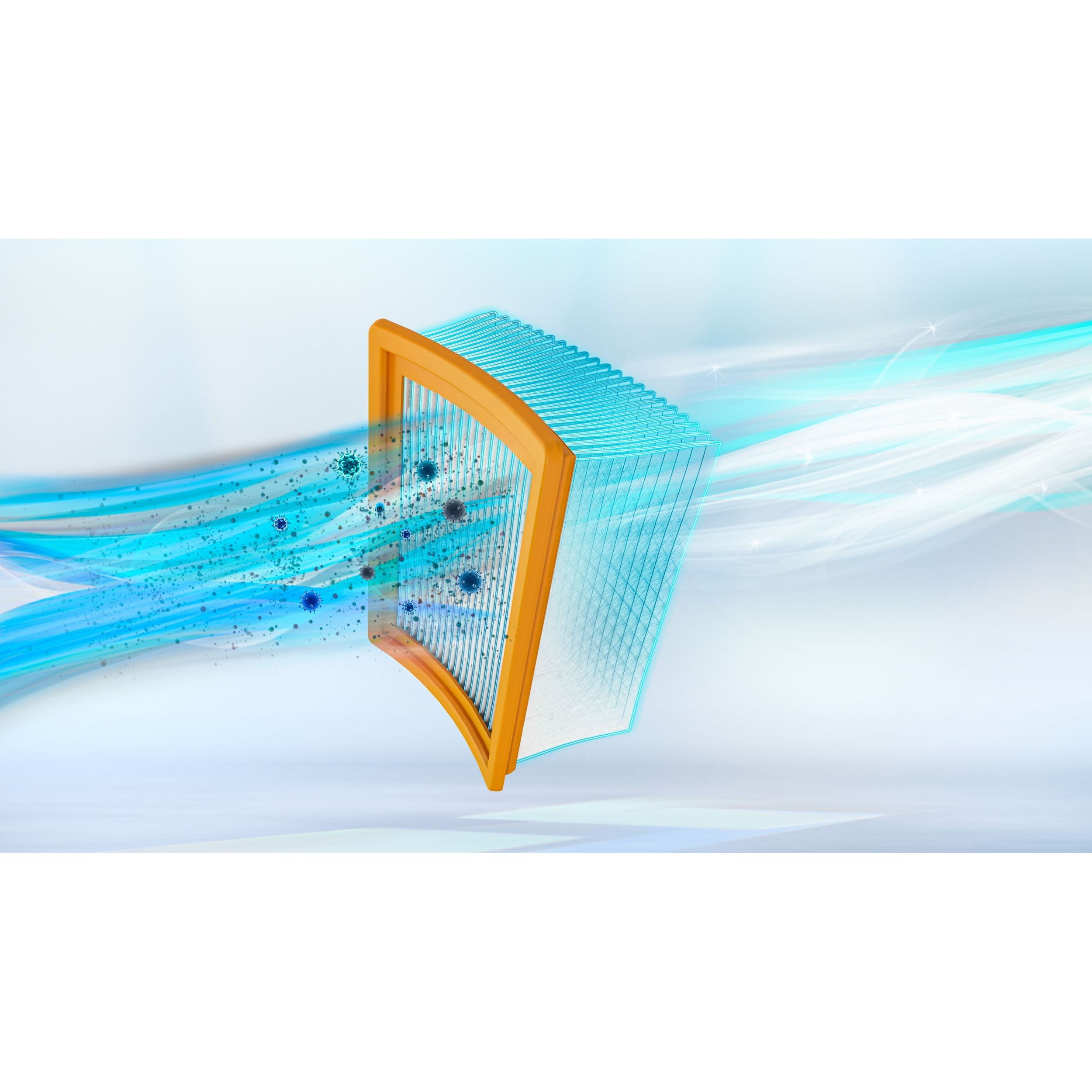 Calitatea aerului este importantă. Respiră un aer mai curat datorită filtrului igienic HEPA care este produs în România. Filtrează până la 99.95% din particulele fine de praf, bacterii și poluanți, fiind potrivit pentru cei care suferă de alergii * Pentru mai multă sustenabilitate, filtrul este lavabil, iar cadrul acestuia este făcut 100% din plastic reciclat. Utilează-l de mai multe ori, iar când ai nevoie de unul nou, pur și simplu înlocuiește-l.