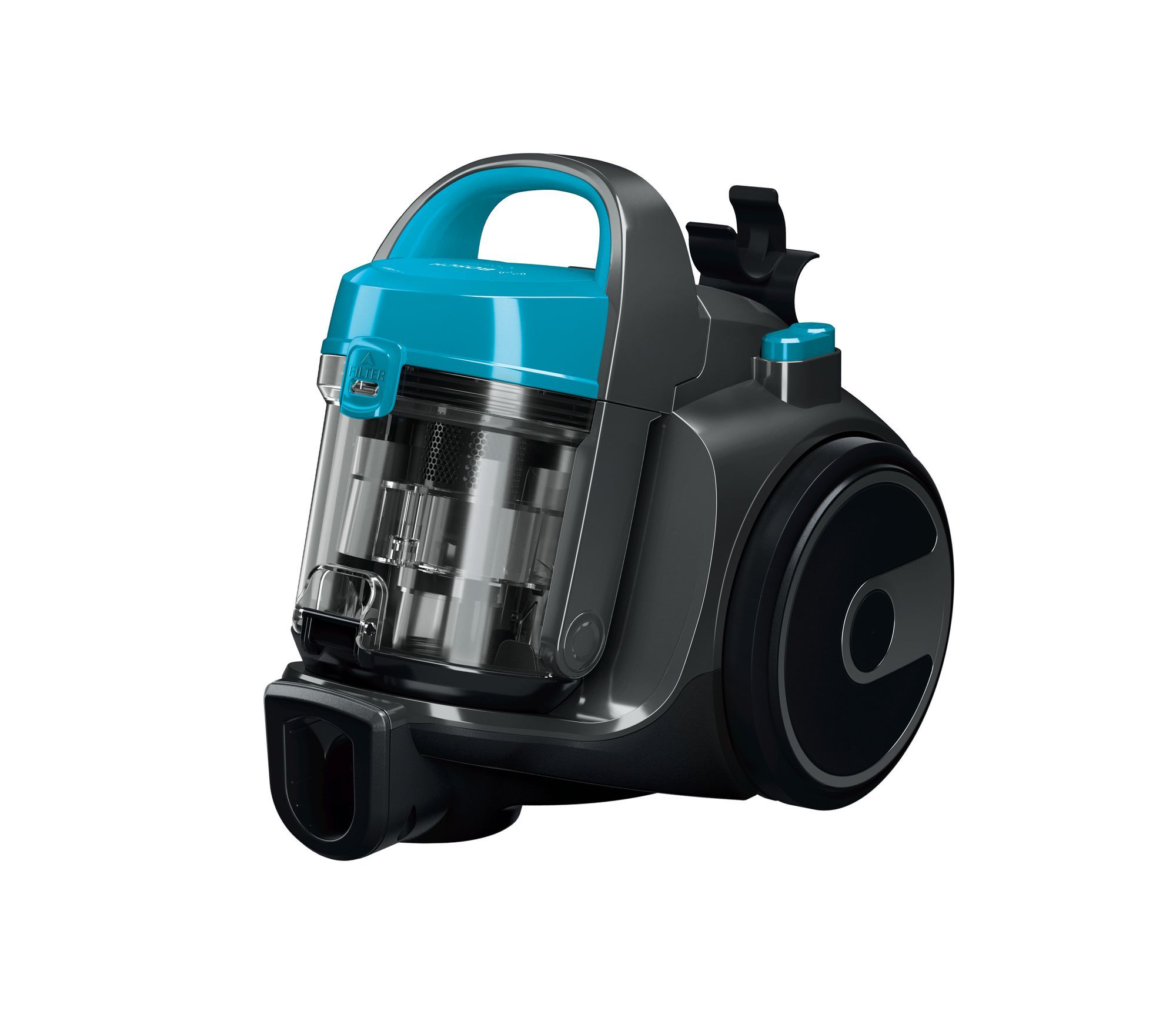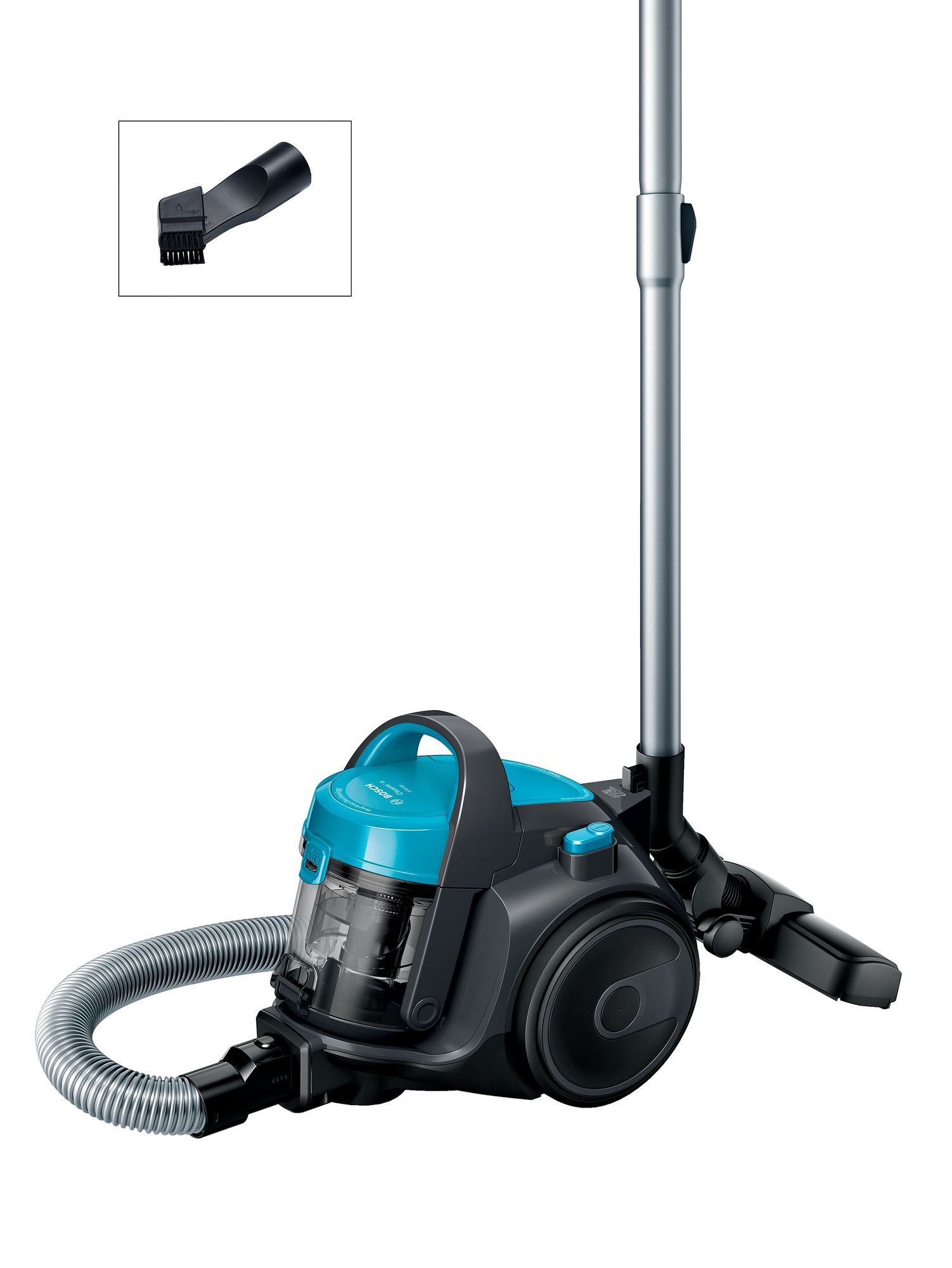 Aspirator fără sac BOSCH Serie 2 BGS05A221, 700W, 1.5l, Motor inovator HiSpin, Filtru igienic PureAir, Perie cu role multifuncțională, Ultra-compact, Derulator automat cablu, Stone Grey/Turquoise