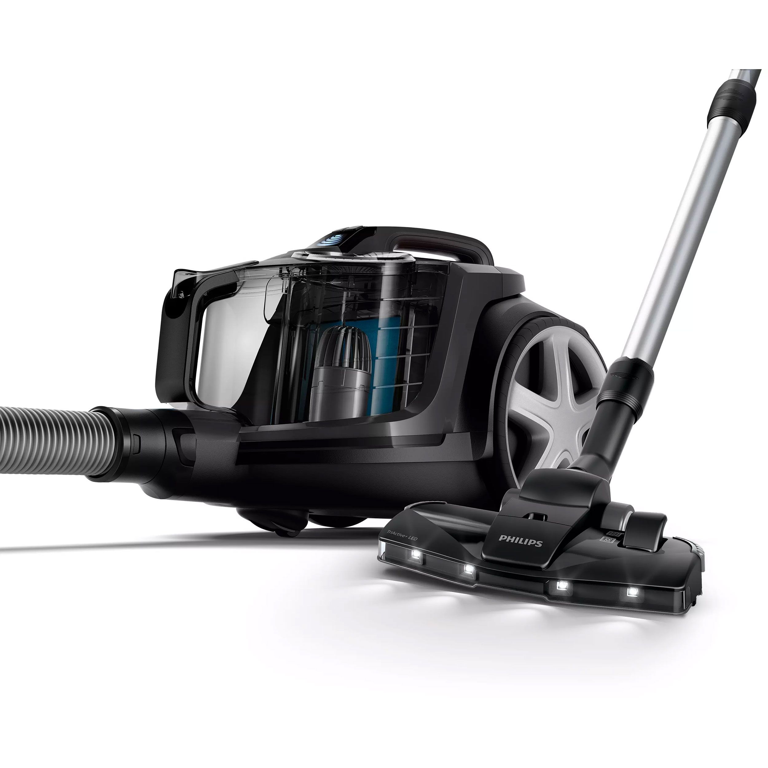 • Capul de aspirare TriActive+ LED scoate la iveală praful ascuns, pentru o curăţare temeinică