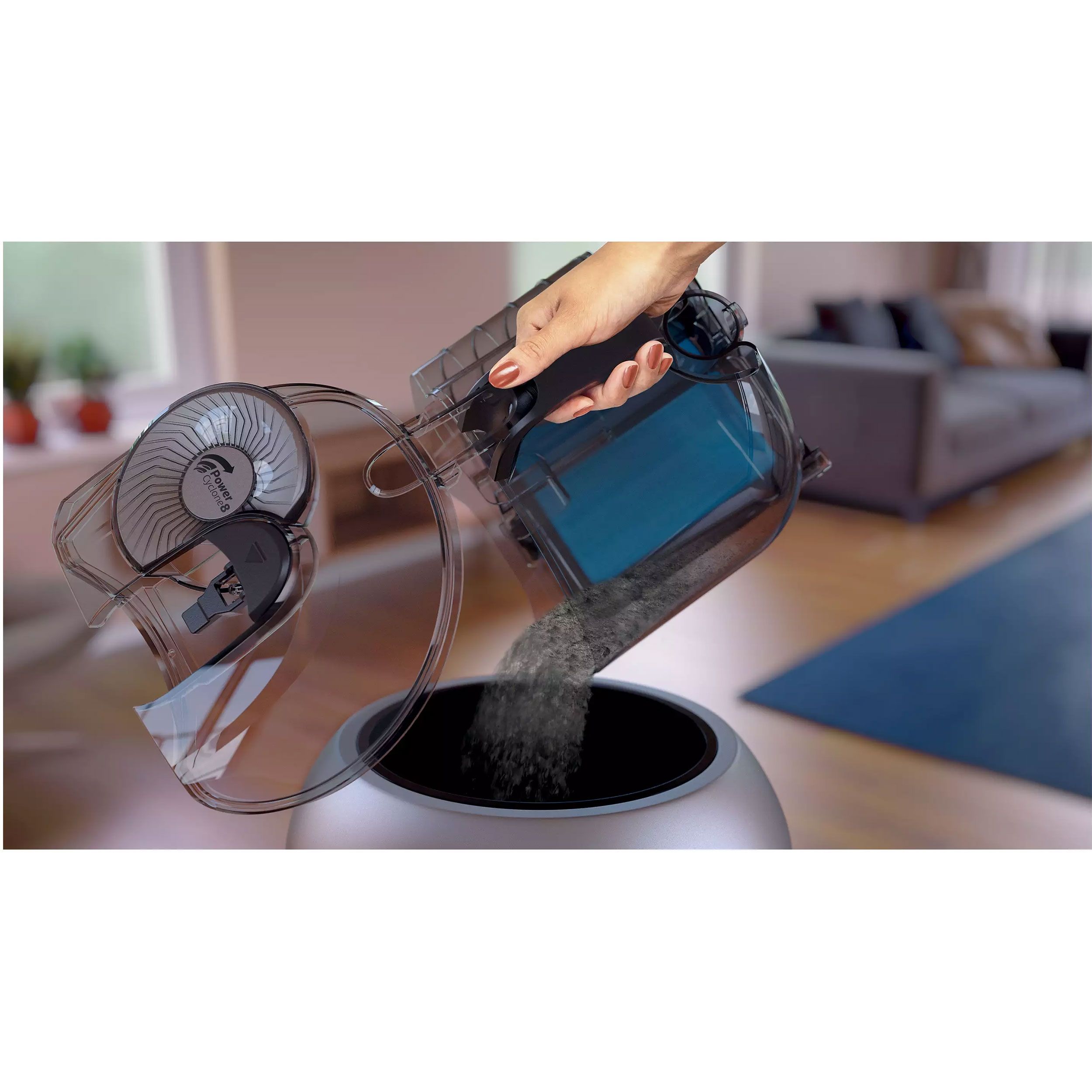 • PowerCyclone 8 asigură cea mai ridicată putere de aspirare pentru mai mult timp