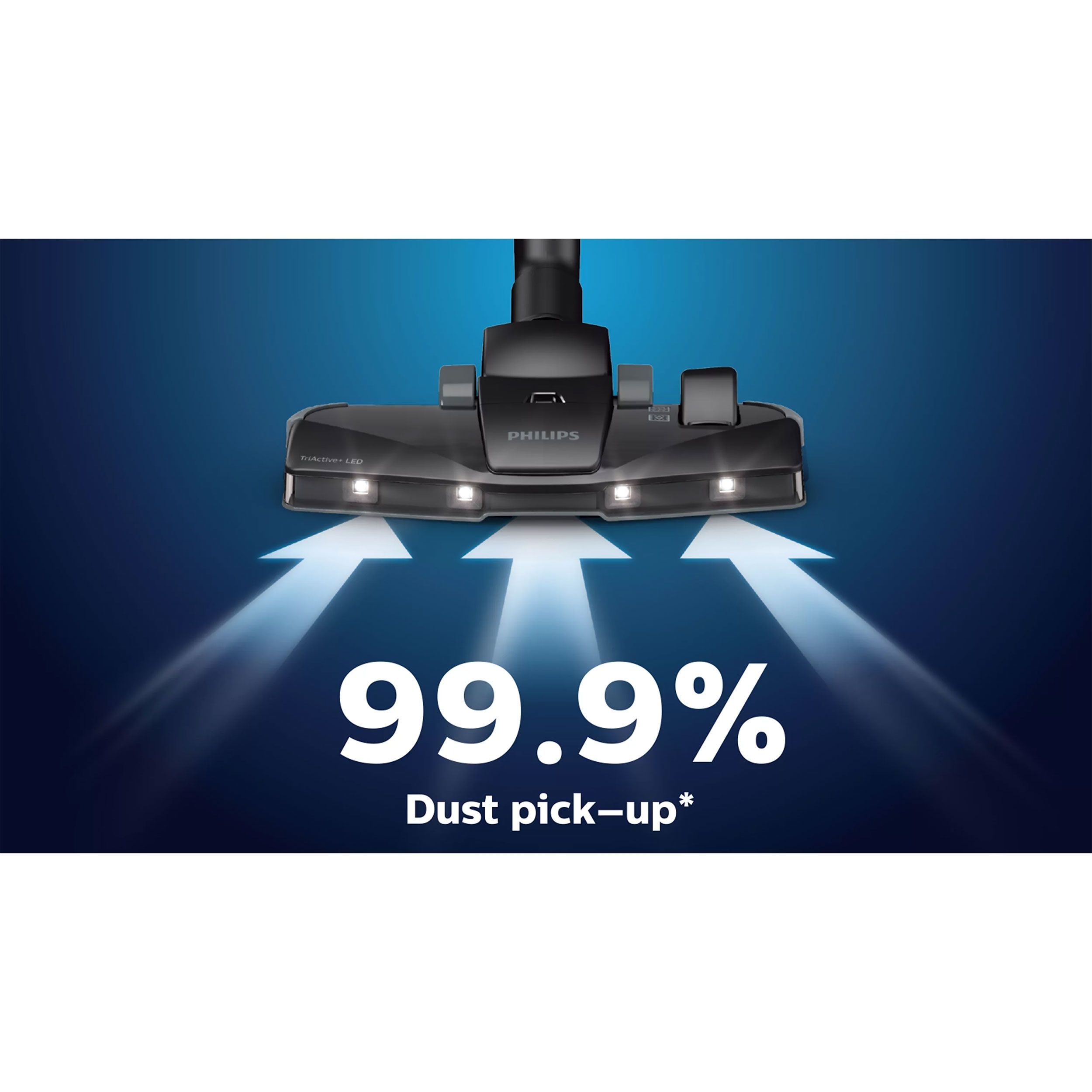 TriActive+ LED şi puterea de aspirare ridicată asigură aspirarea prafului fin în proporţie de 99,9 %**.