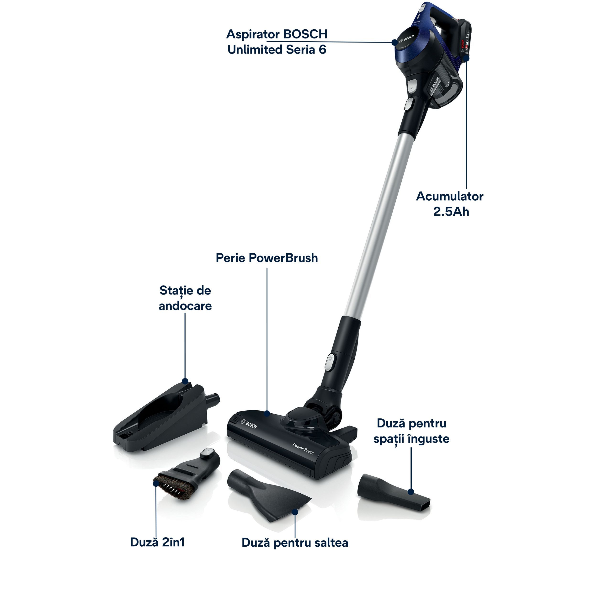 Vrei să cureți toată casa fără ca aspiratorul să rămână fără energie? Dacă dorești flexibilitate mai mare în privința duratei de funcționare, un acumulator suplimentar (accesoriu opțional) îți permite să prelungești perioada de aspirare.