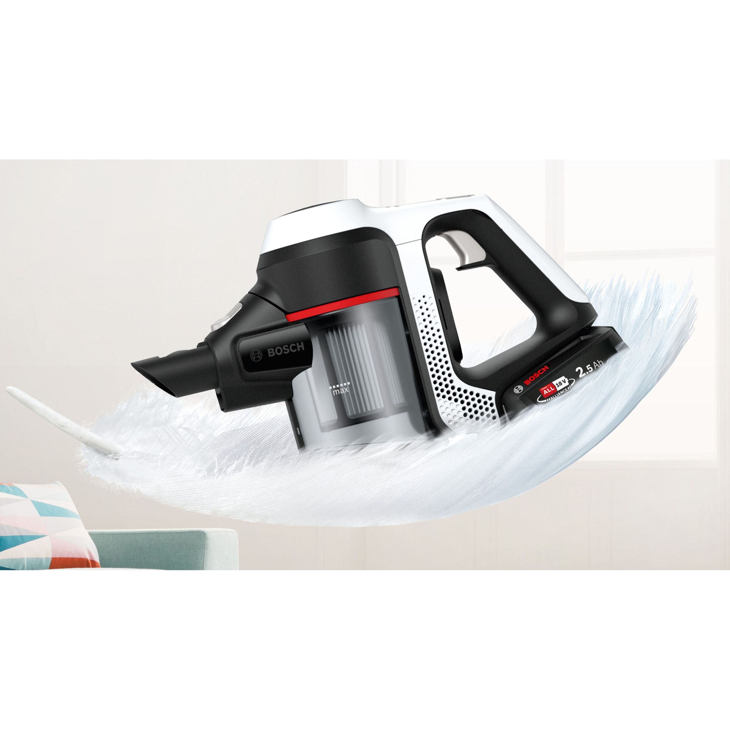 Vrei să cureți toată casa fără ca aspiratorul să rămână fără energie? Dacă dorești flexibilitate mai mare în privința duratei de funcționare, un acumulator suplimentar (accesoriu opțional) îți permite să prelungești perioada de aspirare.