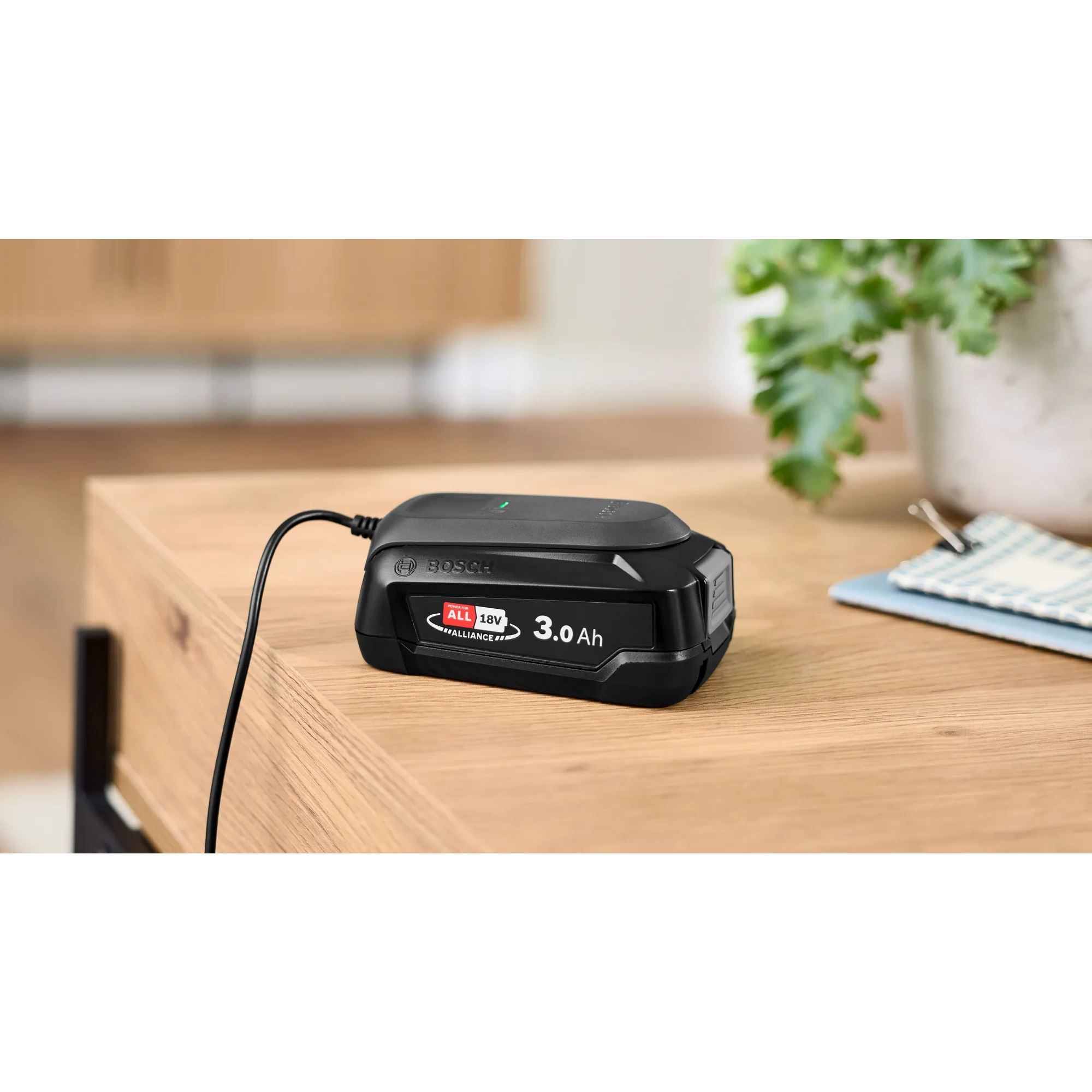 - Power For All Alliance: acumulatorul este compatibil cu mai multe produse Bosch (linia verde), precum și cu produse de la alte branduri. - Timp de funcționare pentru bateria de 3,0 Ah: