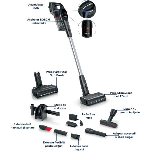 Accesoriul potrivit pentru fiecare necesitate. BOSCH oferă o gamă largă de accesorii pentru fiecare sarcină, dezvoltate exclusiv pentru Unlimited 9 & 10: de la Duza pentru tapițerie XXL, o perie moale pentru podea tare pentru podele dure sensibile până la Mini Duză Power și multe altele.