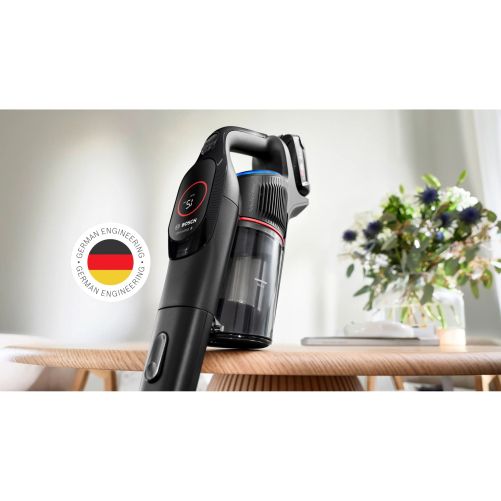 Rezultatele impresionante de curățare se bazează pe performanța ridicată a următoarei generații de motor TurboSpin fără perii cu Smart Motor Control, dezvoltat și fabricat de BOSCH în Germania. Motorul digital sincronizat trifazat atinge până la 70.000 rpm. Interacțiunea dintre motor, perie și baterie permite performanțe de curățare remarcabile, cu o eficiență cu până la 40% mai mare. - BOSCH acordă prioritate longevității aspiratoarelor. De aceea, acest Unlimited vine cu o garanție a motorului de 10 ani*.