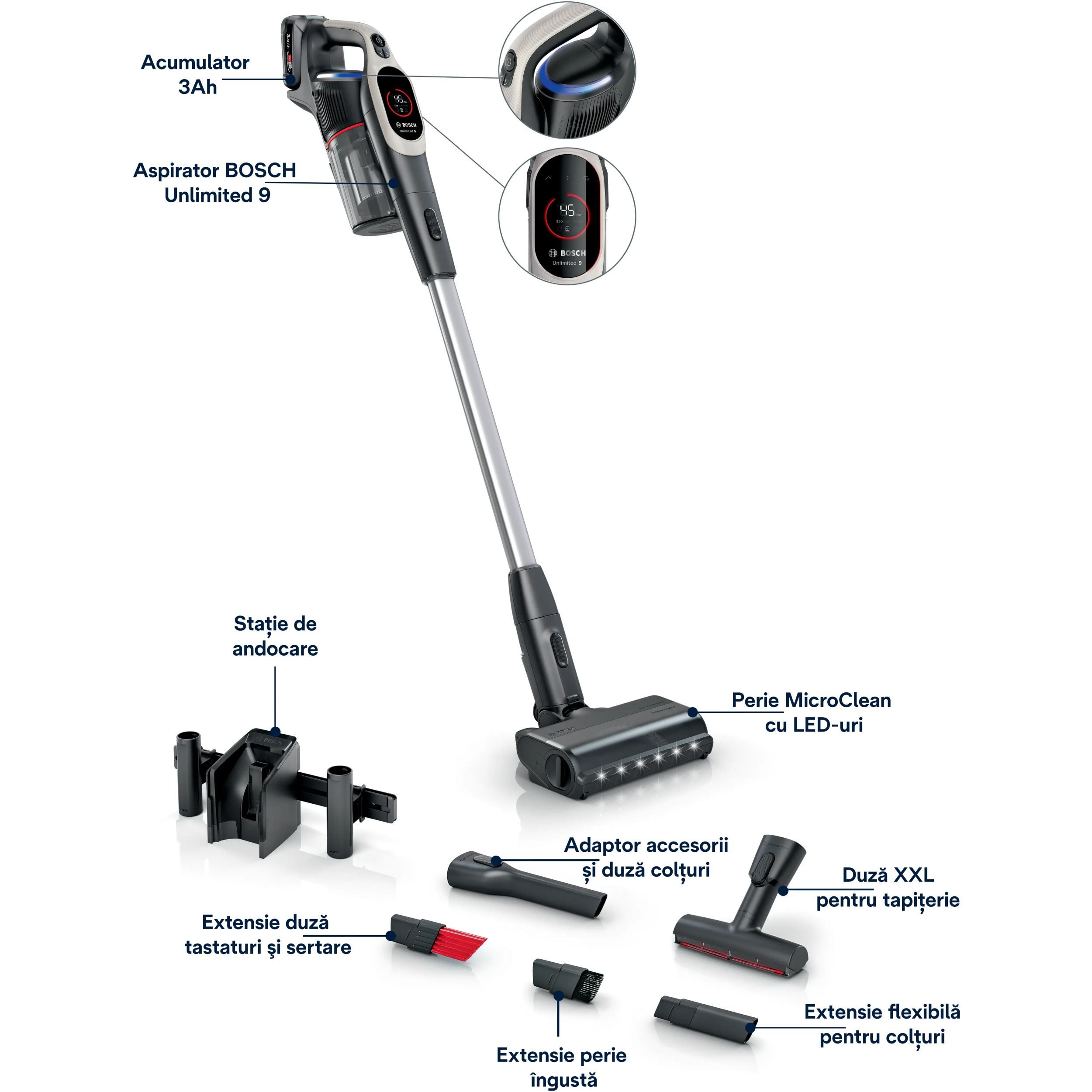 Accesoriul potrivit pentru fiecare necesitate. BOSCH oferă o gamă largă de accesorii pentru fiecare sarcină, dezvoltate exclusiv pentru Unlimited 9 & 10: de la Duza pentru tapițerie XXL, o perie moale pentru podea tare pentru podele dure sensibile până la Mini Duză Power și multe altele.