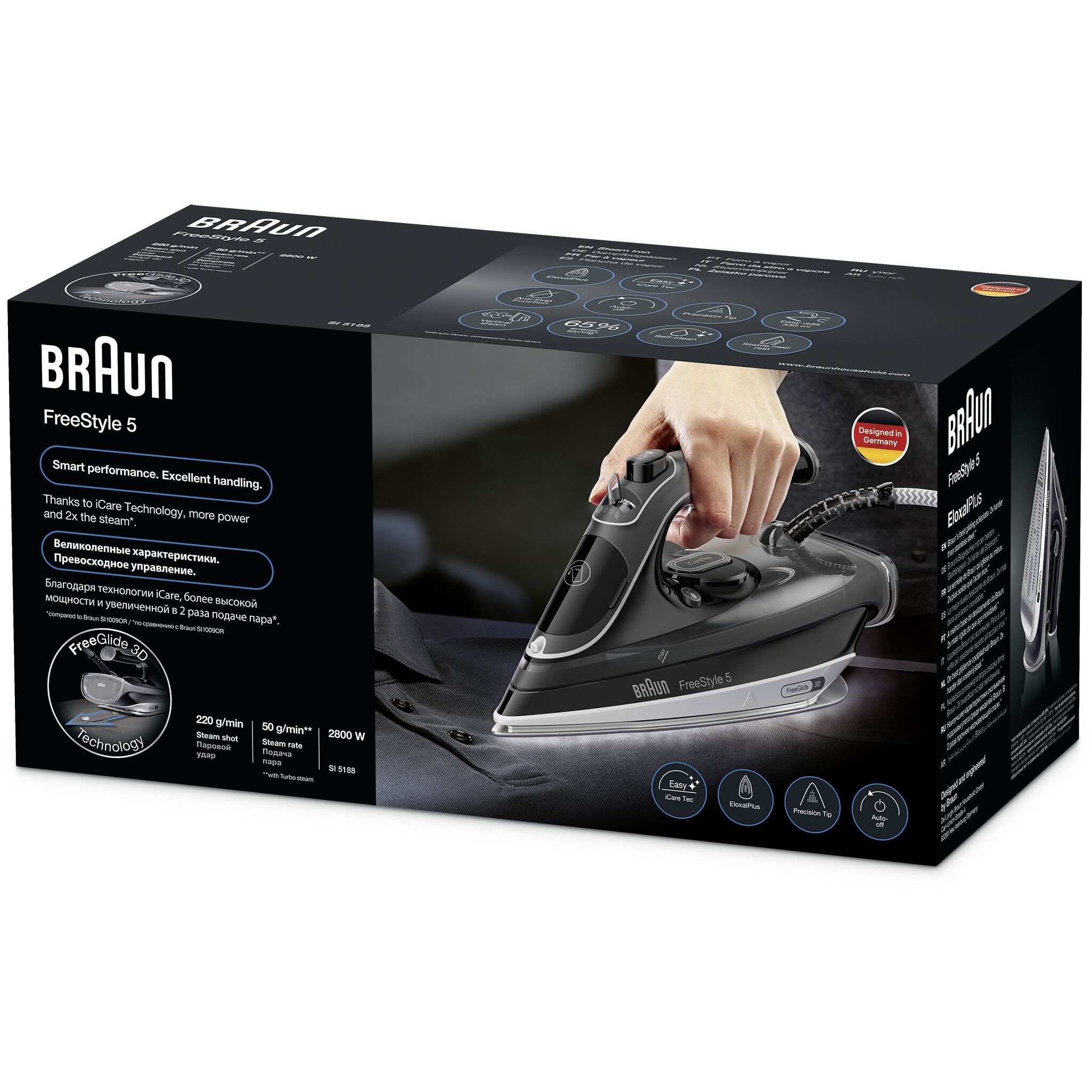 Conceput pentru o călcare comodă, fără efort, FreeStyle 5 combină performanța excelentă cu un mâner unic, ergonomic, ce oferă libertate maximă de mișcare și o experiență de călcat foarte plăcută. Acum este prevăzut cu prima tehnologie FreeGlide 3D din lume, un standard BRAUN recunoscut, precum și cu modul Smart iCare. Protejează hainele utilizând o temperatură sigură pentru toate tipurile de țesături, oferind o protecție inteligentă materialelor textile.