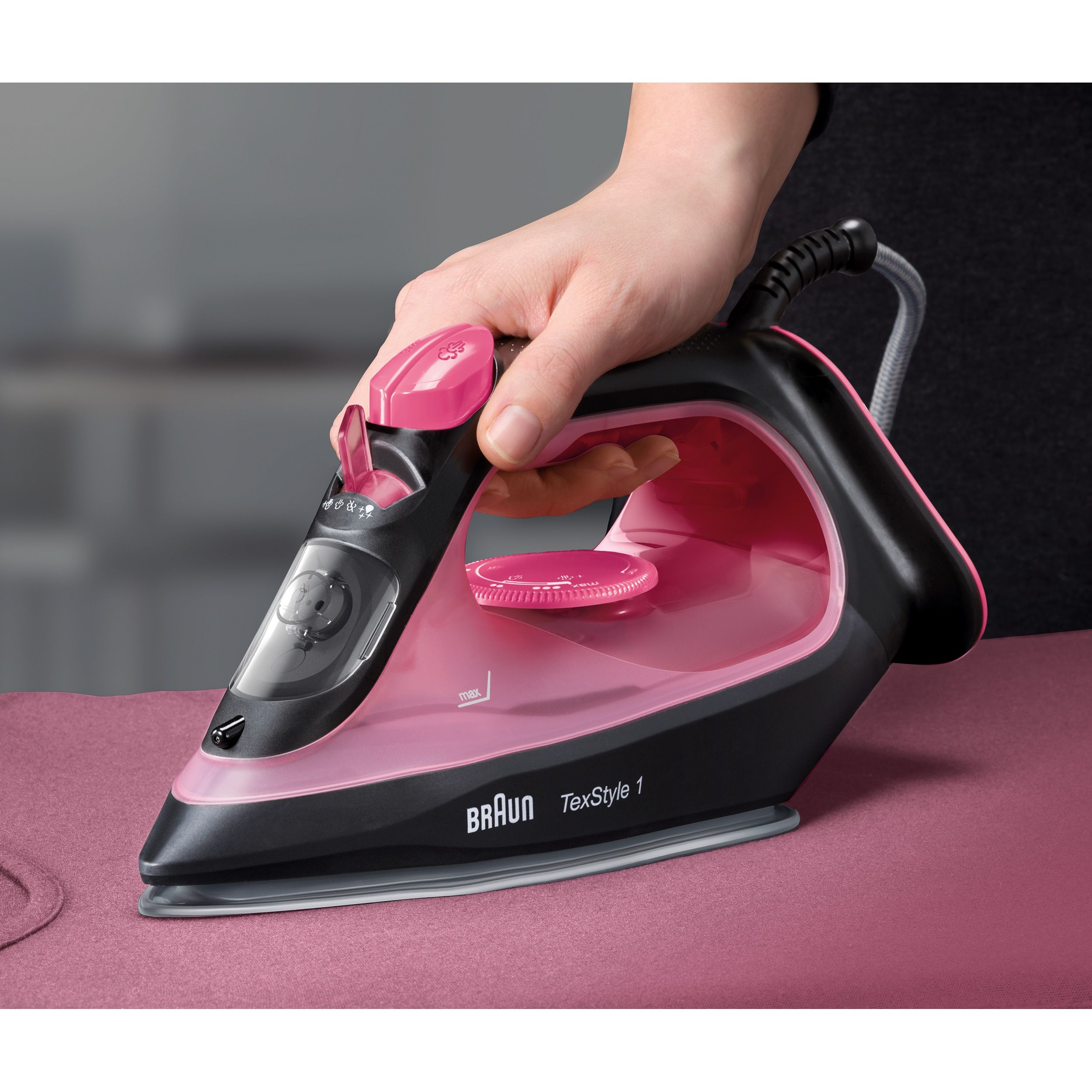 Braun TexStyle 1 - pentru sesiuni rapide si usoare de calcat. TexStyle 1 de la Braun este cel mai usor fier de calcat cu aburi, special conceput pentru sesiuni rapide de calcat. Compact si usor de manevrat, este proiectat sa se incalzeasca rapid, in doar 35 secunde. Este prevazut cu o talpa ceramica de inalta calitate, antiadeziva. Invelisul SuperCeramic garanteaza o alunecare perfecta pe tesaturi si o distributie optima a aburului pentru sesiuni de calcat rapide si confortabile. Aburul variabil de pana la 25 g/min asigura rezultate rapide iar jetul de abur de pana la 130 g/min face fata chiar si celor mai dificile cute. Functia Antipicurare protejeaza tesaturile impotriva petelor, in timp ce rezervorul pentru apa este usor de alimentat chiar si in timpul sesiunii de calcare. Pentru un plus de siguranta, functia Auto-Off opreste fierul daca nu este folosit.