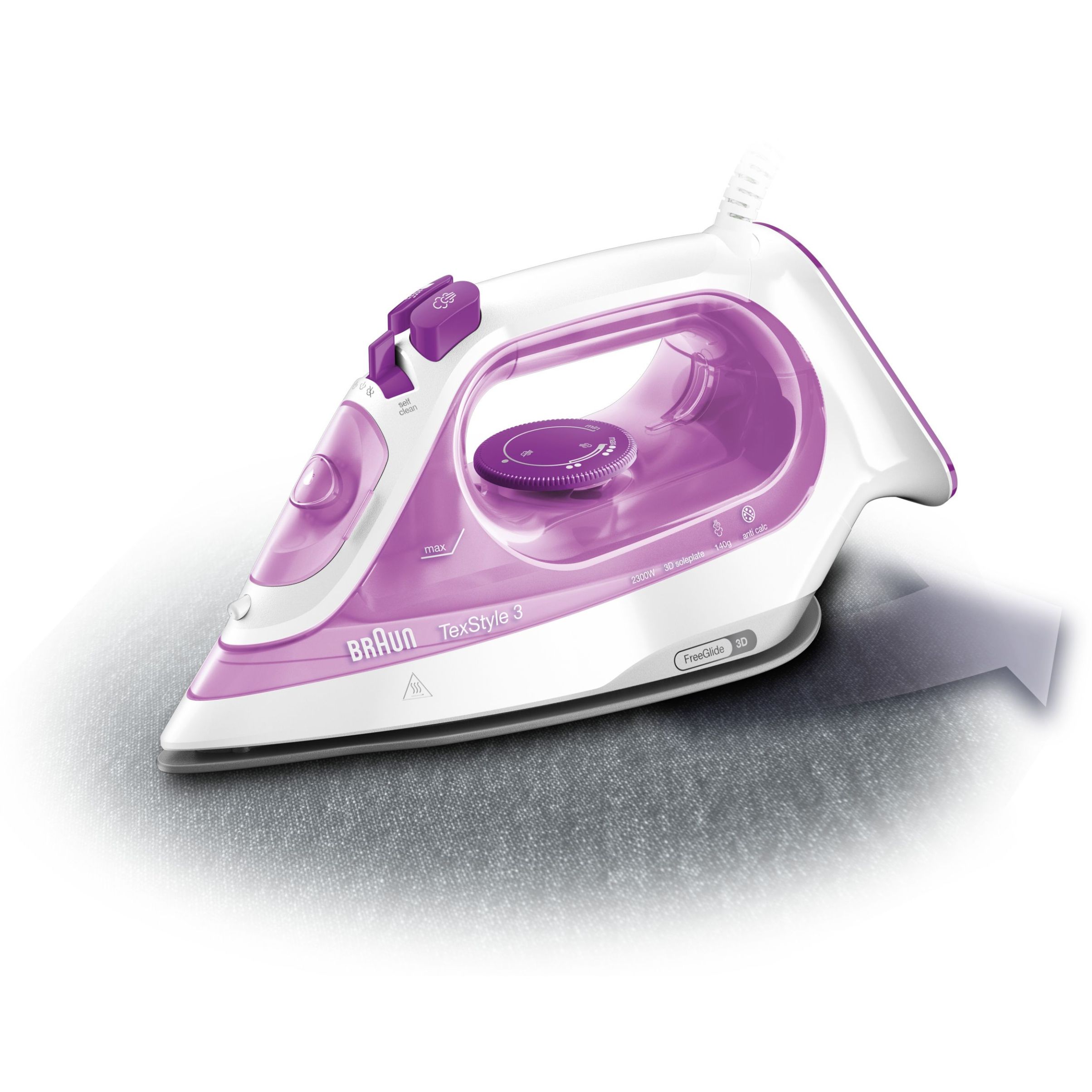 Noul BRAUN TexStyle 3 a fost îmbunătățit cu un nou aspect, o putere mai mare și o performanță mai bună a aburului. Acum este dotat cu prima tehnologie FreeGlide 3D din lume, pentru o capacitate de alunecare de 360°.