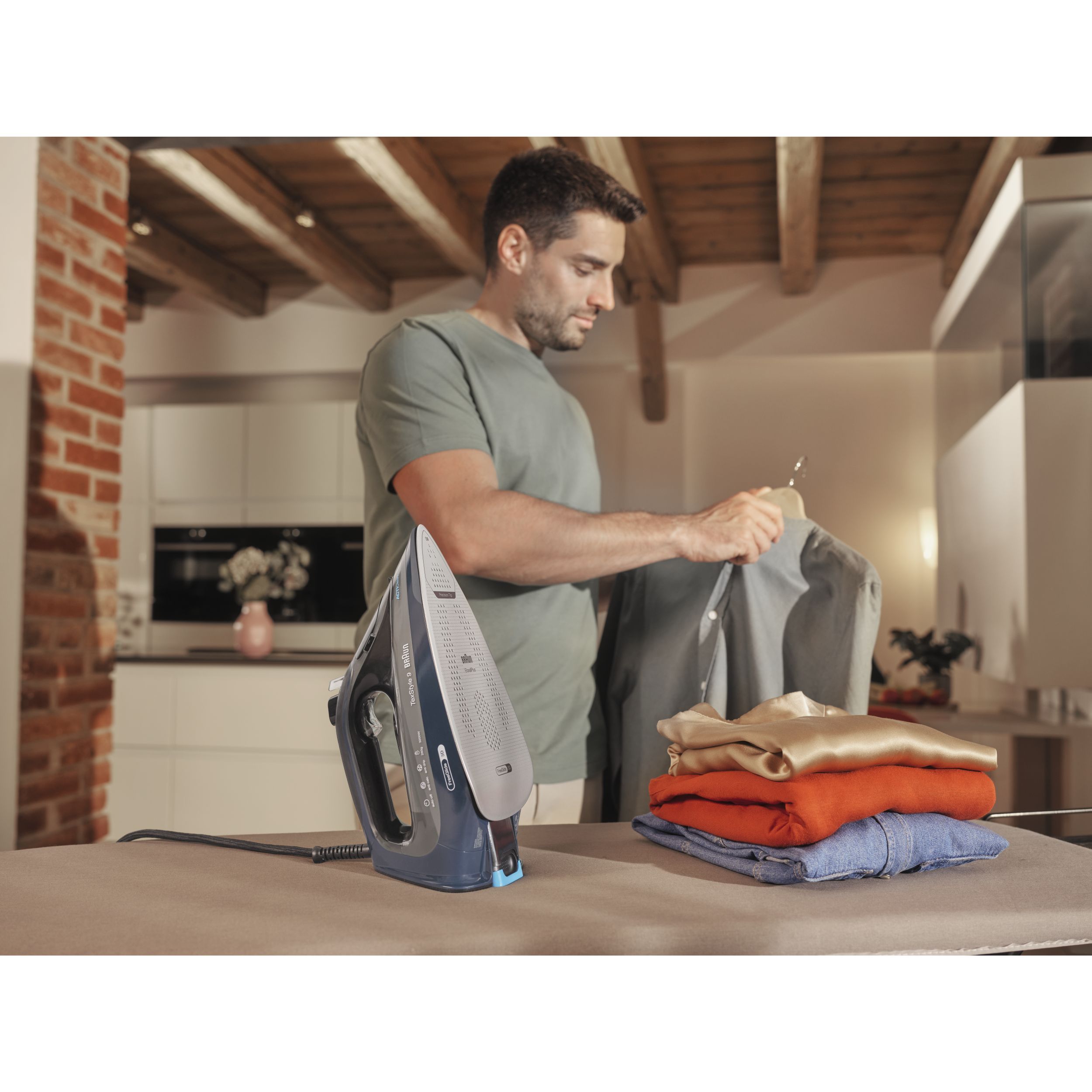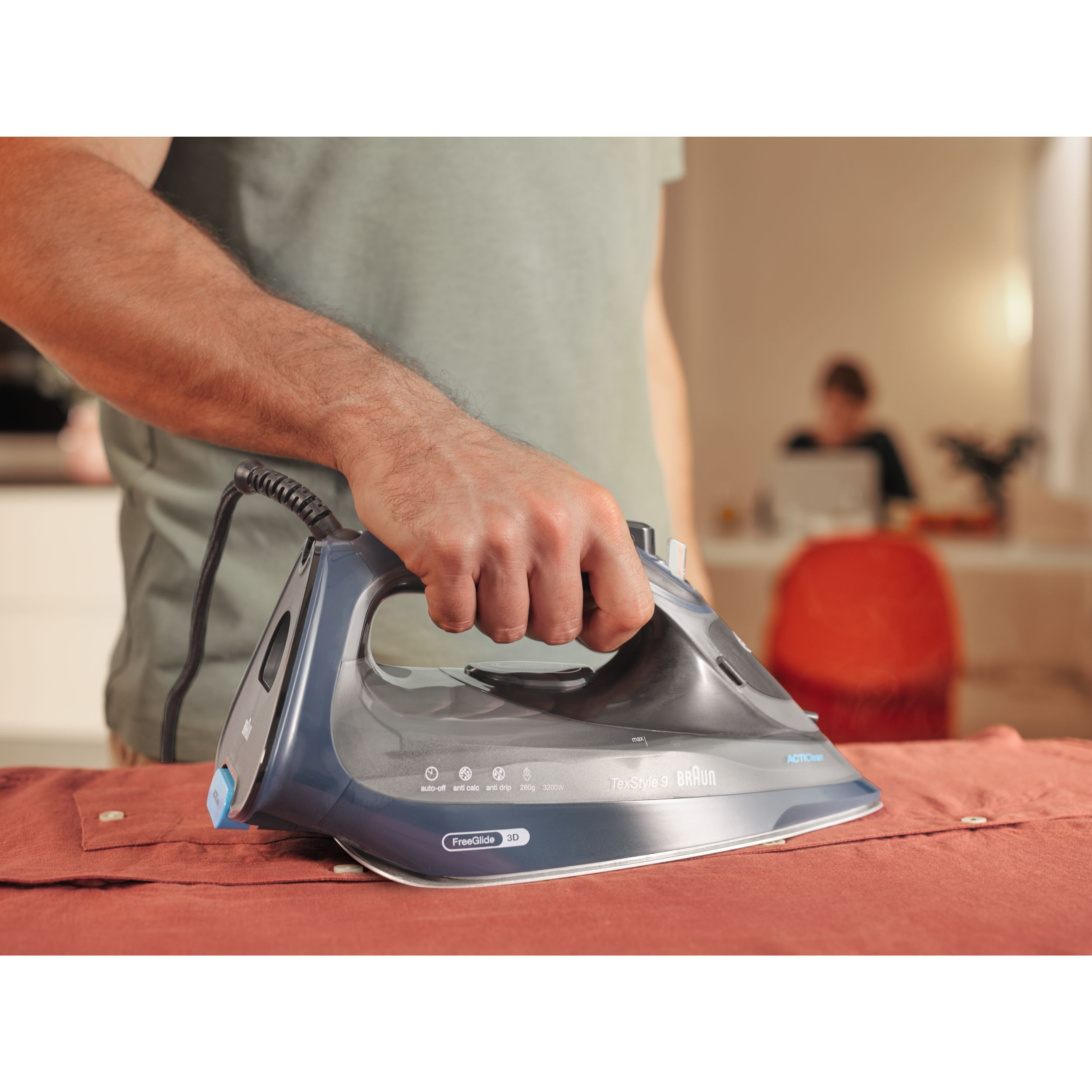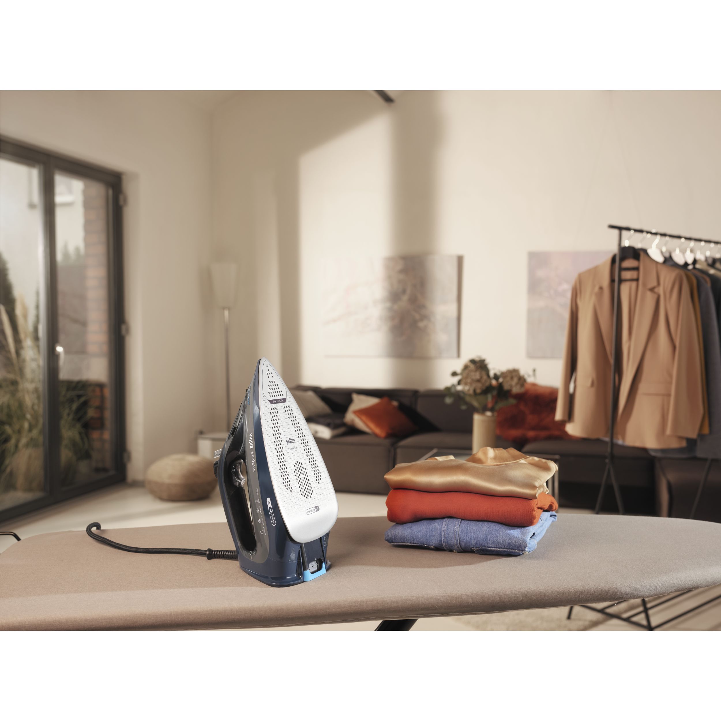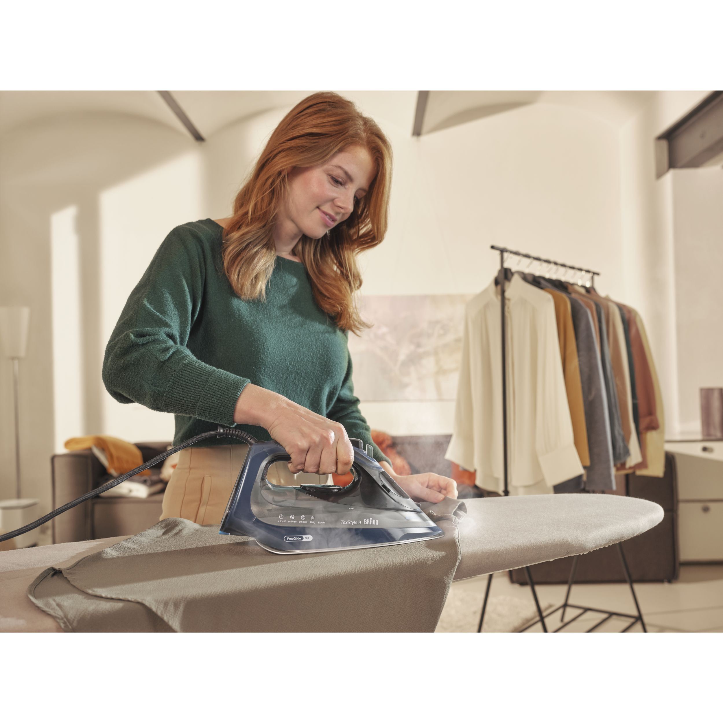 TexStyle 9 este cel mai puternic fier de călcat cu aburi de la BRAUN, care are o putere de 3200W și este prevăzut cu prima tehnologie FreeGlide 3D din lume. În plus, este prevăzut cu noul sistem ActiCIean. Colectorul de calcar are un design unic ce face ca îndepărtarea depunerilor să fie mai puțin dificilă și cu 100% mai eficientă*, prelungind durata de viață a fierului de călcat cu aburi. TexStyle 9 prezintă, de asemenea, tehnologia iCare care protejează hainele utilizând o temperatură potrivită pentru fiecare tip de țesătură - oferind o protecție inteligentă materialelor textile.