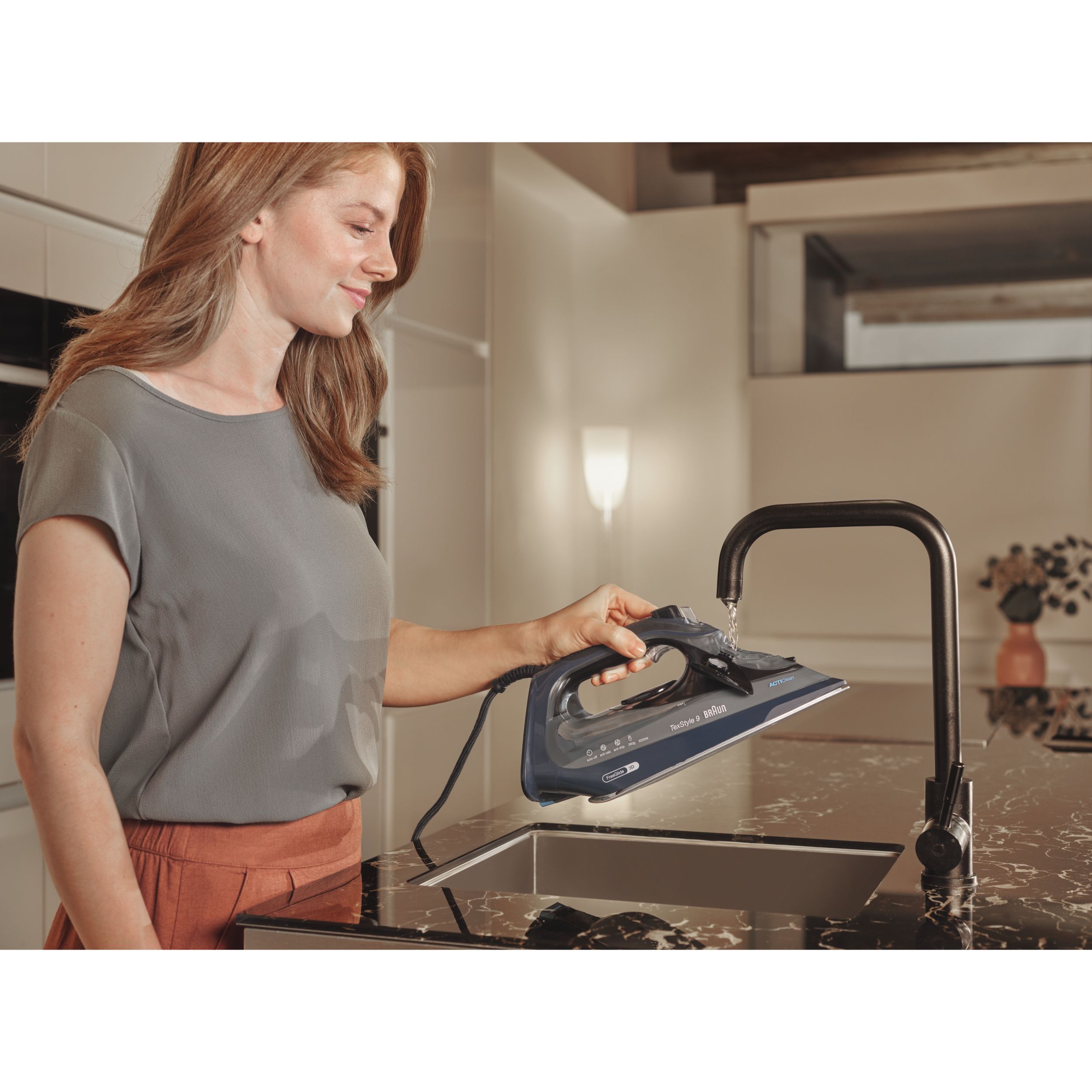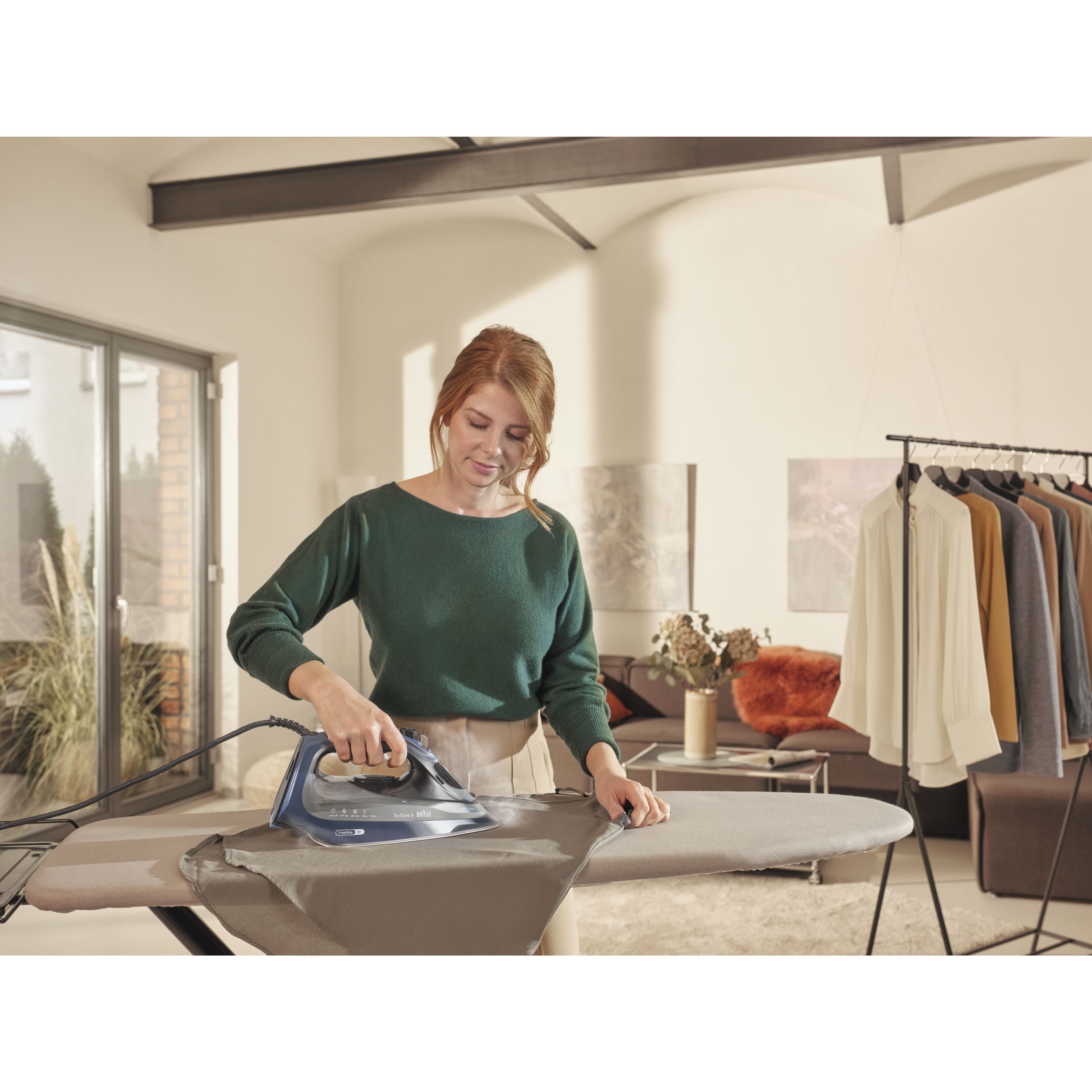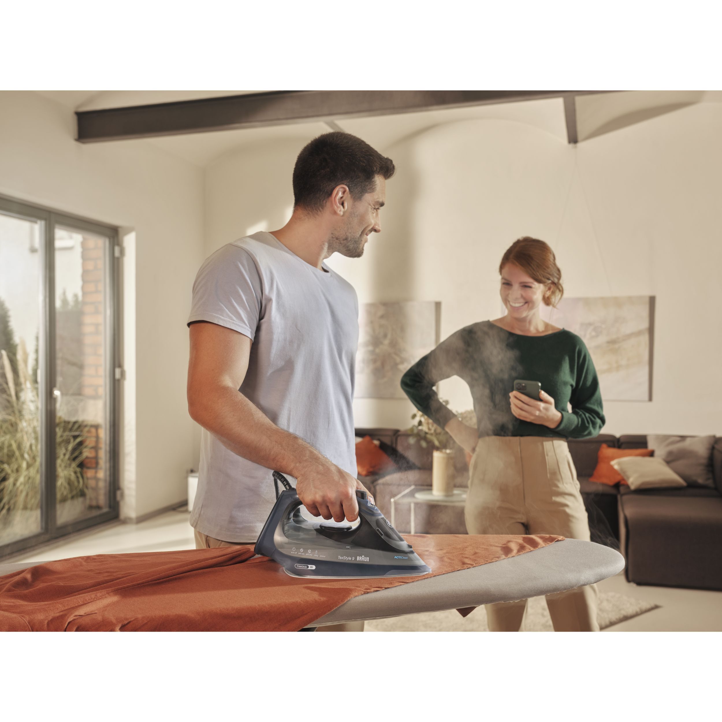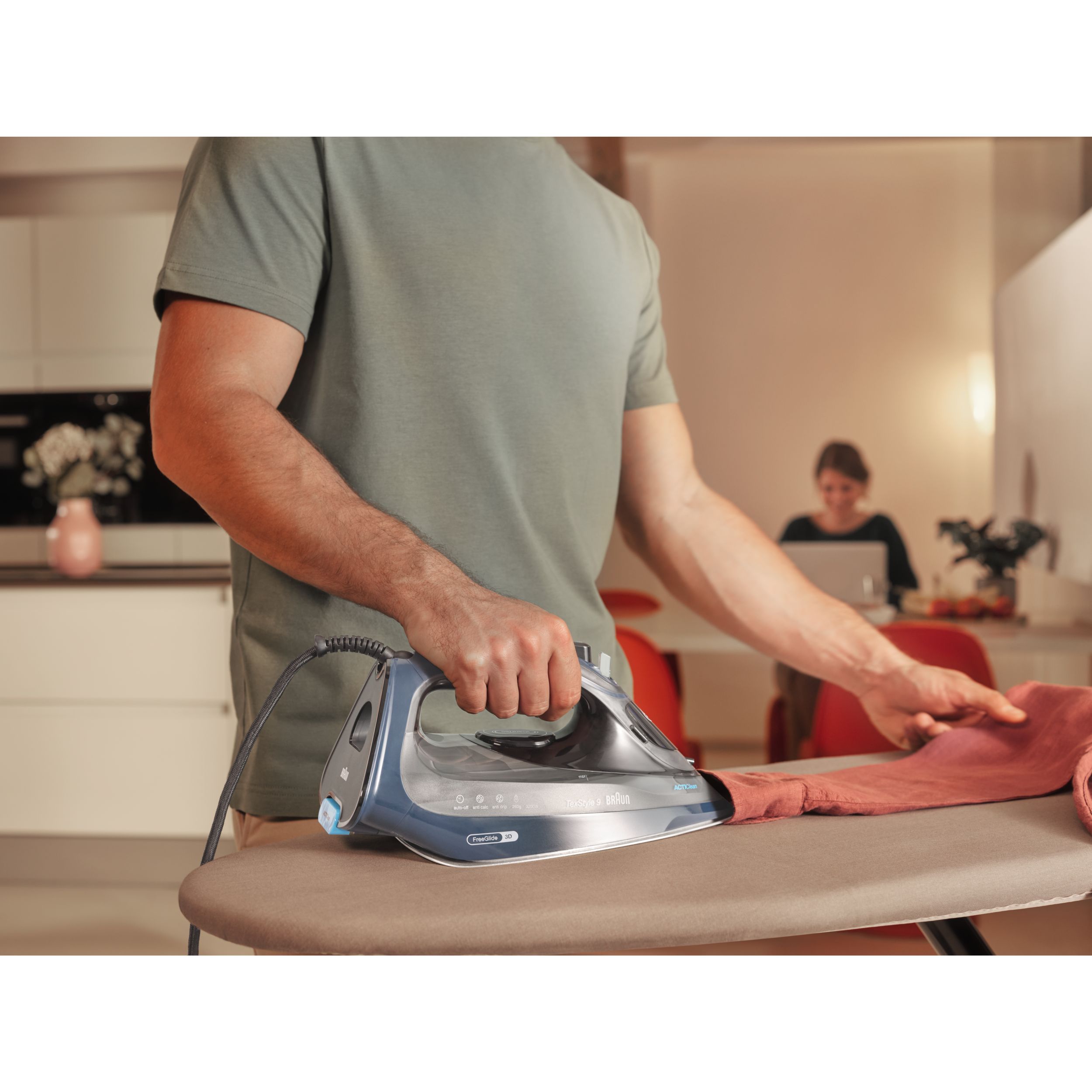 TexStyle 9 este cel mai puternic fier de călcat cu aburi de la BRAUN, care are o putere de 3200W și este prevăzut cu prima tehnologie FreeGlide 3D din lume. În plus, este prevăzut cu noul sistem ActiCIean. Colectorul de calcar are un design unic ce face ca îndepărtarea depunerilor să fie mai puțin dificilă și cu 100% mai eficientă*, prelungind durata de viață a fierului de călcat cu aburi. TexStyle 9 prezintă, de asemenea, tehnologia iCare care protejează hainele utilizând o temperatură potrivită pentru fiecare tip de țesătură - oferind o protecție inteligentă materialelor textile.