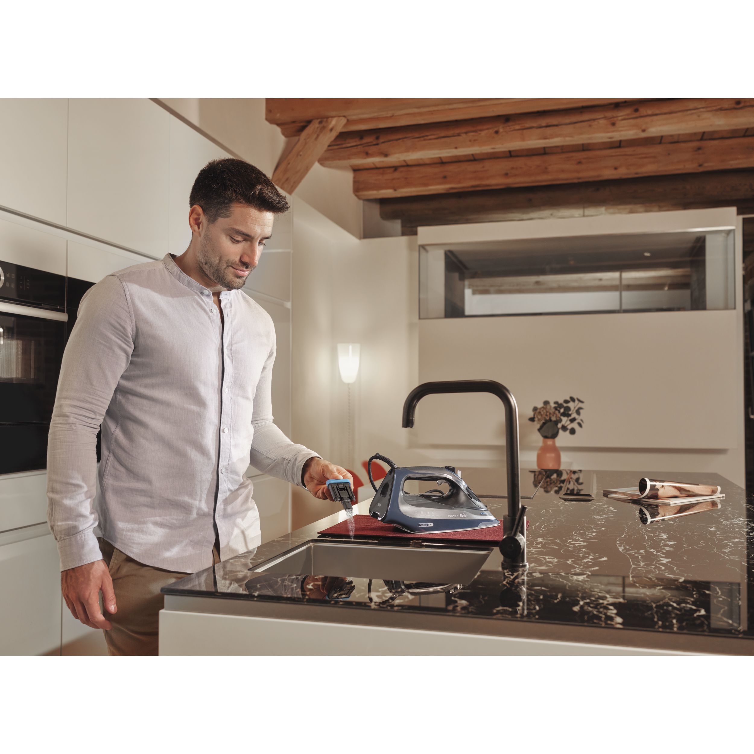 Cea mai rapidă tehnologie de îndepărtare a depunerilor de calcar de la Braun,asigură un proces de curățare cu 100% mai eficient* și mai puțin dificil, prelungind durata de viață a fierului de călcat cu aburi.