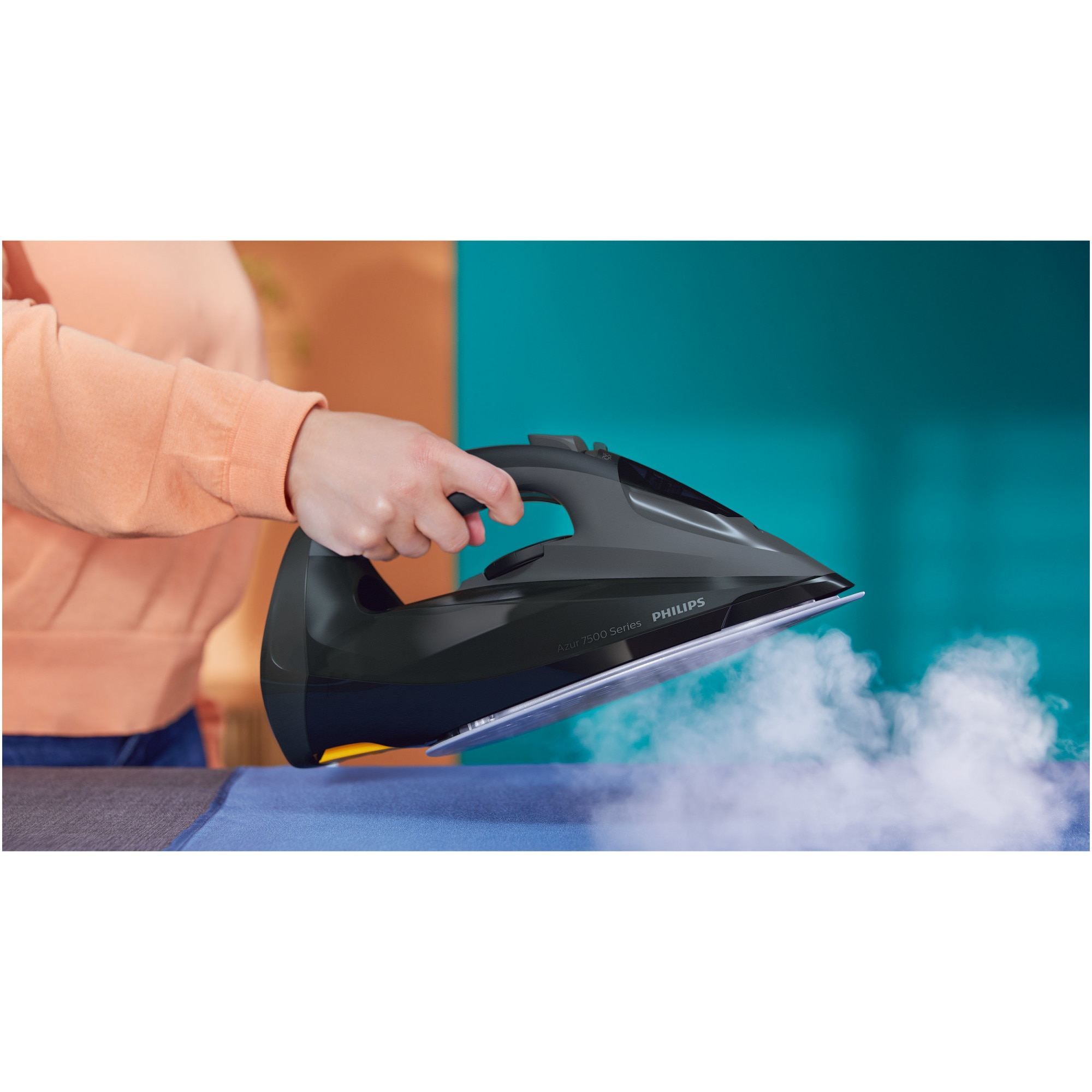 Fier de călcat cu abur Philips Azur Seria 7500 DST7511/80, 3200W, Continuu 55g/min, Jet 260g, Rezervor 300ml, Talpă SteamGlide Elite, Oprire automată, C2m, G1.78kg, Negru