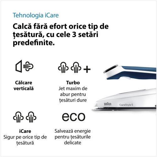 Stația de călcat cu aburi CareStyle 5 a fost construită conform celor mai înalte standarde de calitate germană. Pentru a vă oferi rezultate extraordinare în fiecare zi, pentru mulți ani de acum înainte, și pentru a face călcatul mai rapid și mai ușor. Designul clasic Braun exprimă aceste calități printr-un amestec fin între performanța superioară și linii și forme pure.