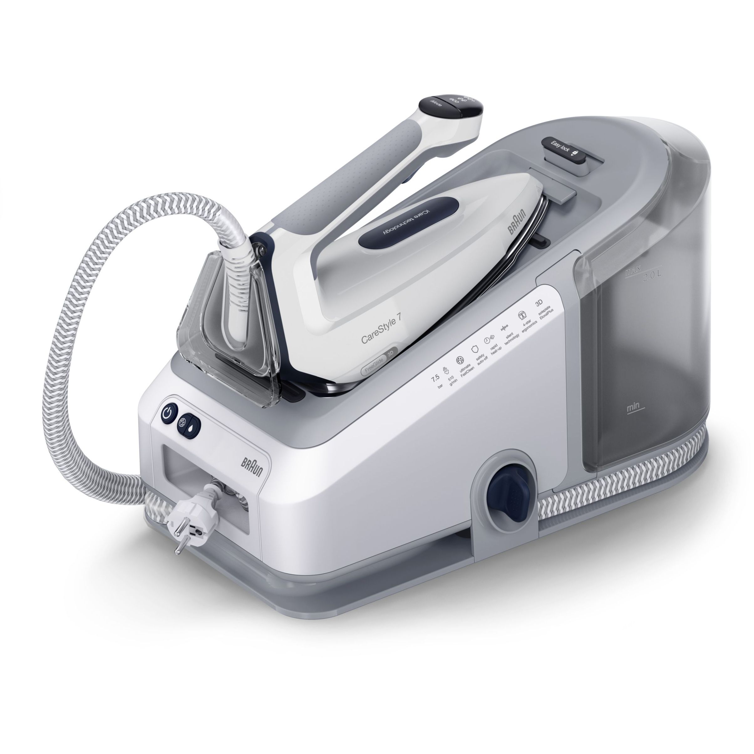 CareStyle 7 este cel mai puternic sistem de călcat Braun,care oferă rezultate profesionale de călcat datorită puterii mari a aburului. Echipat cu tehnologia noastră revoluționară PowerSteam,CareStyle 7 facilitează netezirea rapidă chiar și a celor mai dificile cute.